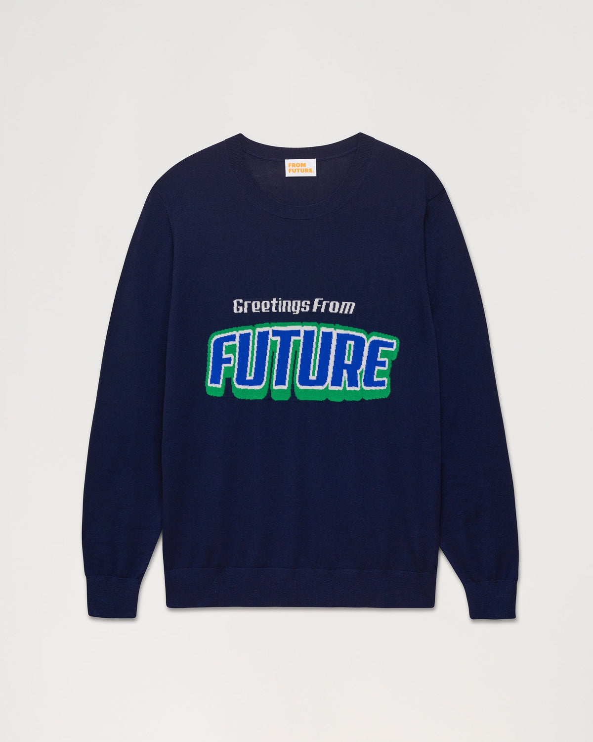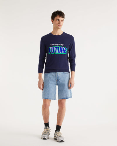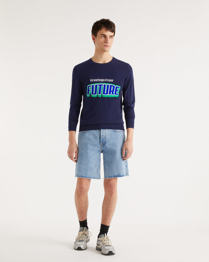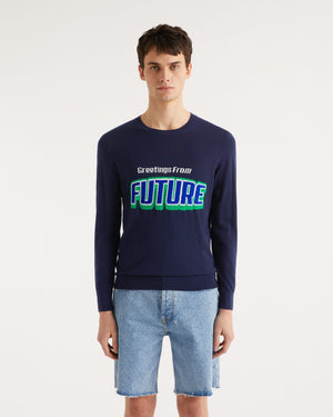 Pull Pull Col Rond Greetings From Future - Laine Mérinos - Navy