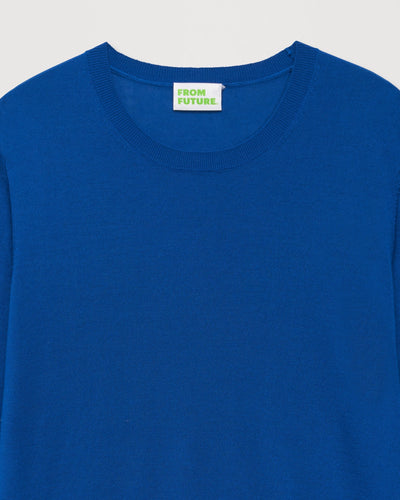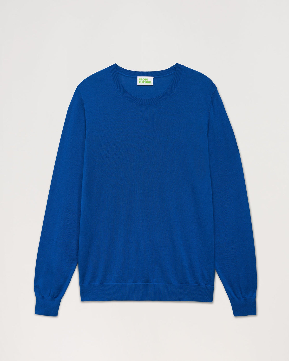 Pull Pull Col Rond Uni - Laine Mérinos - Crazy blue