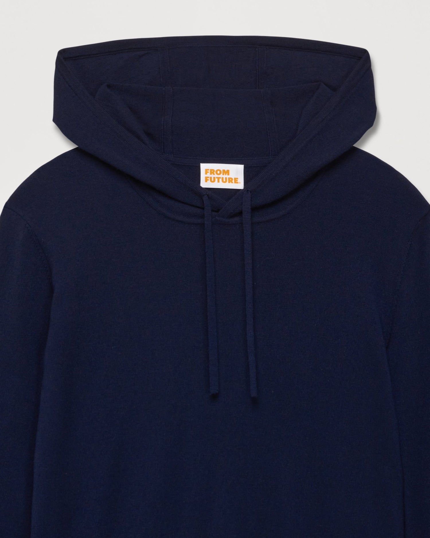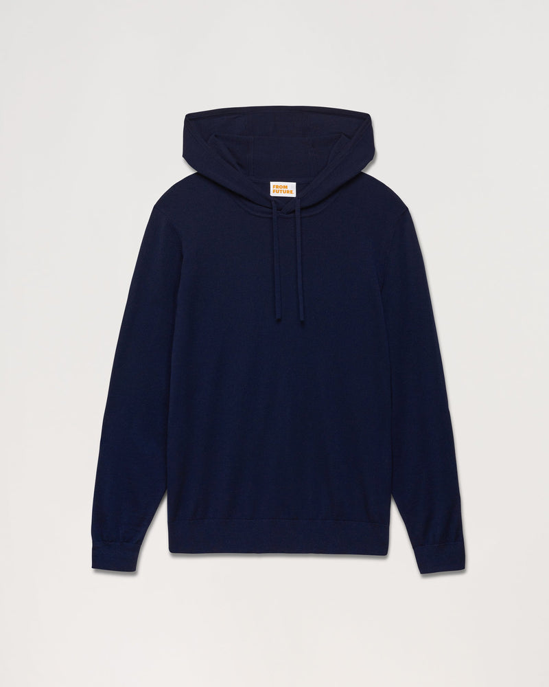 Pull Hoodie Uni - Laine Mérinos - Navy