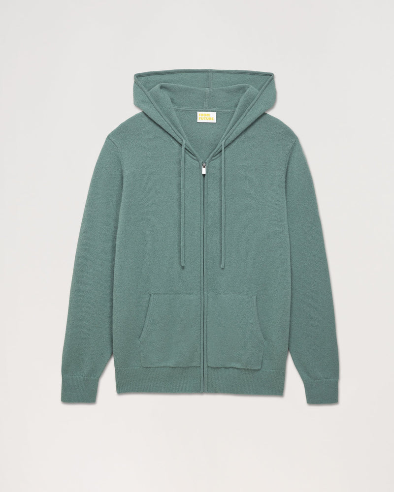 Pull Hoodie Zippe A Poches Light - Cachemire - Washed green