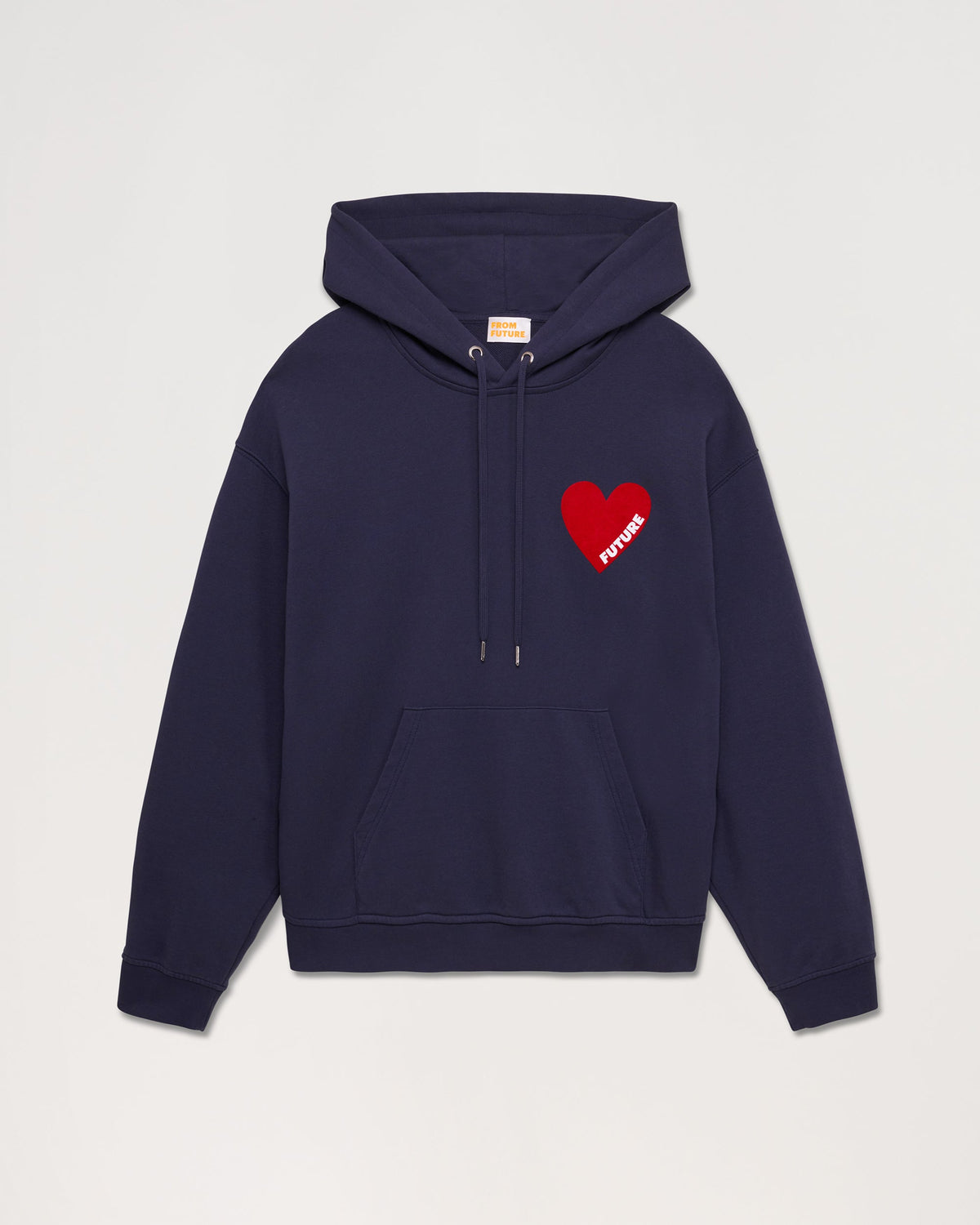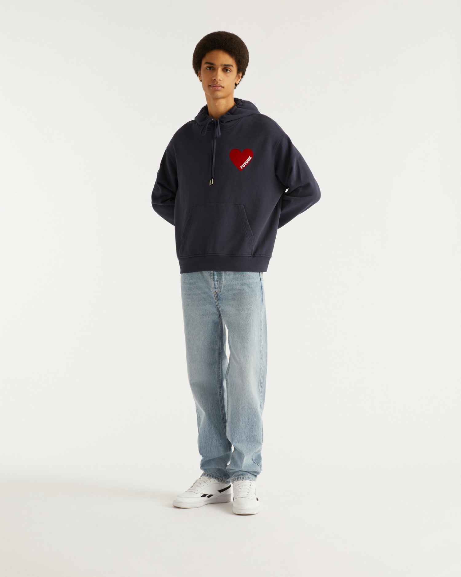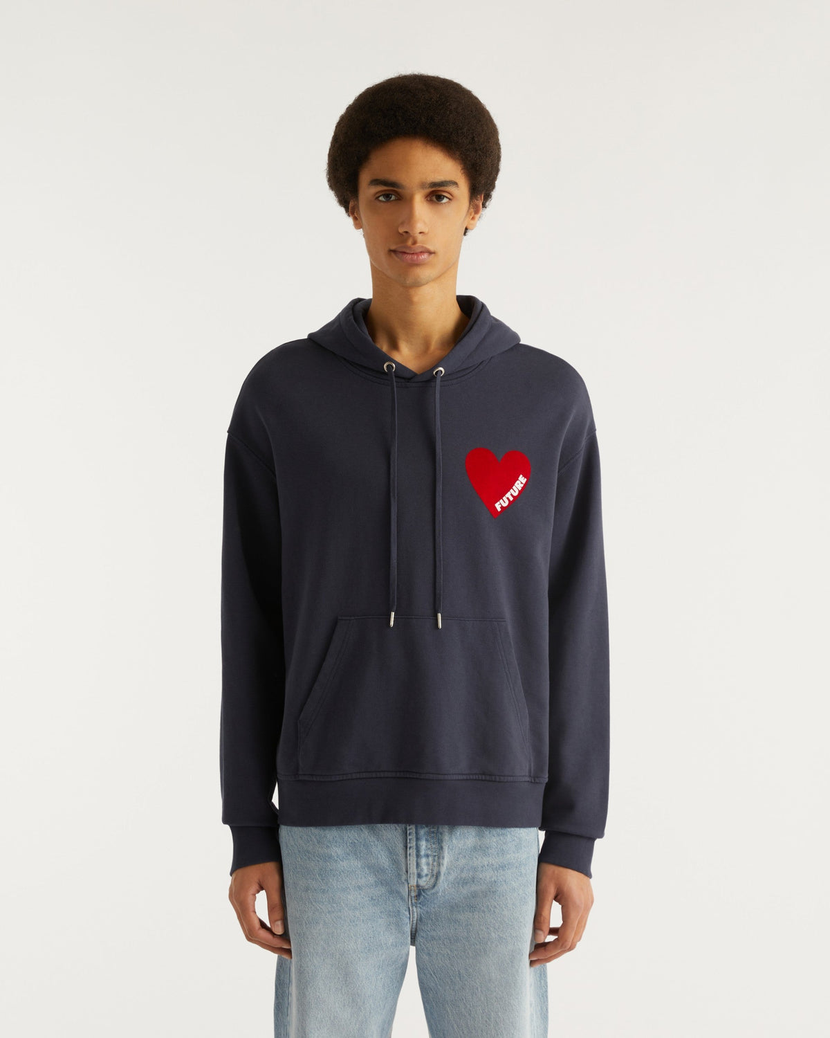 Sweatshirt Hoodie Broderie Coeur - Coton Organique - Navy