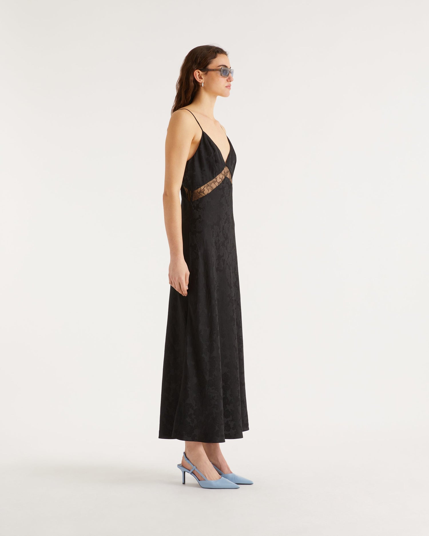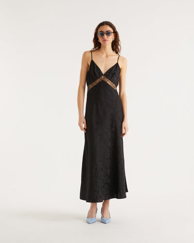 Robe Longue Bretelle Carly - Soie - Jacquard noir