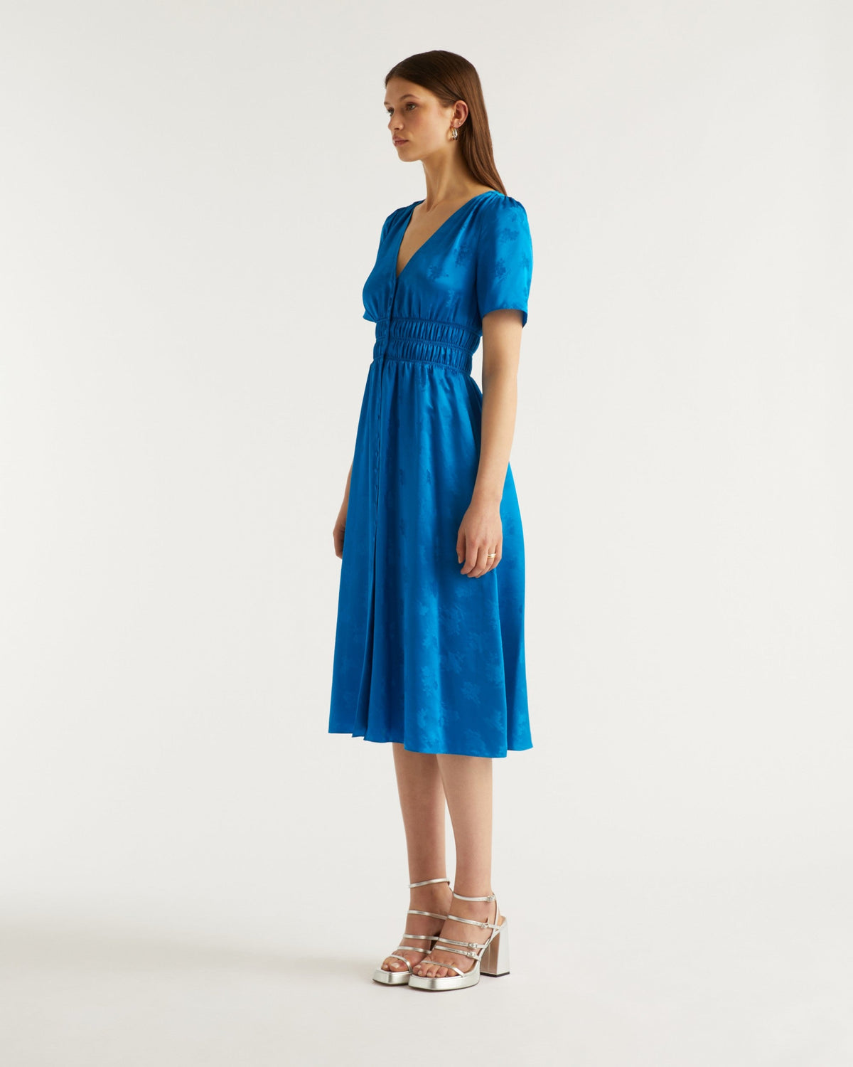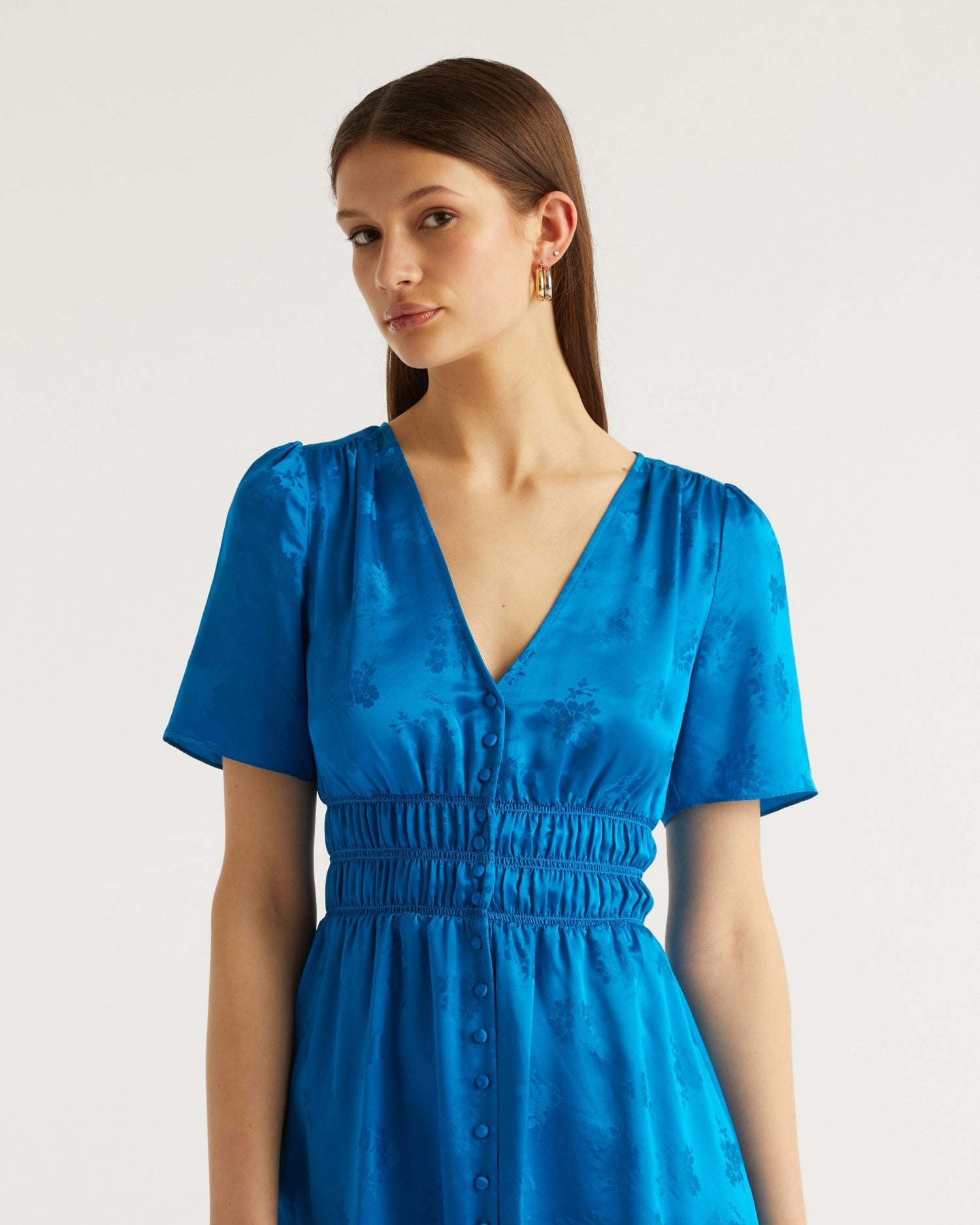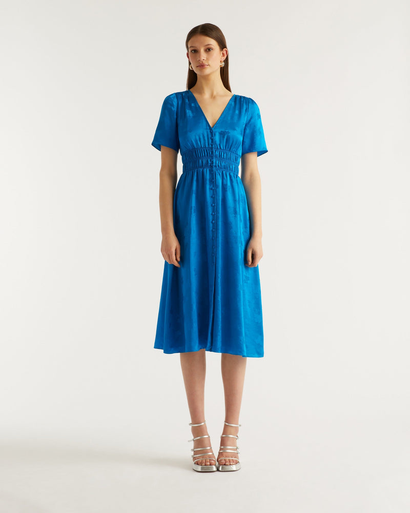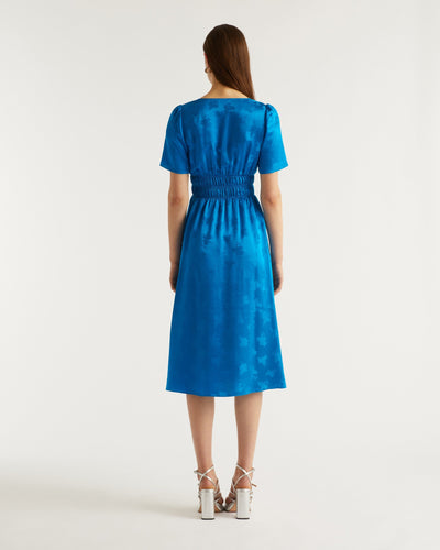 Robe Longue Manche Courte Alicia - Soie - Jacquard bleu