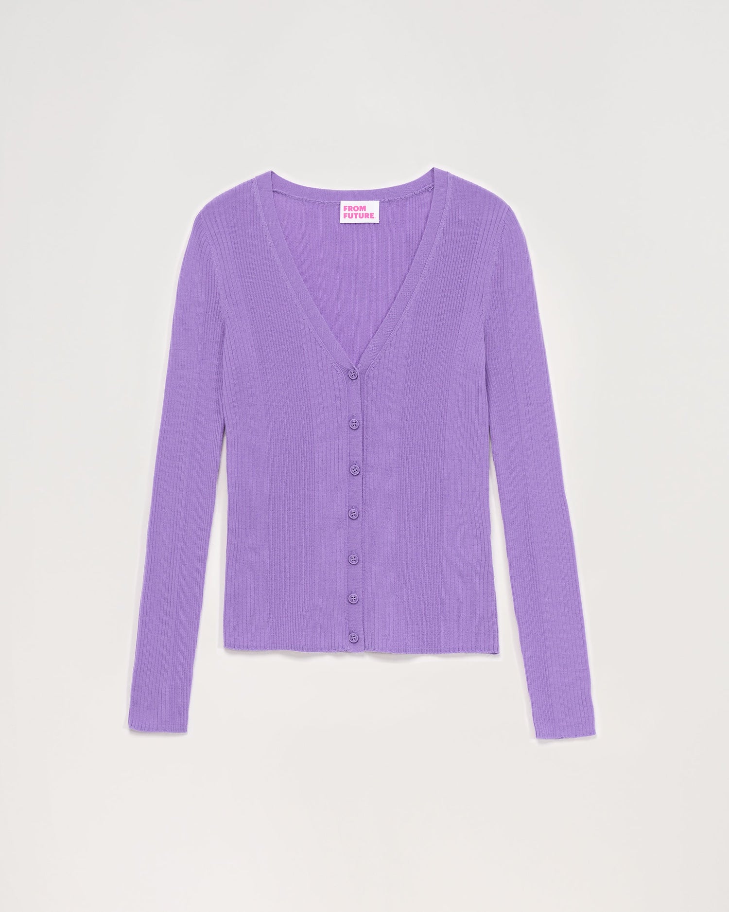 Cardigan à Côtes Ice Wool - Laine Mérinos - Power lilac