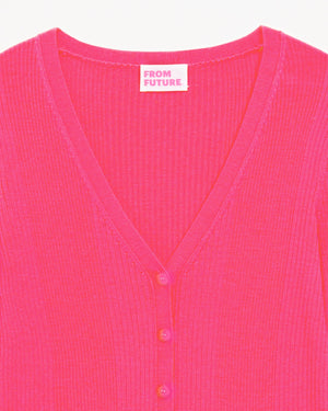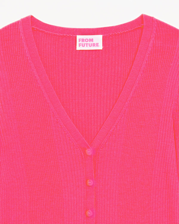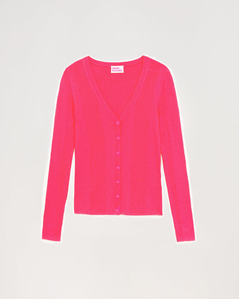 Cardigan à Côtes Ice Wool - Laine Mérinos - Winter fuschia