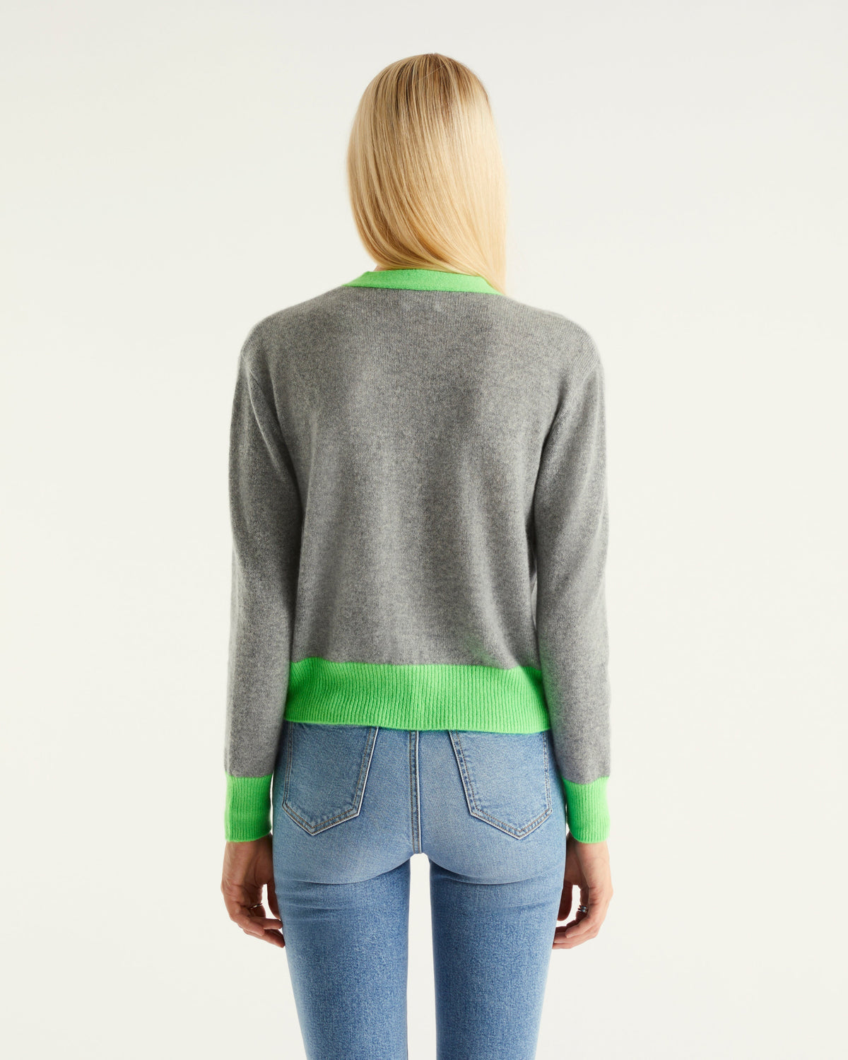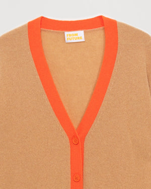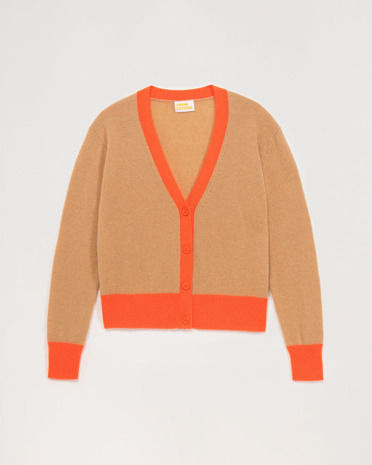 Cardigan Court À Bandes Contrastées 2 Fils - 100% Cachemire - Camel
