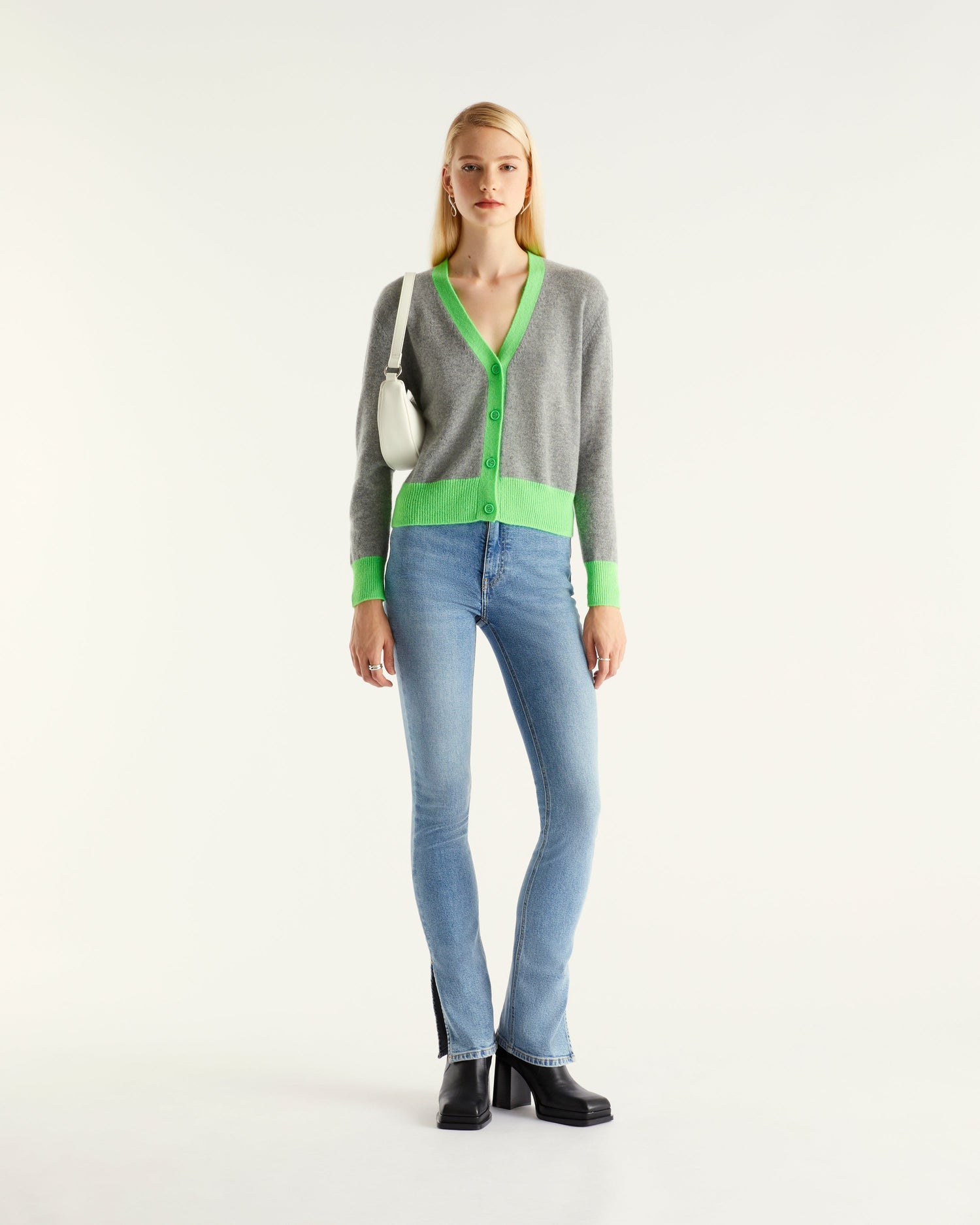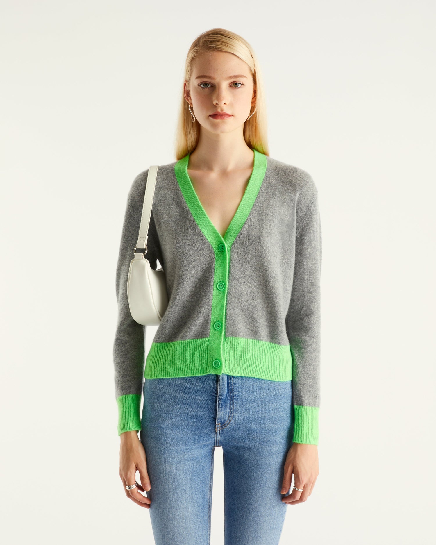 Cardigan Court À Bandes Contrastées 2 Fils - 100% Cachemire - Intense purple