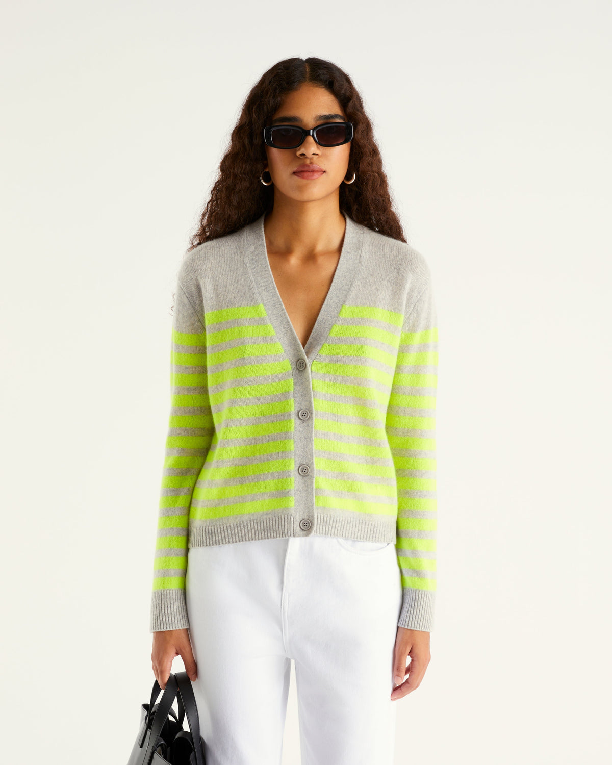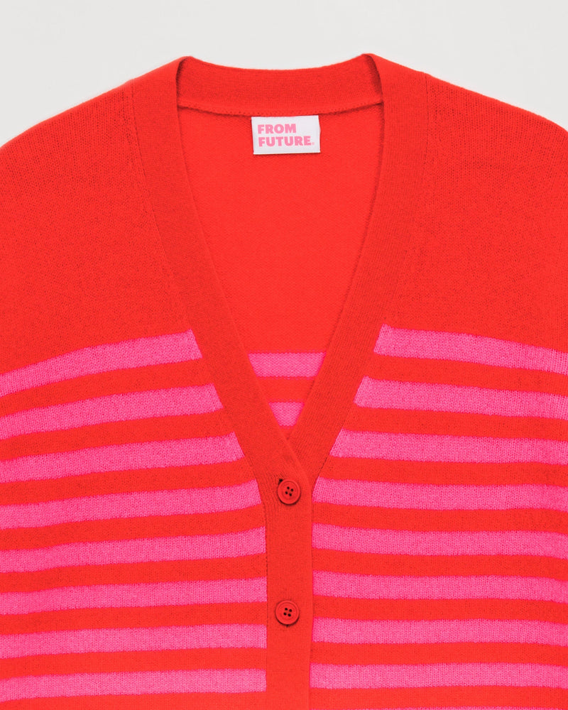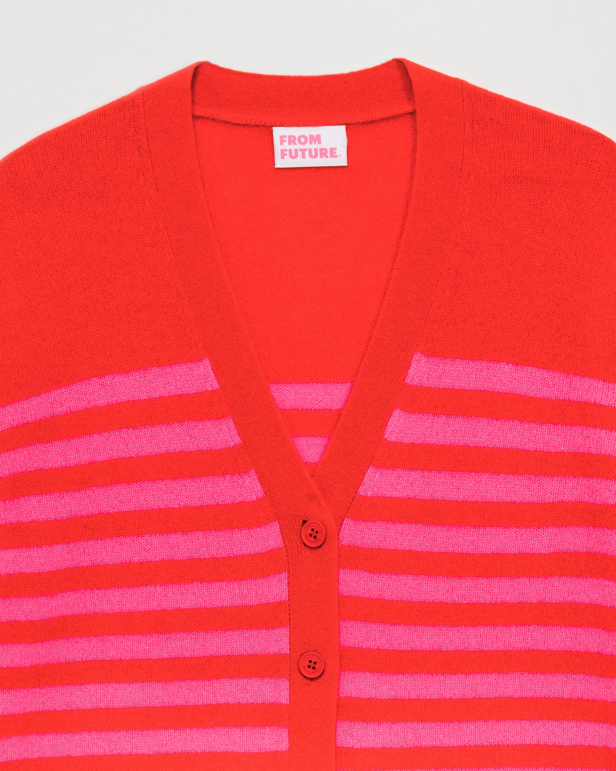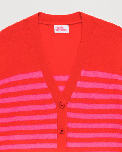 Cardigan Court Rayures 2 Fils - 100% Cachemire - Rouge vif