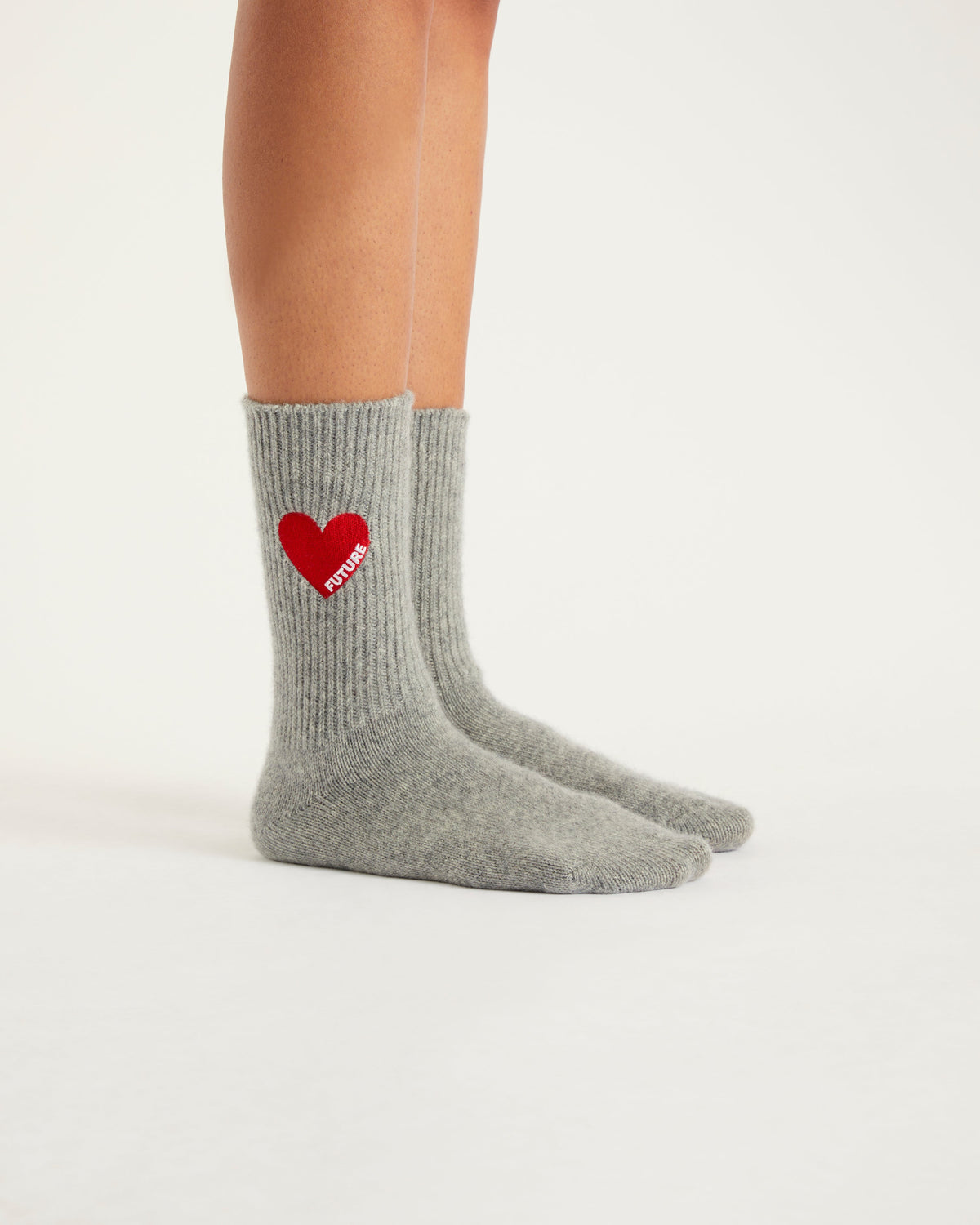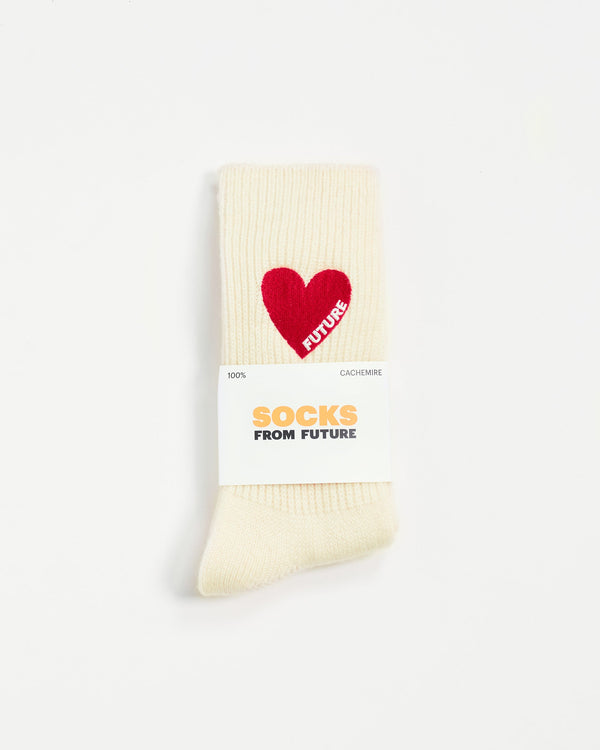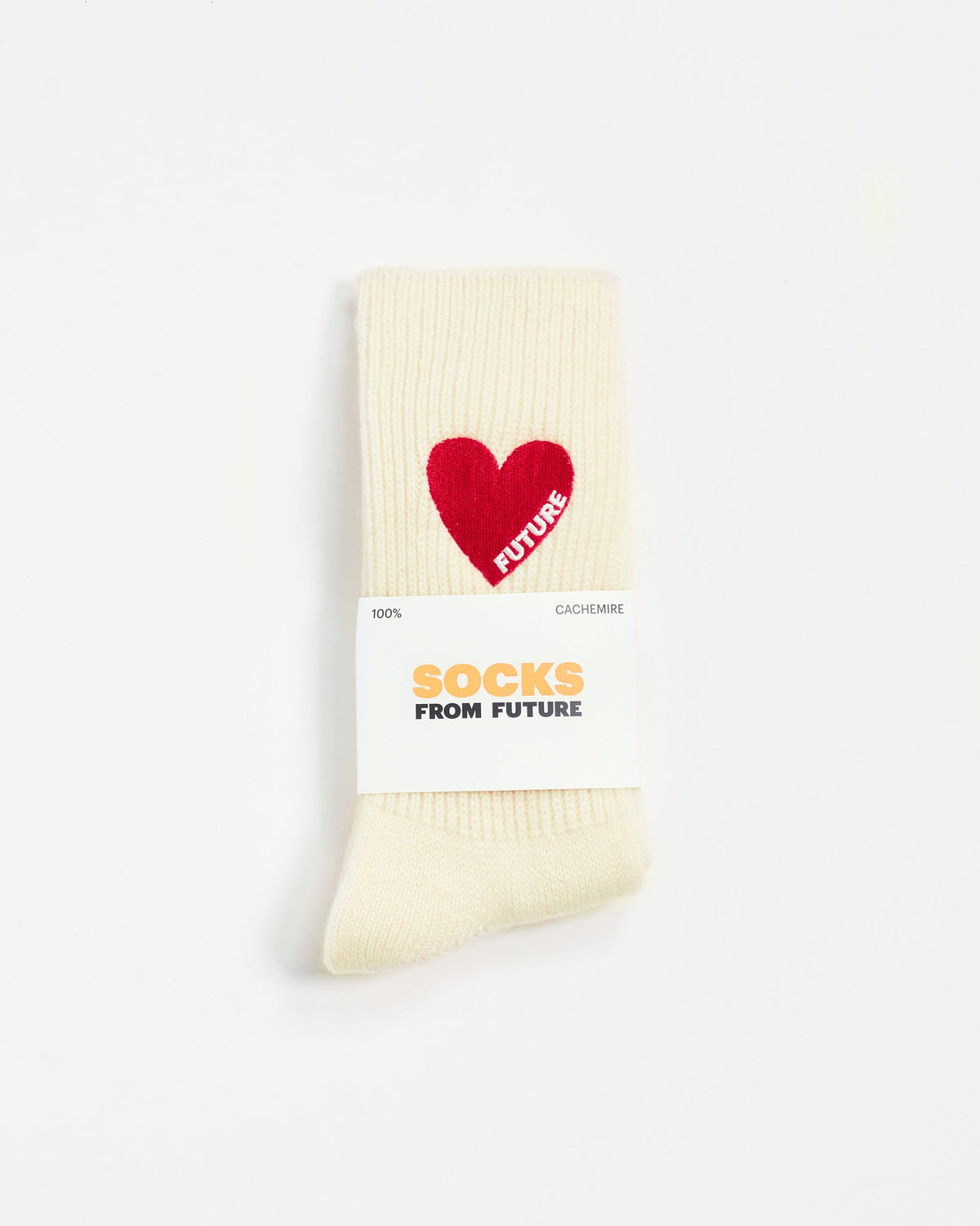 Chaussettes Cœur Future - 100% Cachemire - Ecru