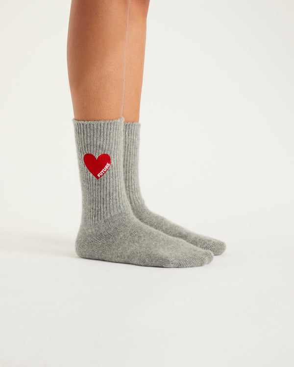 Chaussettes Cœur Future - 100% Cachemire - Gris chine fonc