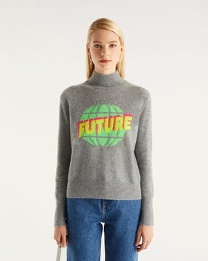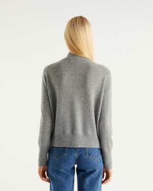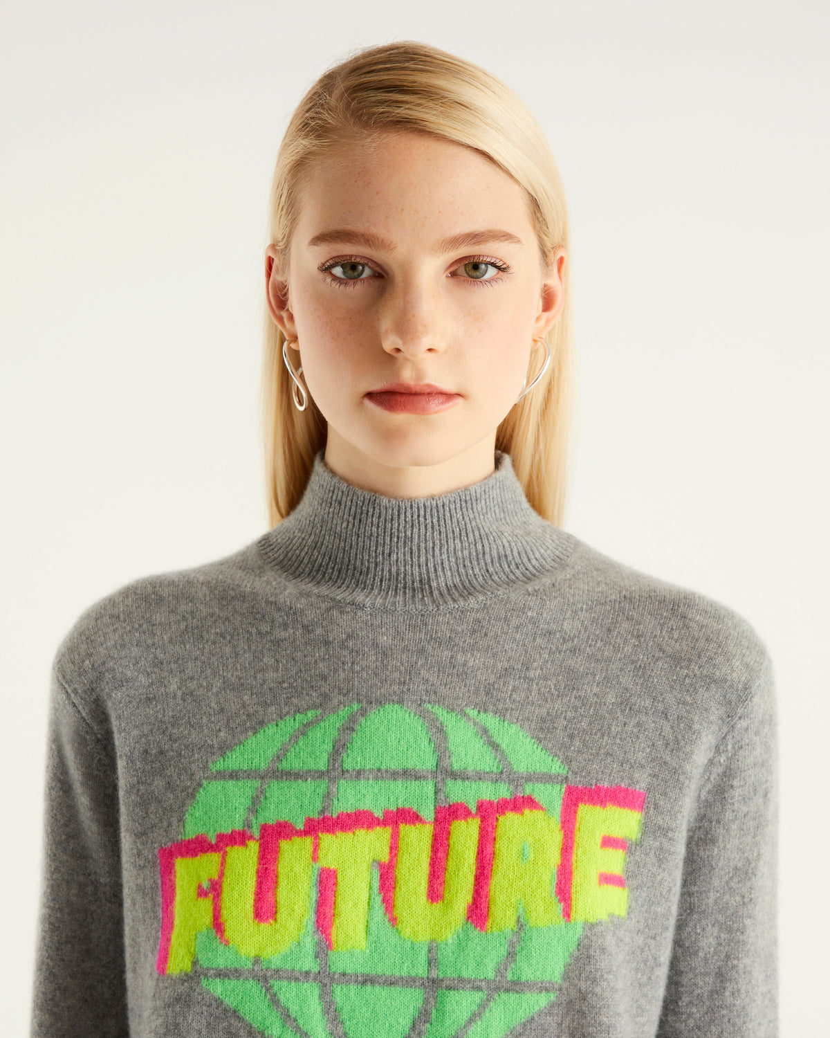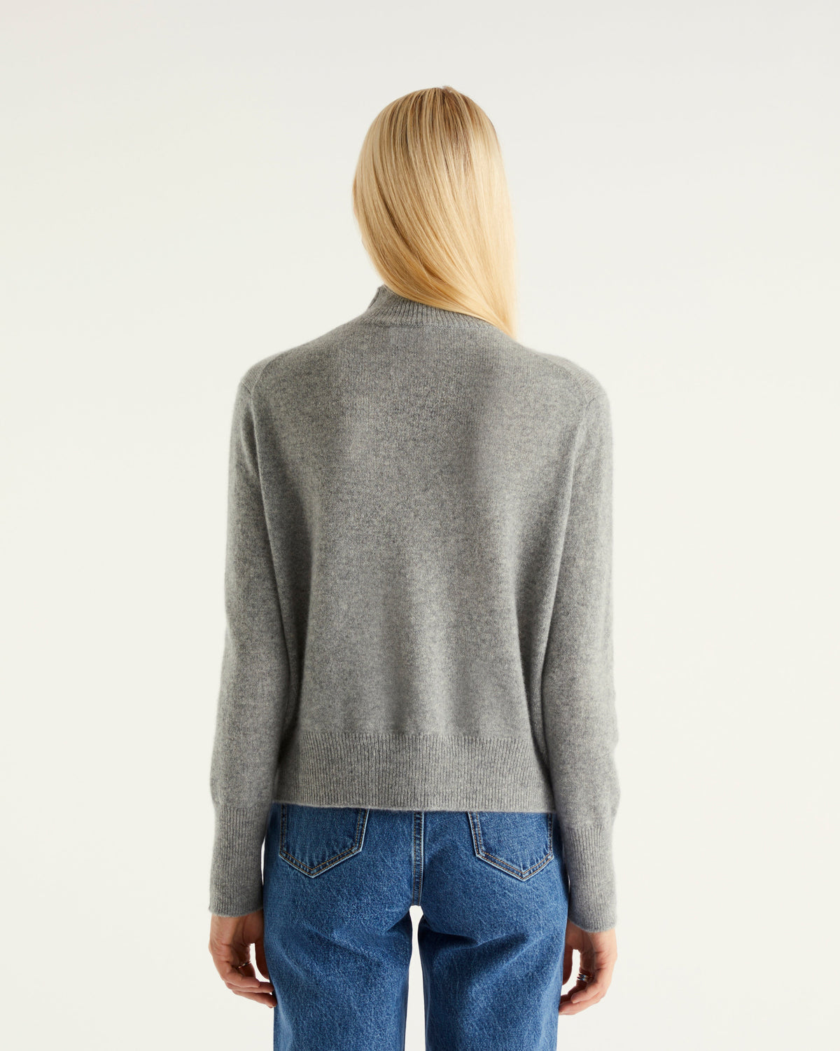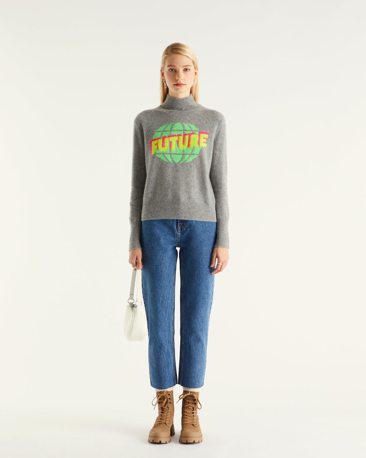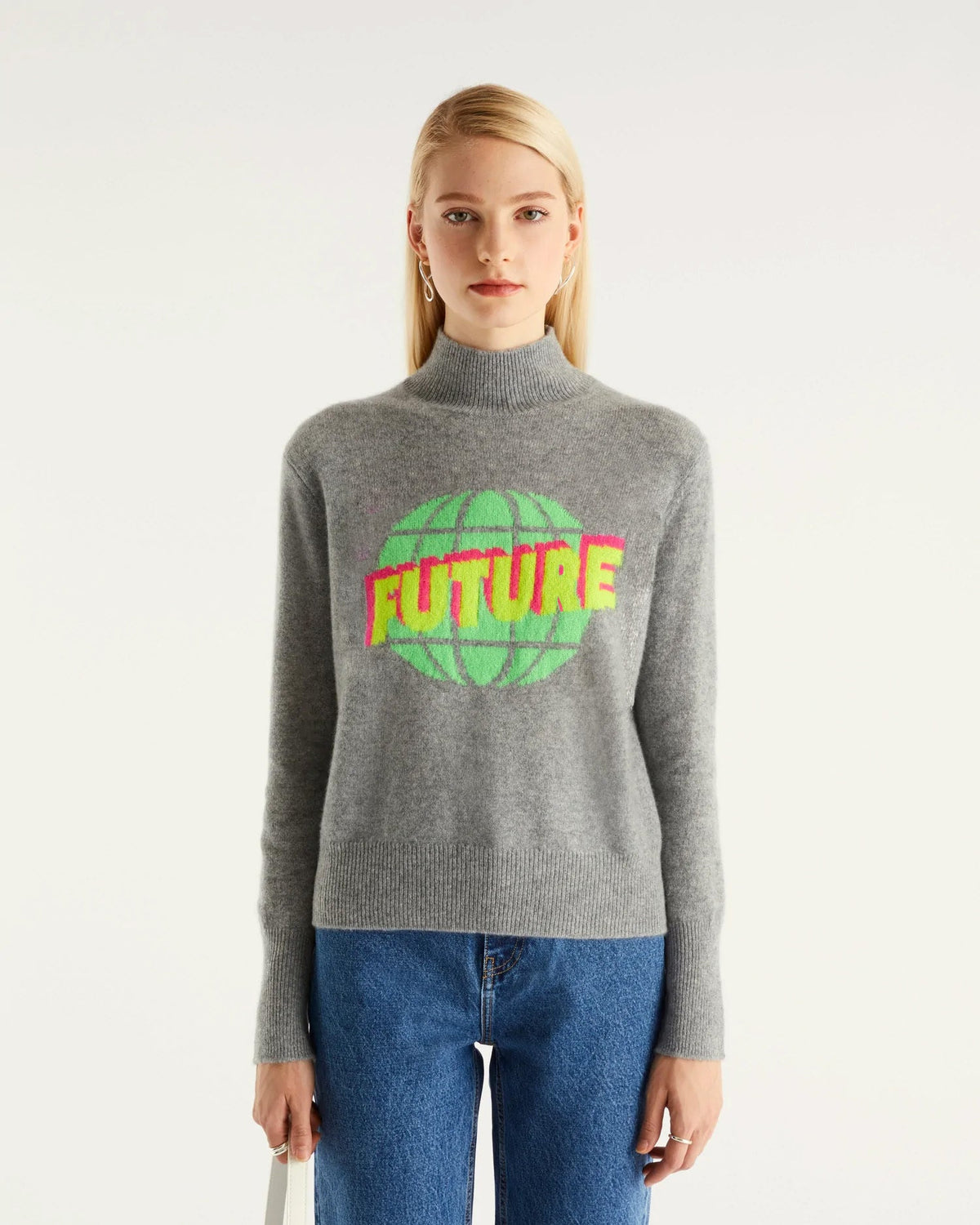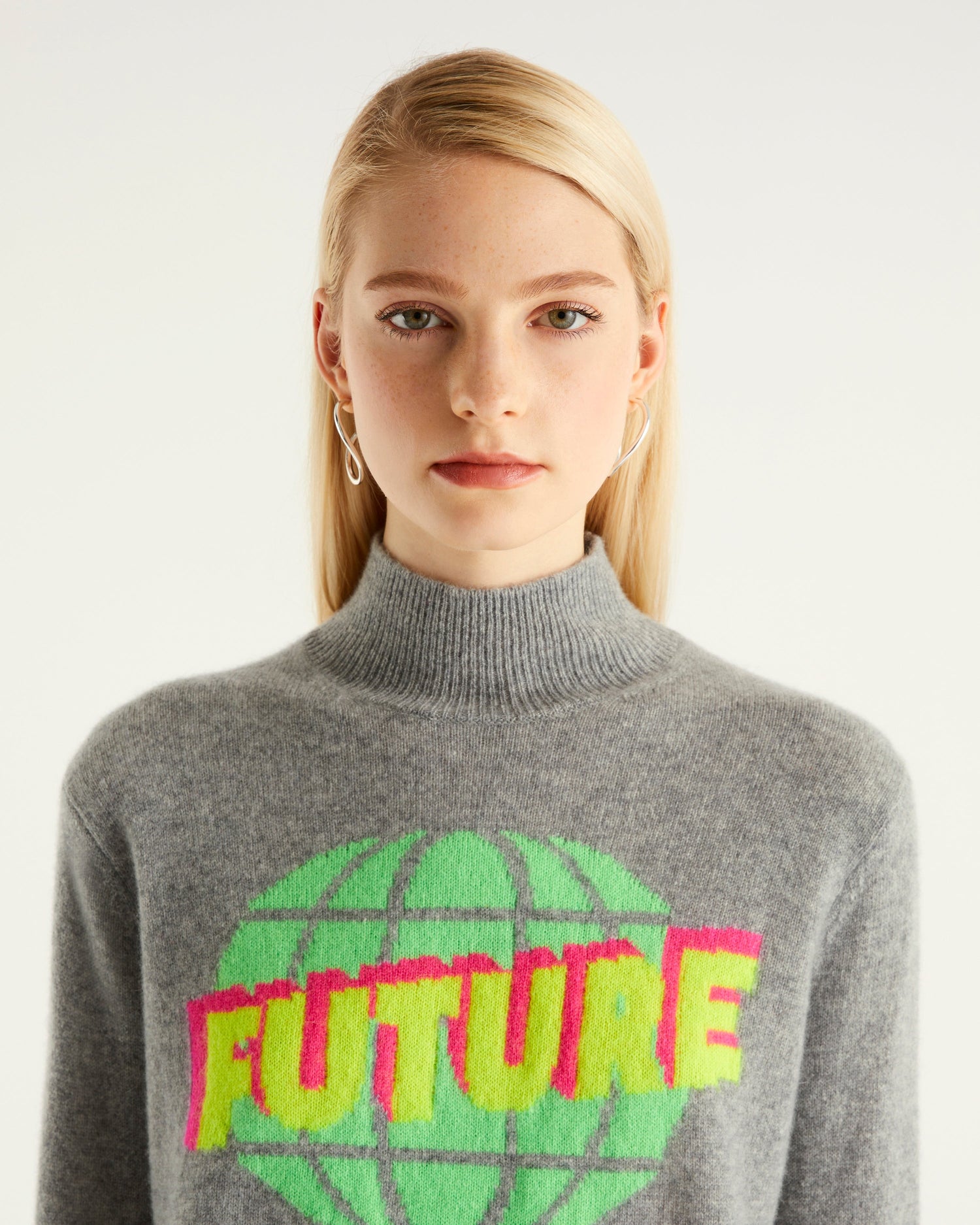 Pull Col Montant Court Future Globe 2 Fils - 100% Cachemire - Gris chine fonc