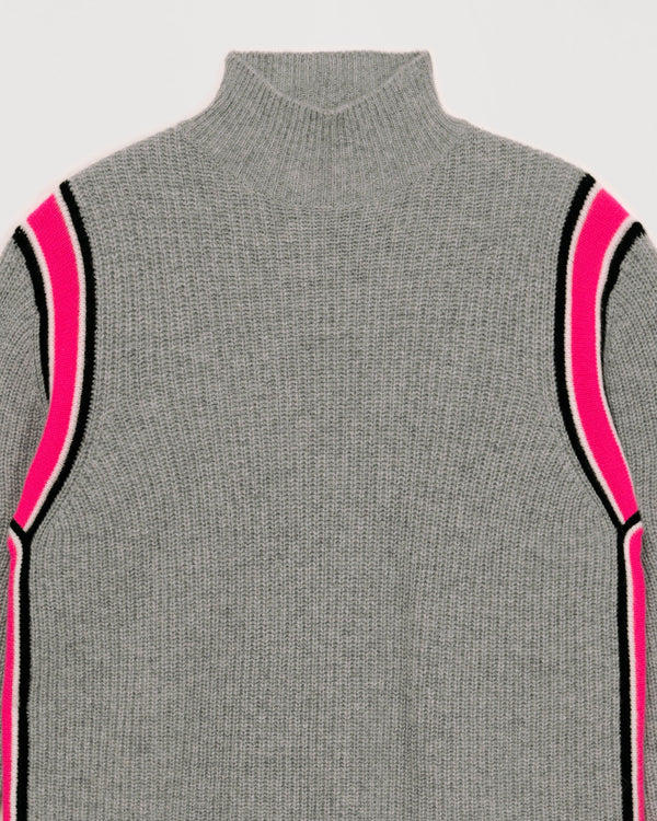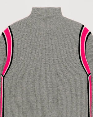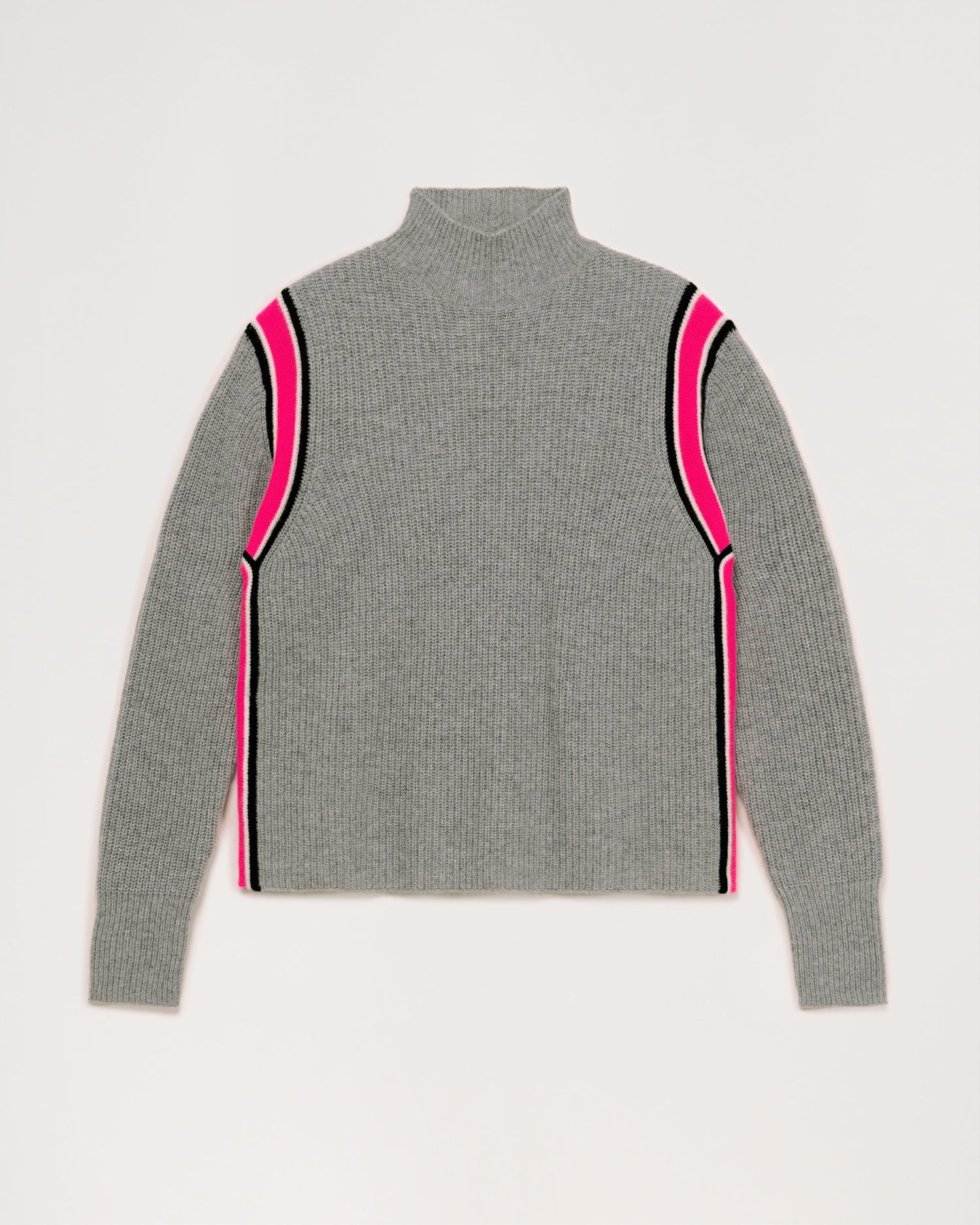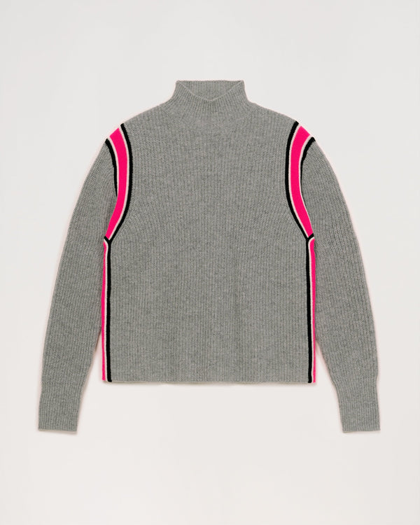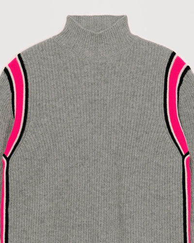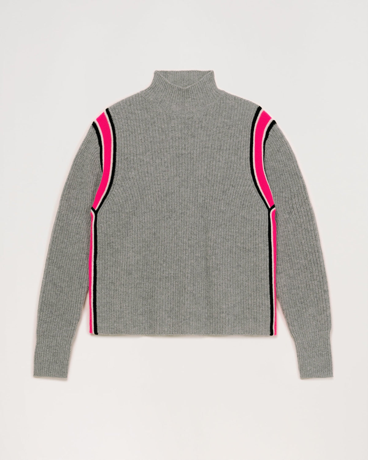 Pull Col Montant Court Maille Perlée Bande 4 Fils - 100% Cachemire - Gris chine fonc
