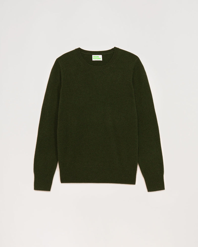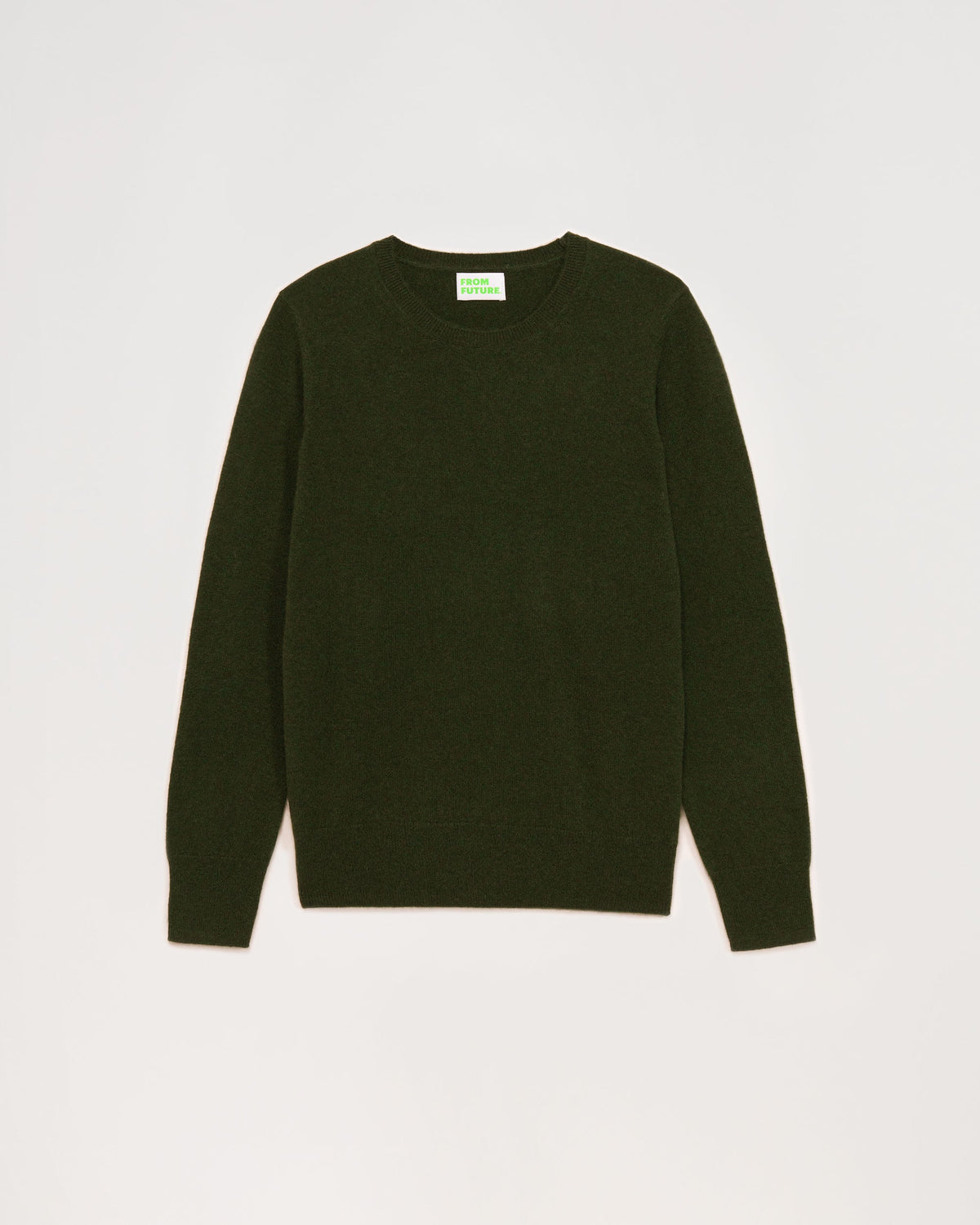Pull Col Rond 2 Fils - 100% Cachemire - Kaki