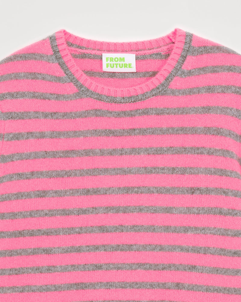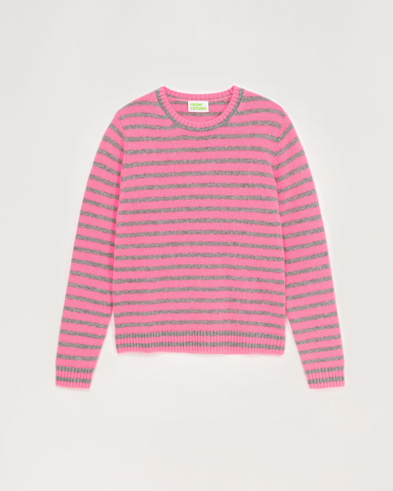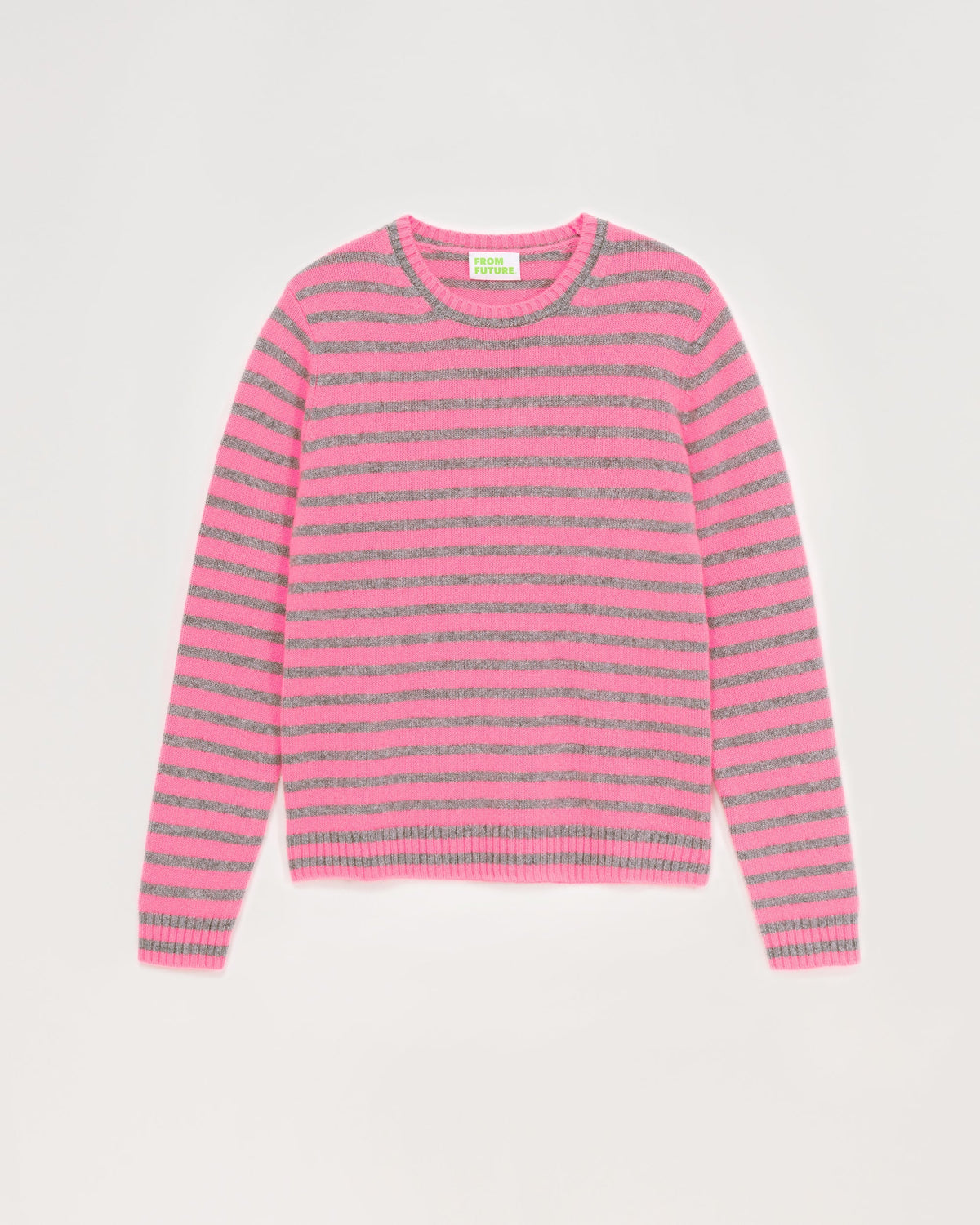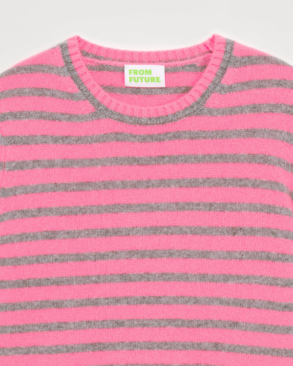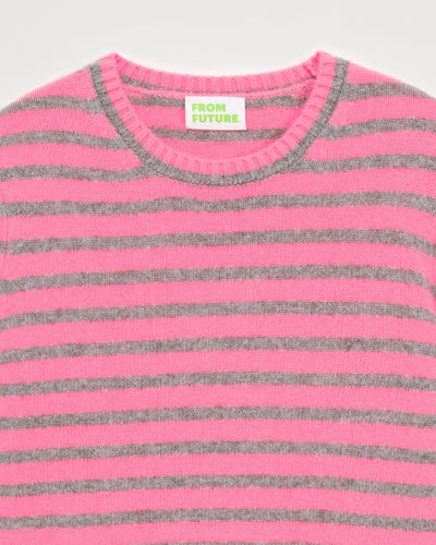 Pull Col Rond À Rayures 4 Fils - 100% Cachemire - Gris chine fonc