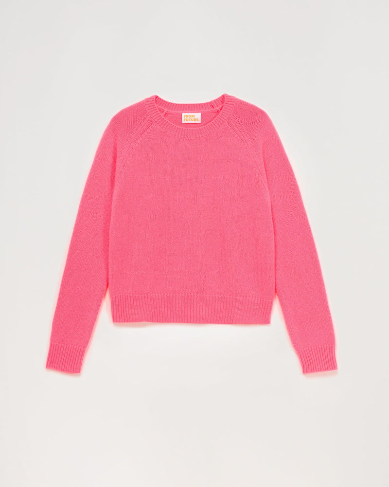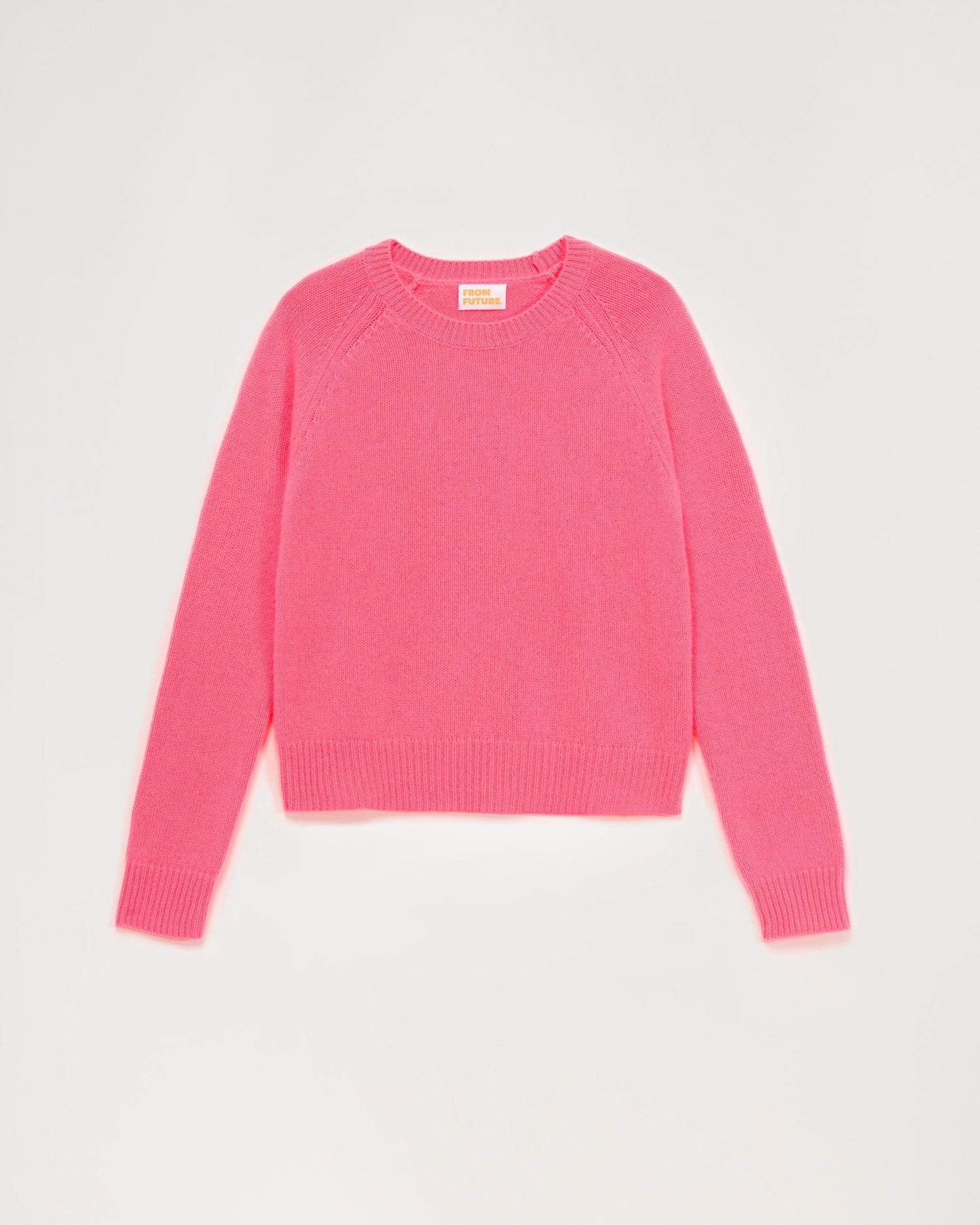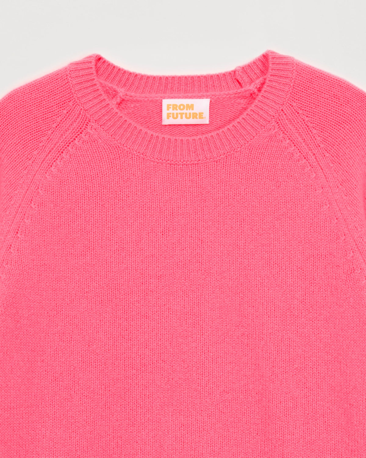 Pull Col Rond Court 6 Fils - 100% Cachemire - Acid pink