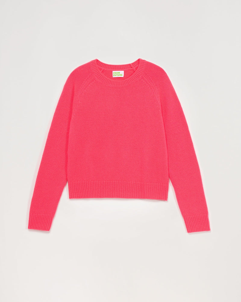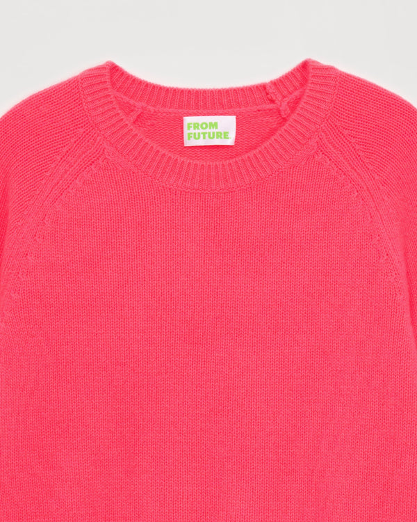 Pull Col Rond Court 6 Fils - 100% Cachemire - Neon pink