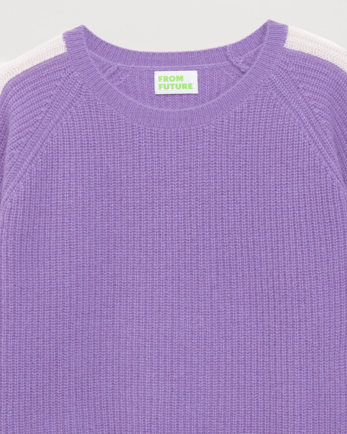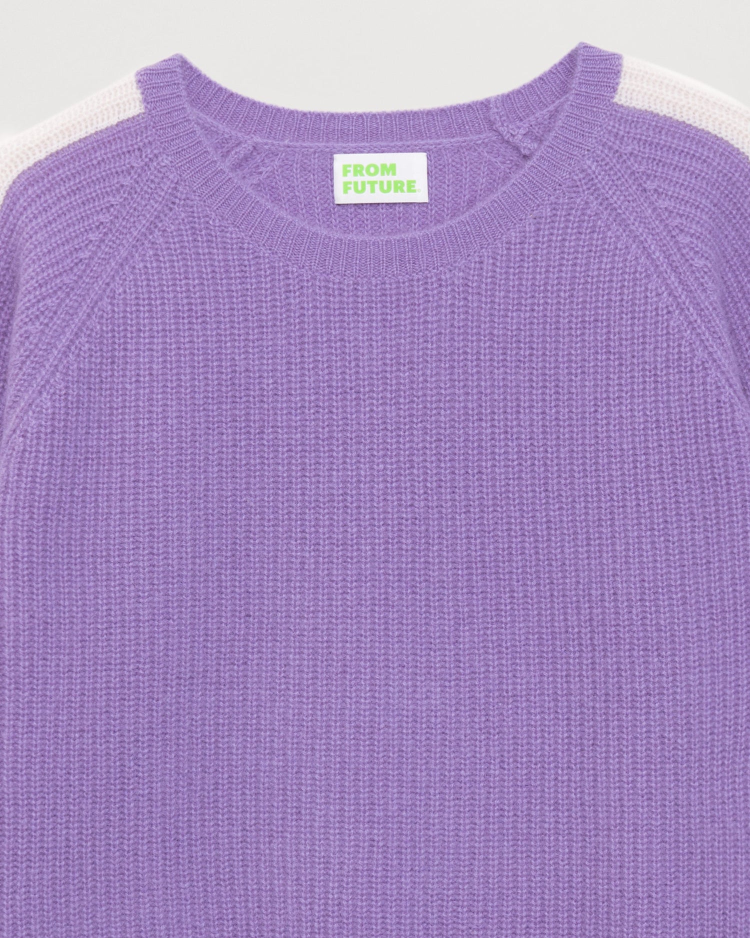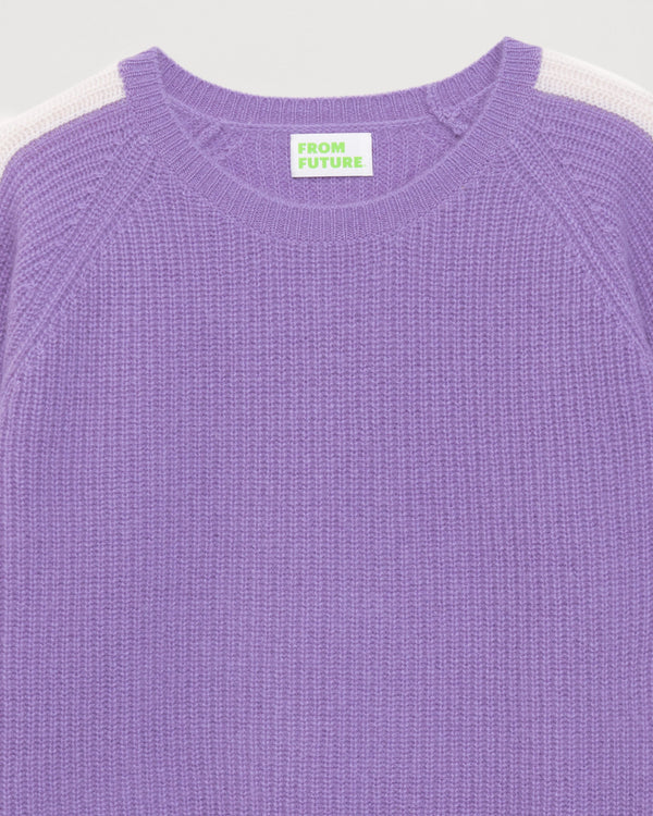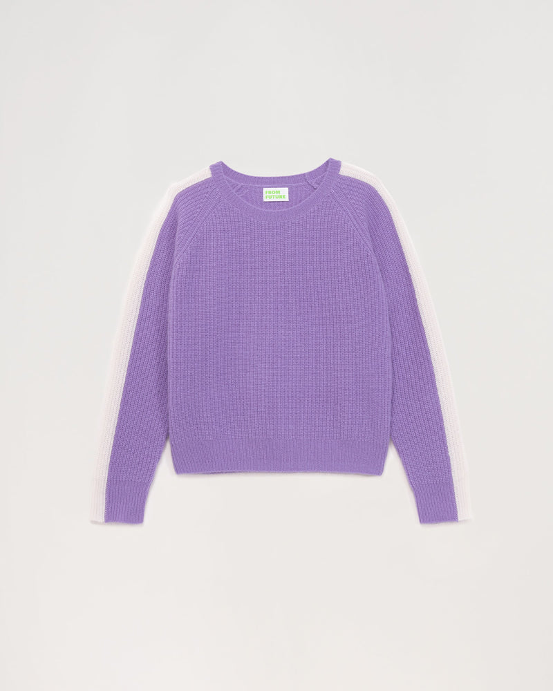 Pull Col Rond Court Maille Perlée À Bande 4 Fils - 100% Cachemire - Power lilac