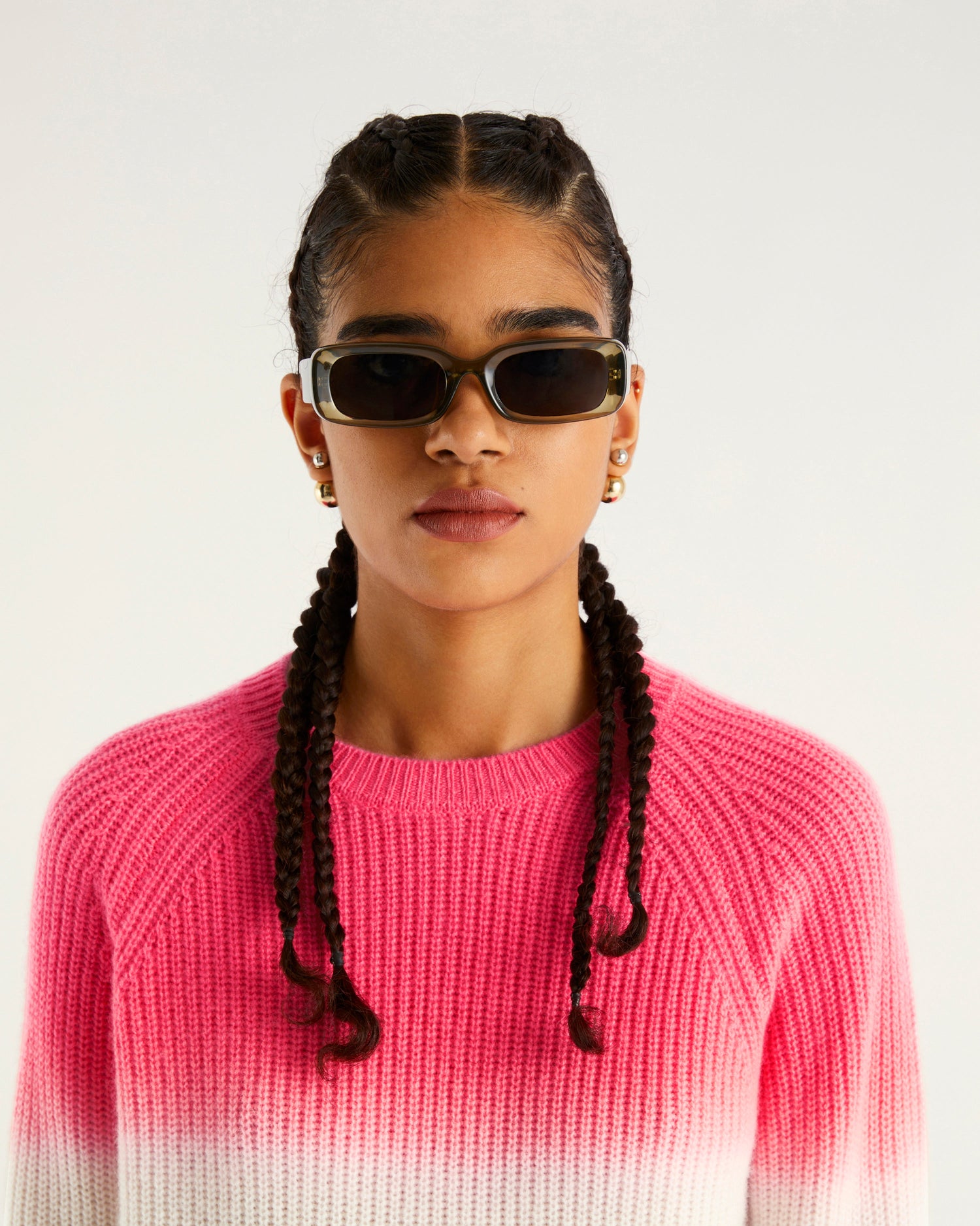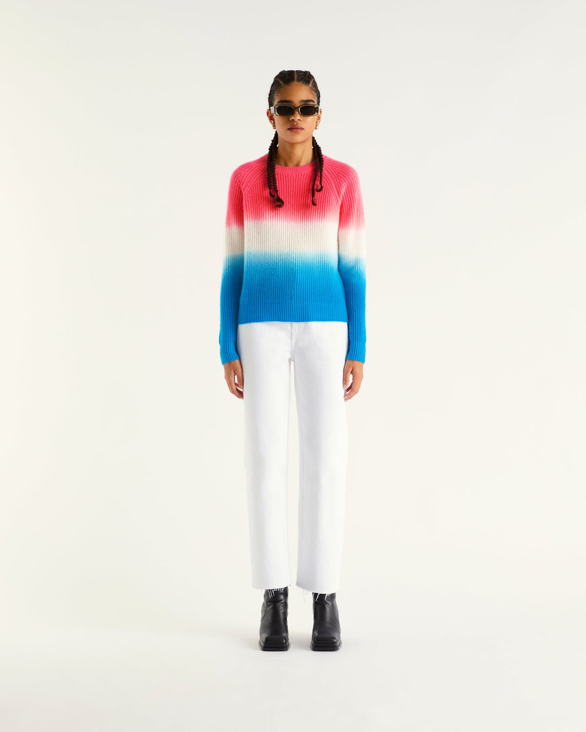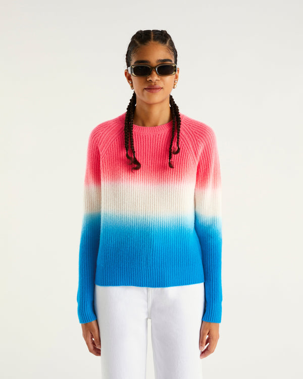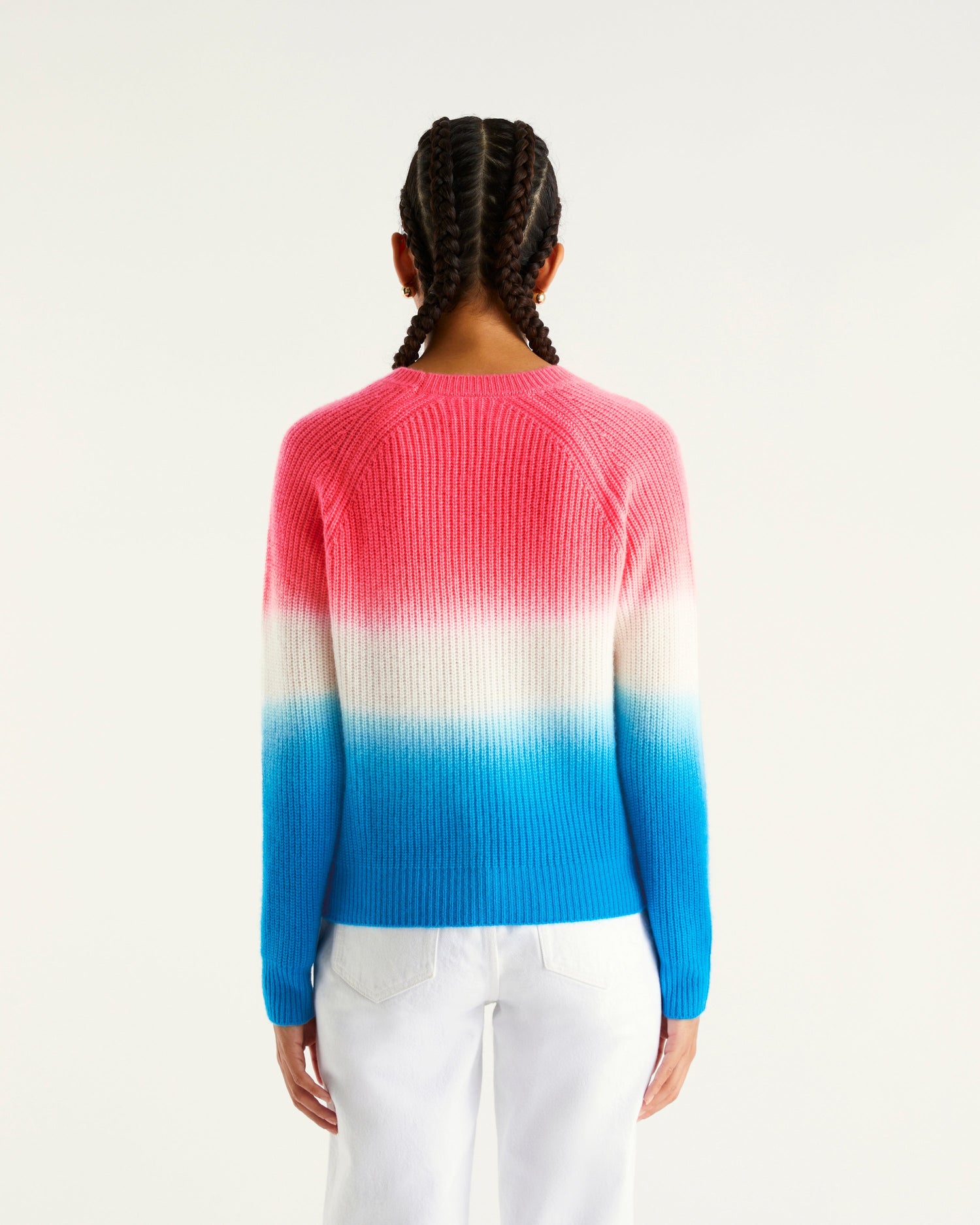 Pull Col Rond Court Maille Perlée Dip Dye 4 Fils - 100% Cachemire - T&d rose bleu