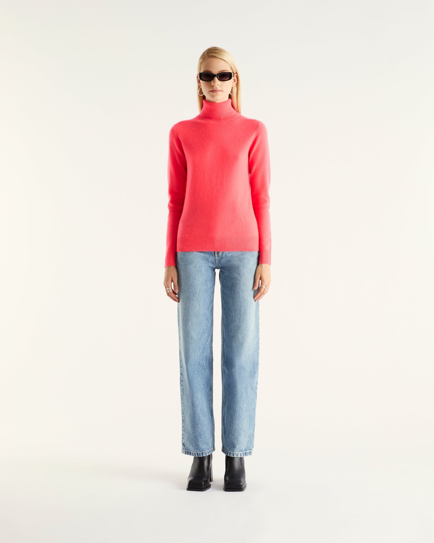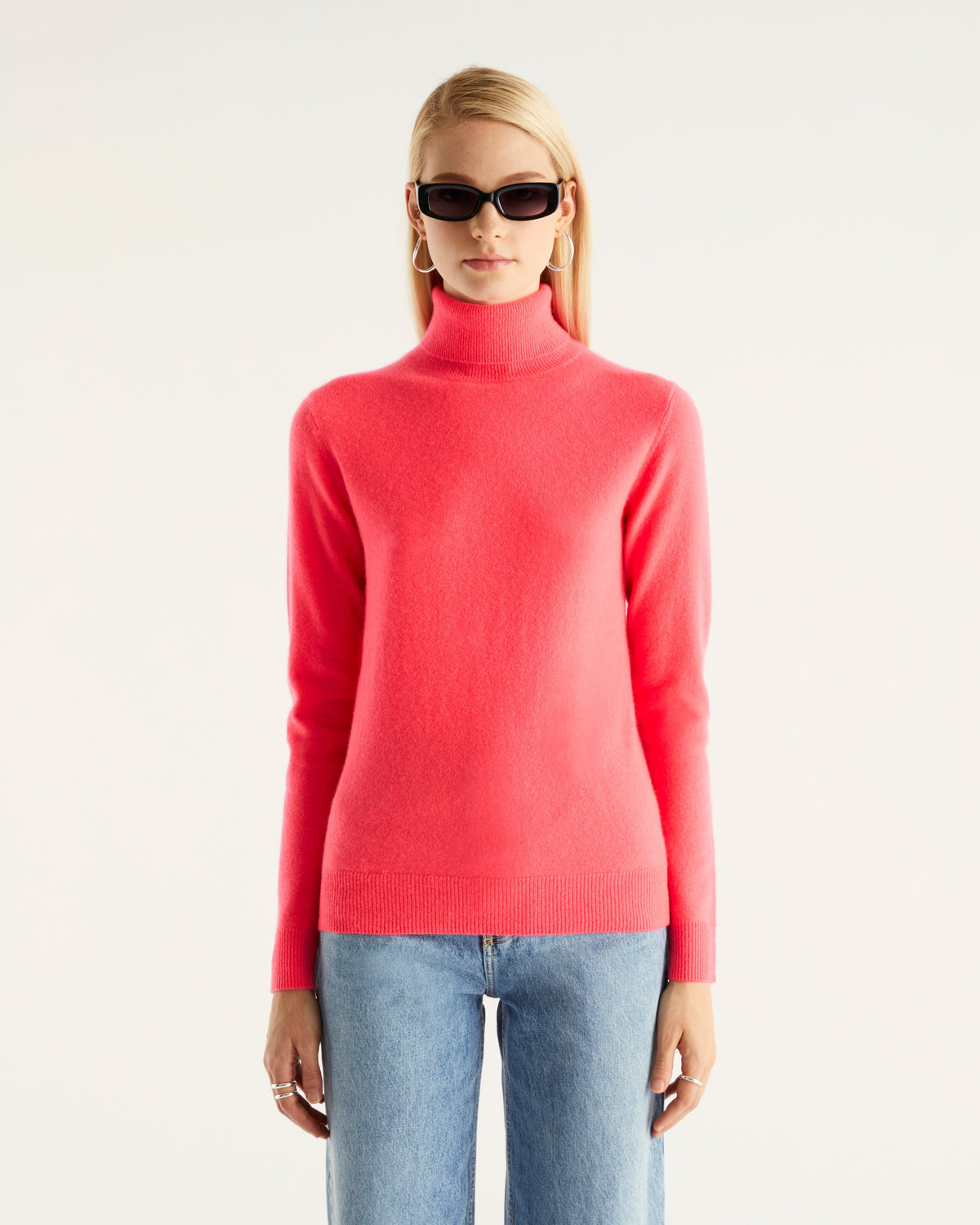 Pull Col Roulé 2 Fils - 100% Cachemire - Neon pink