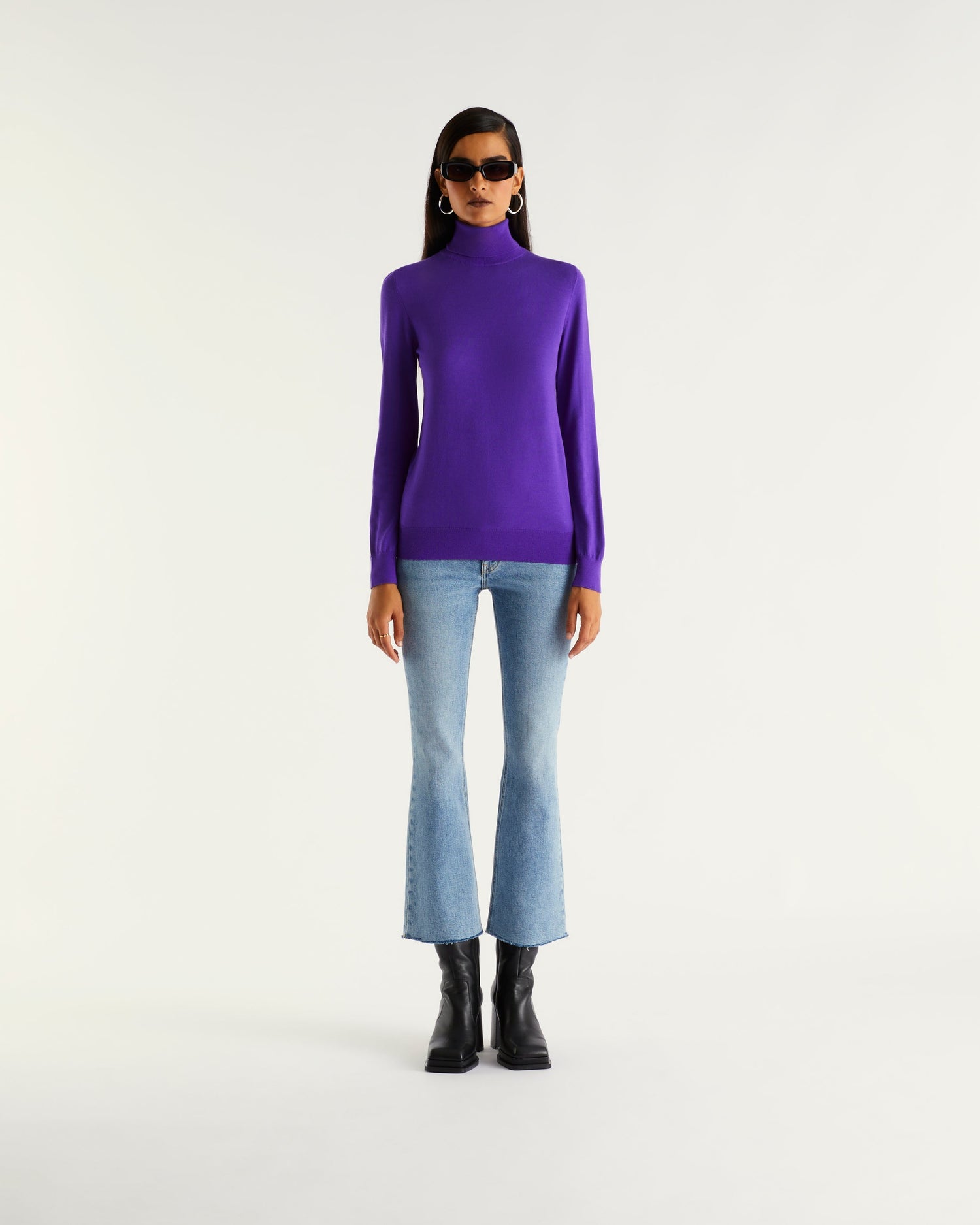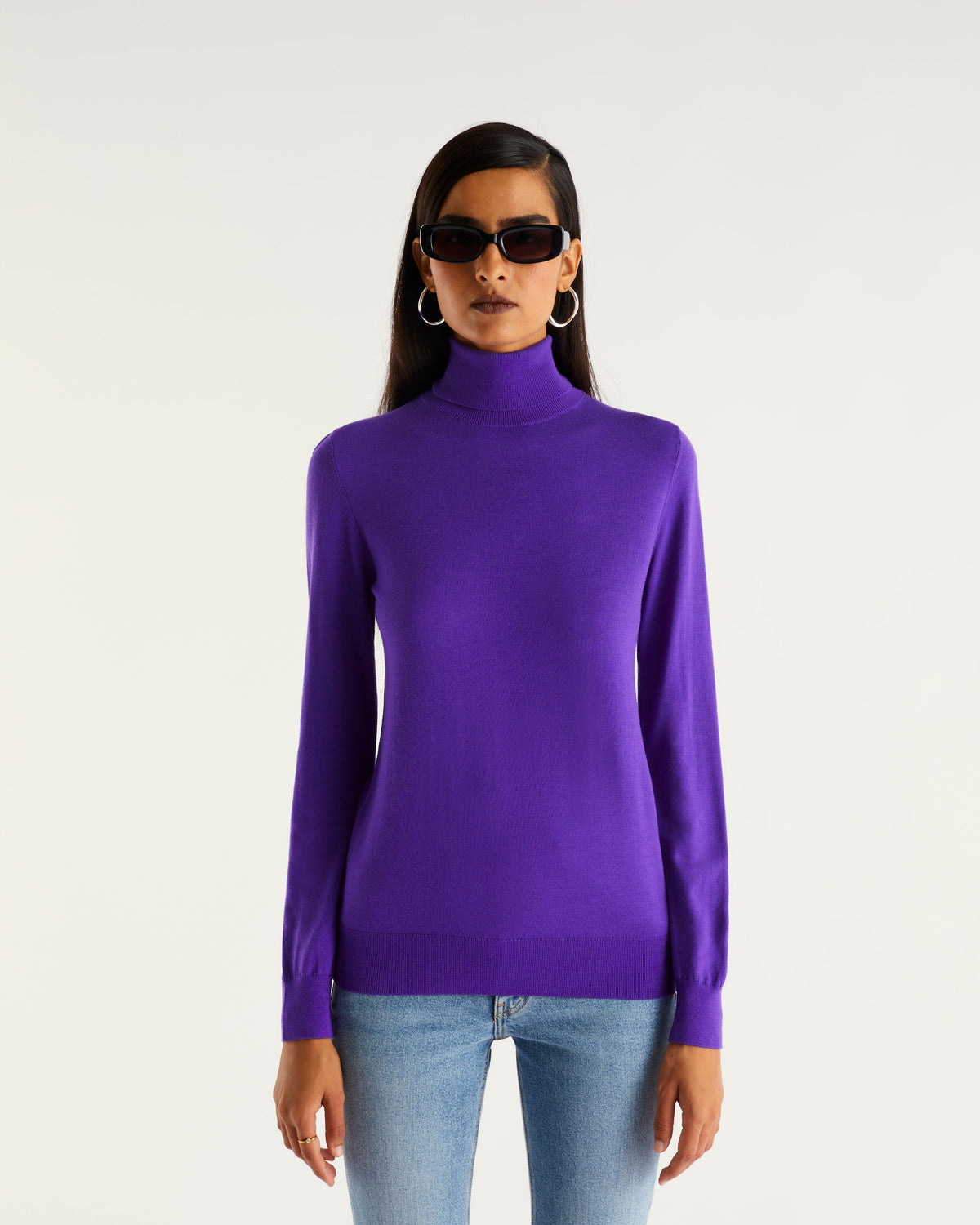 Pull Col Roulé Ice Wool - 100% Laine Mérinos - Violet fluo
