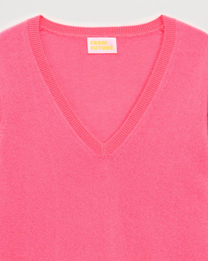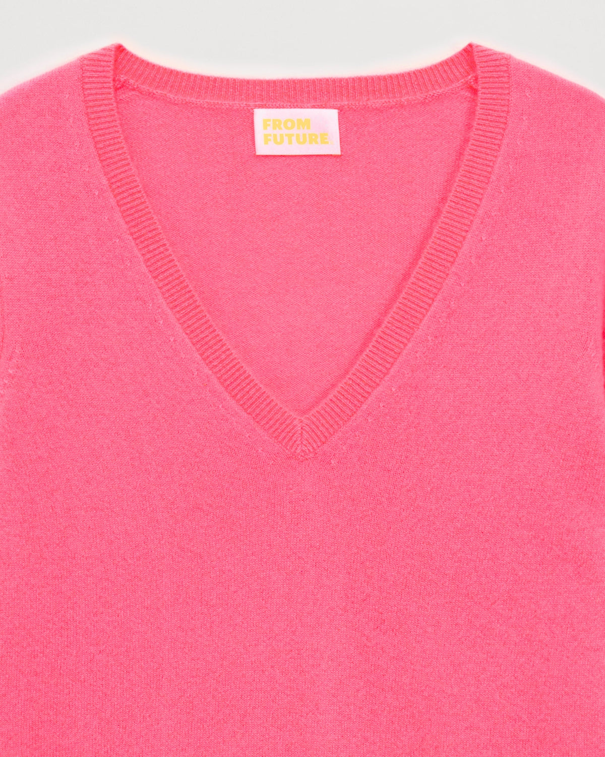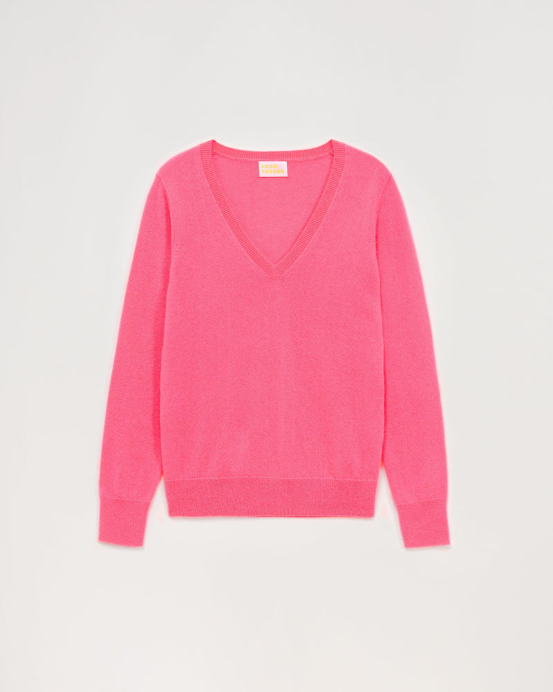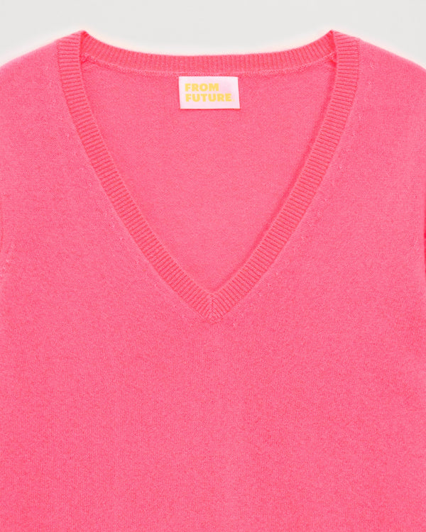 Pull Col V 2 Fils - 100% Cachemire - Acid pink