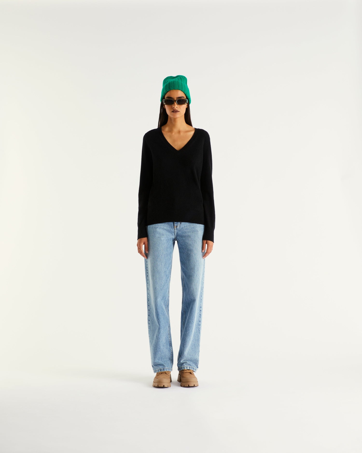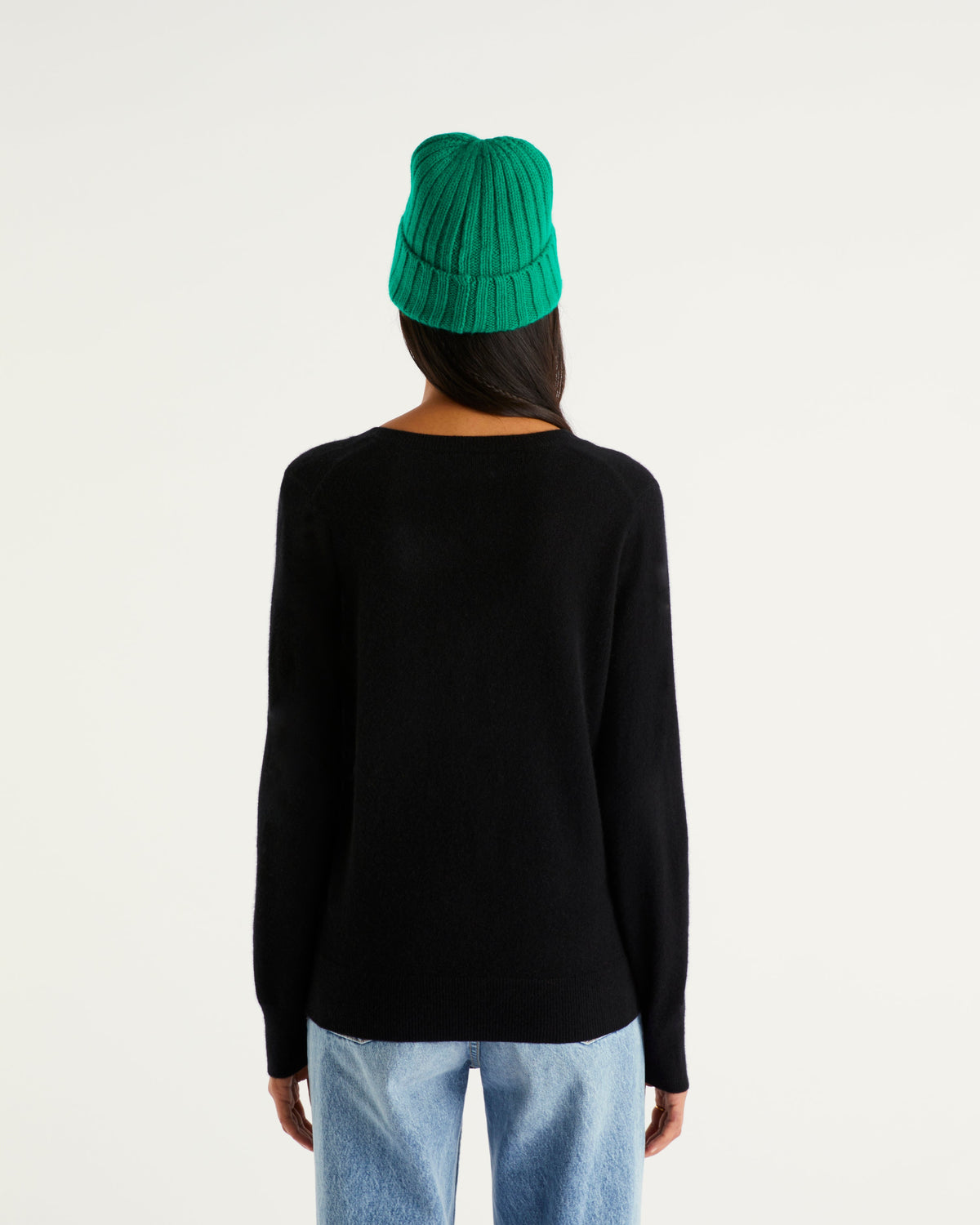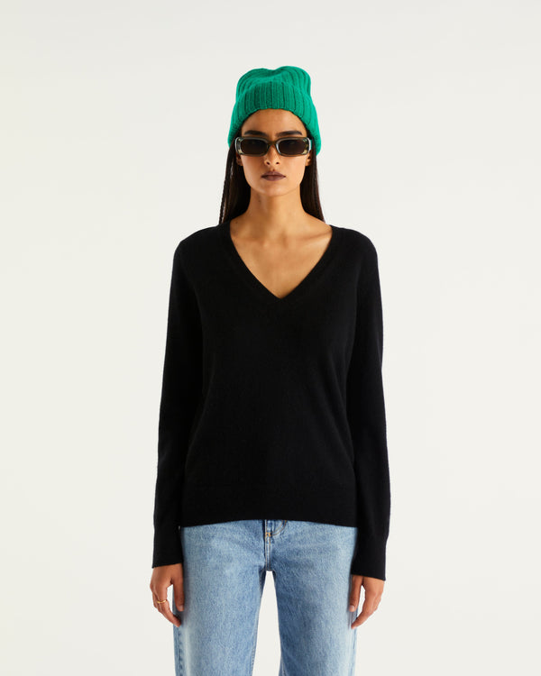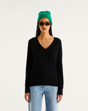 Pull Col V 2 Fils - 100% Cachemire - Noir