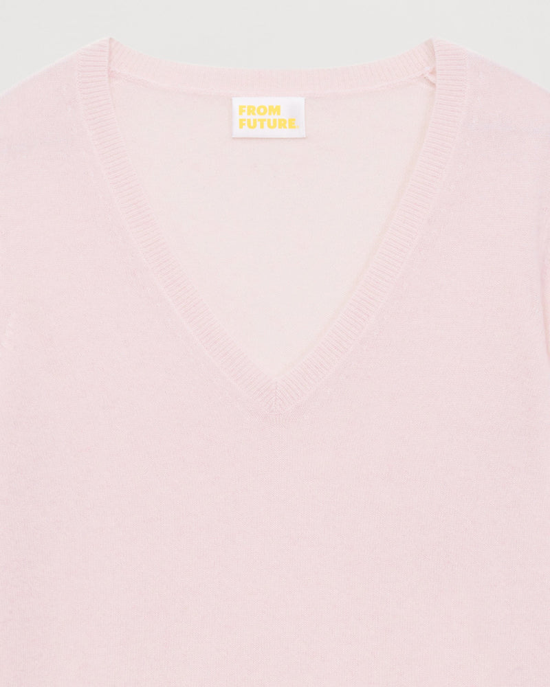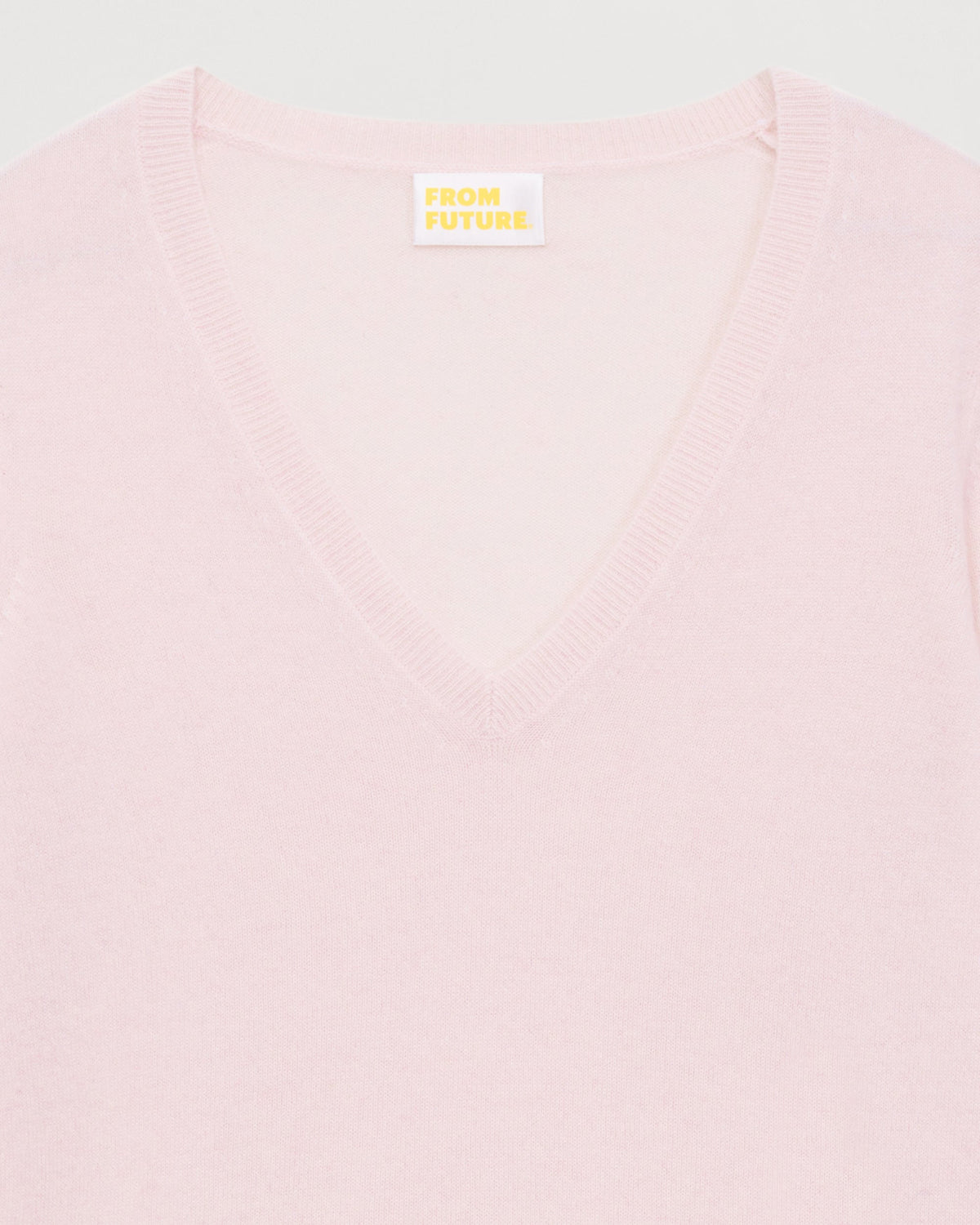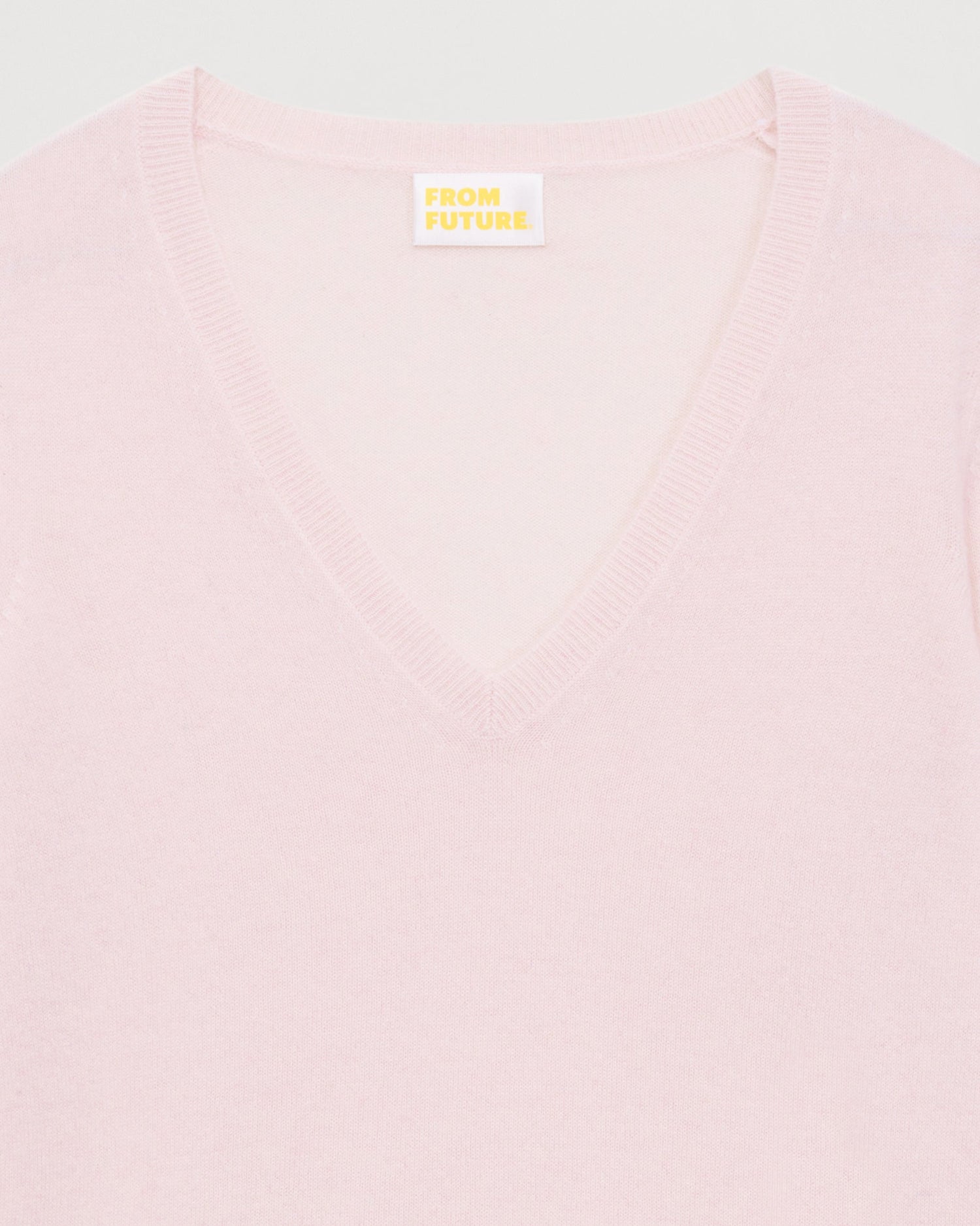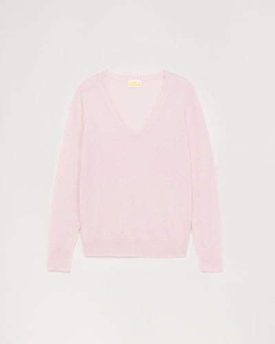 Pull Col V 2 Fils - 100% Cachemire - Rose poudre