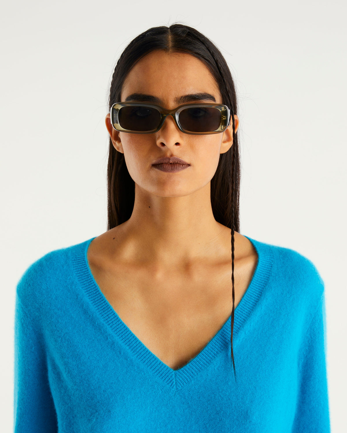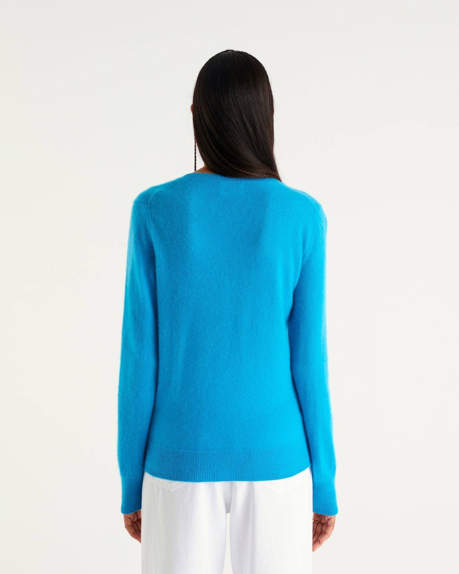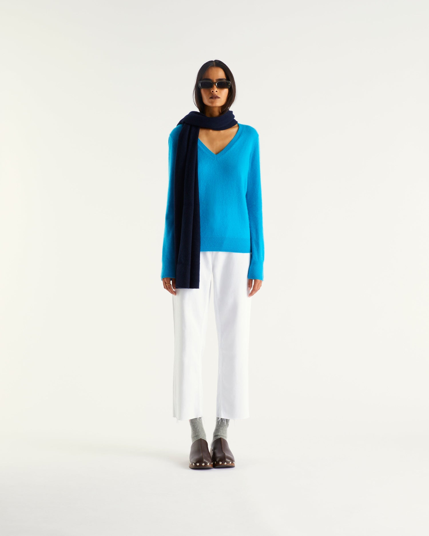 Pull Col V 2 Fils - 100% Cachemire - Sparkle blue