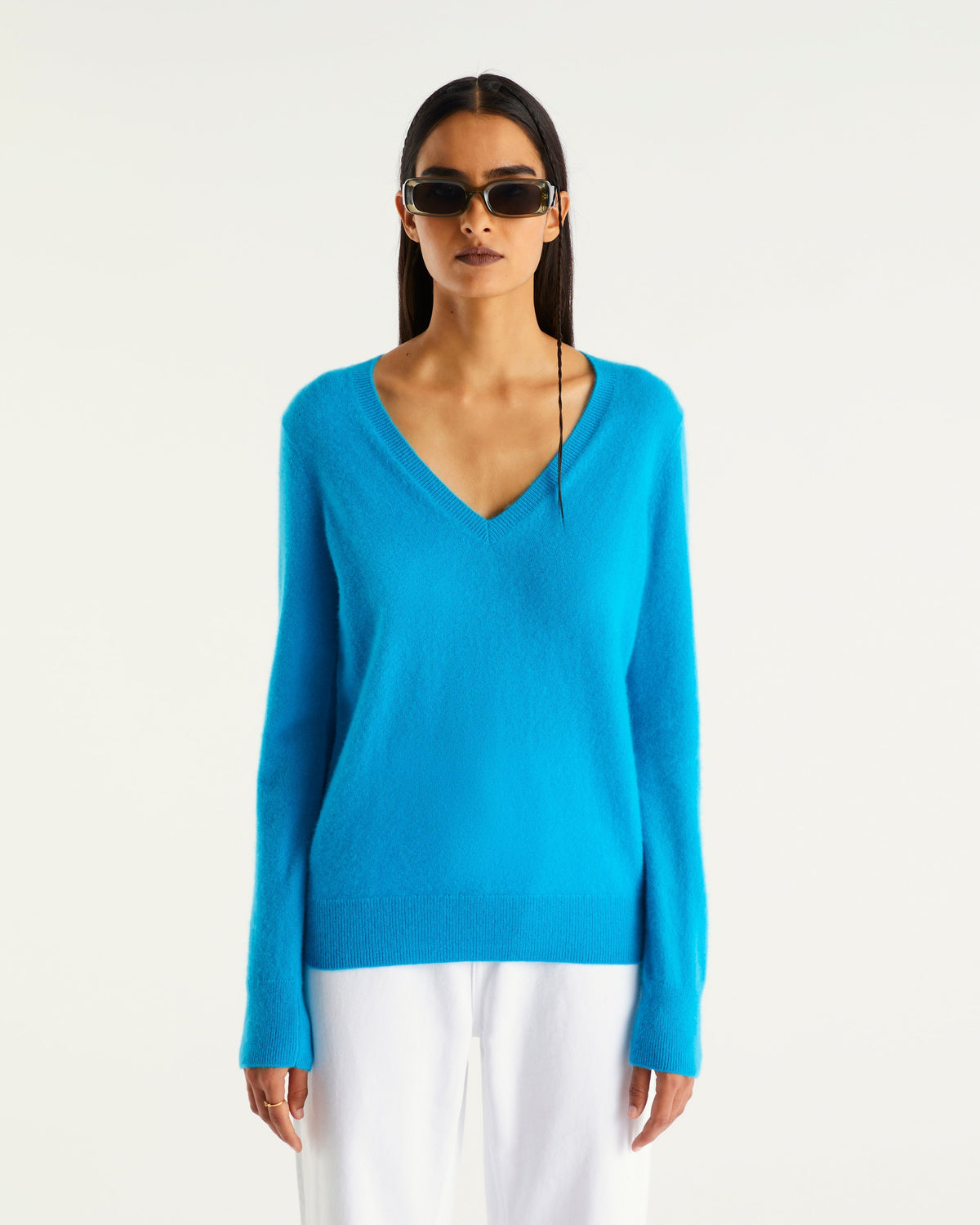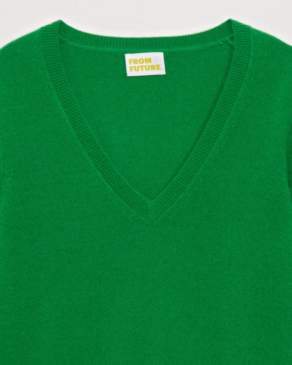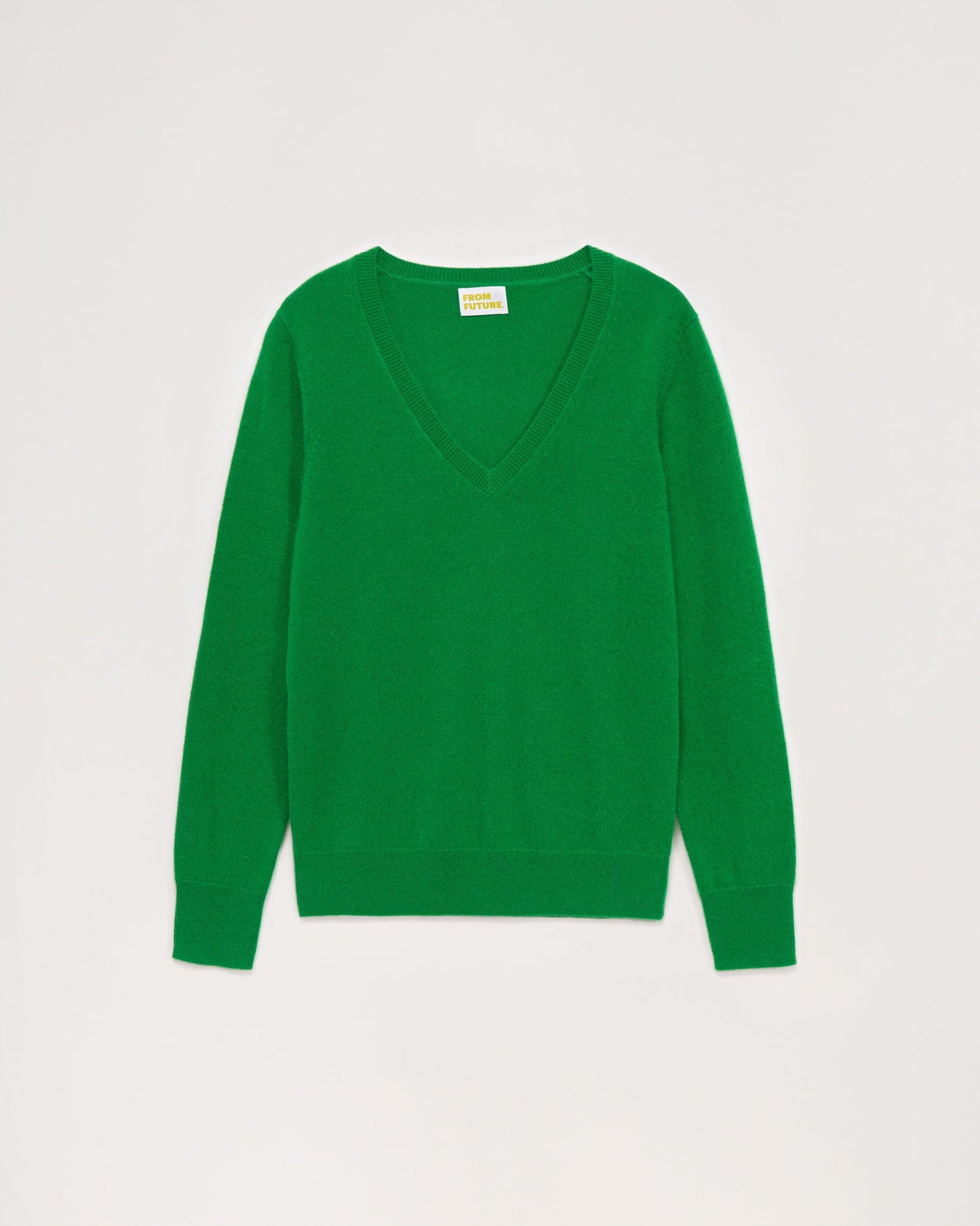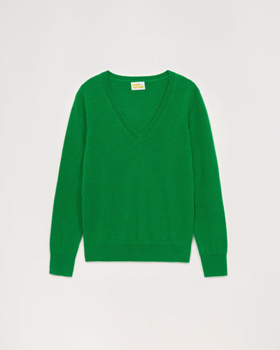 Pull Col V 2 Fils - 100% Cachemire - Vert gazon