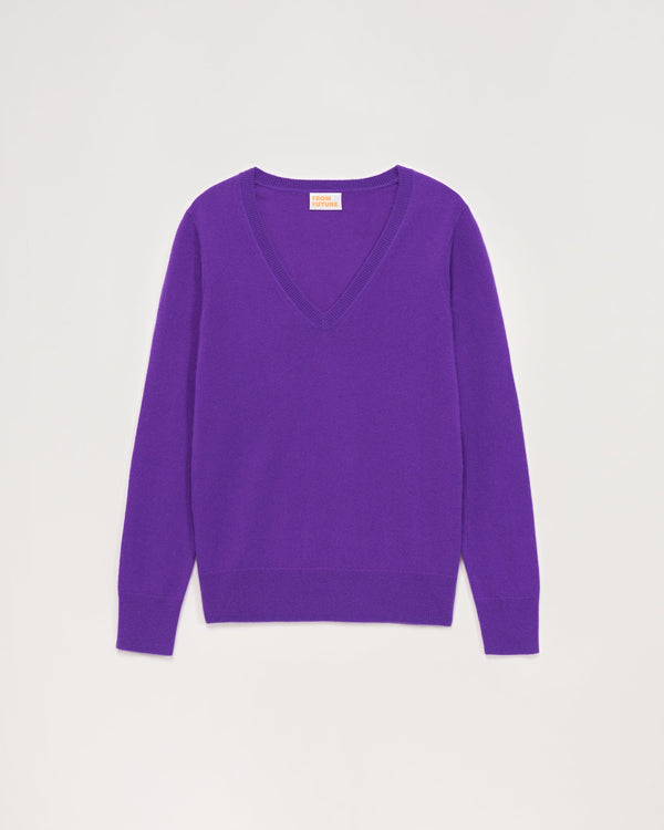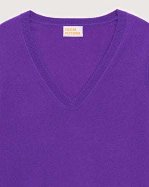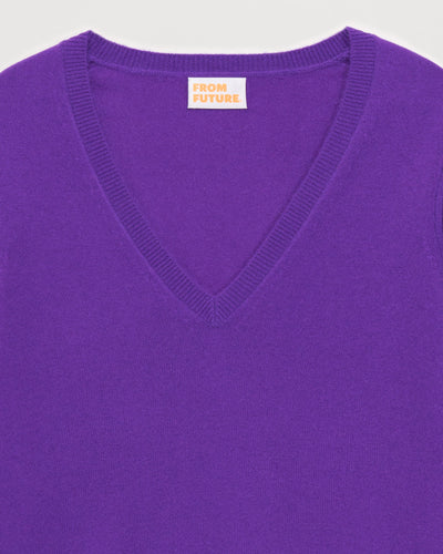 Pull Col V 2 Fils - 100% Cachemire - Violet fluo