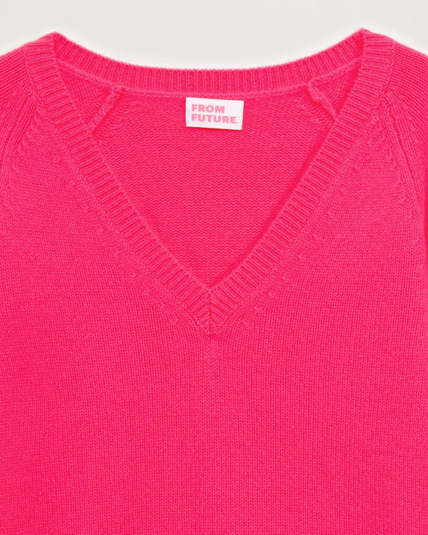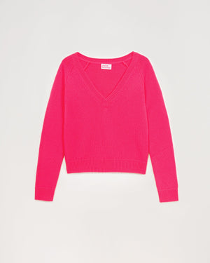 Pull Col V Court 6 Fils - 100% Cachemire - Winter fuschia