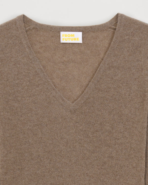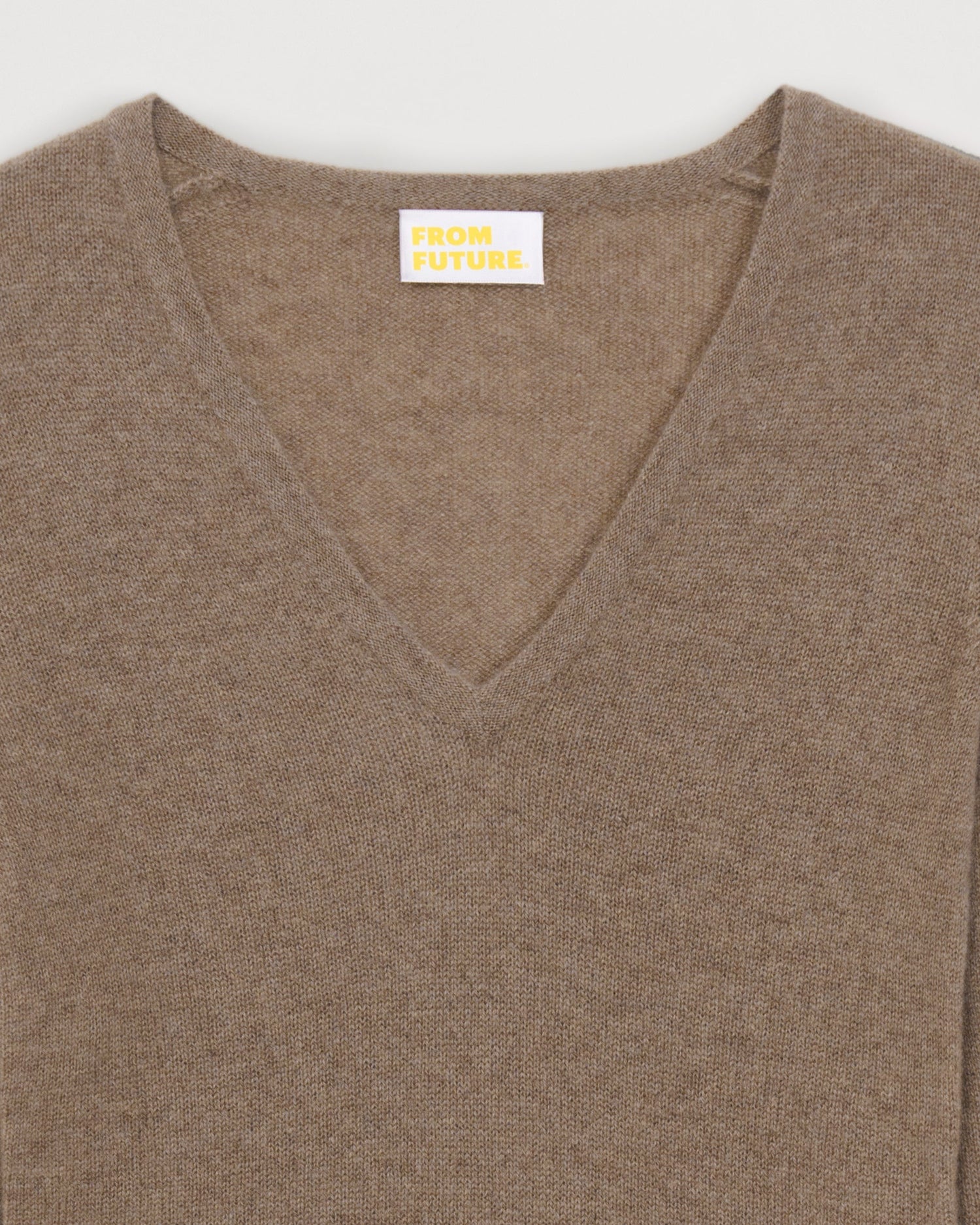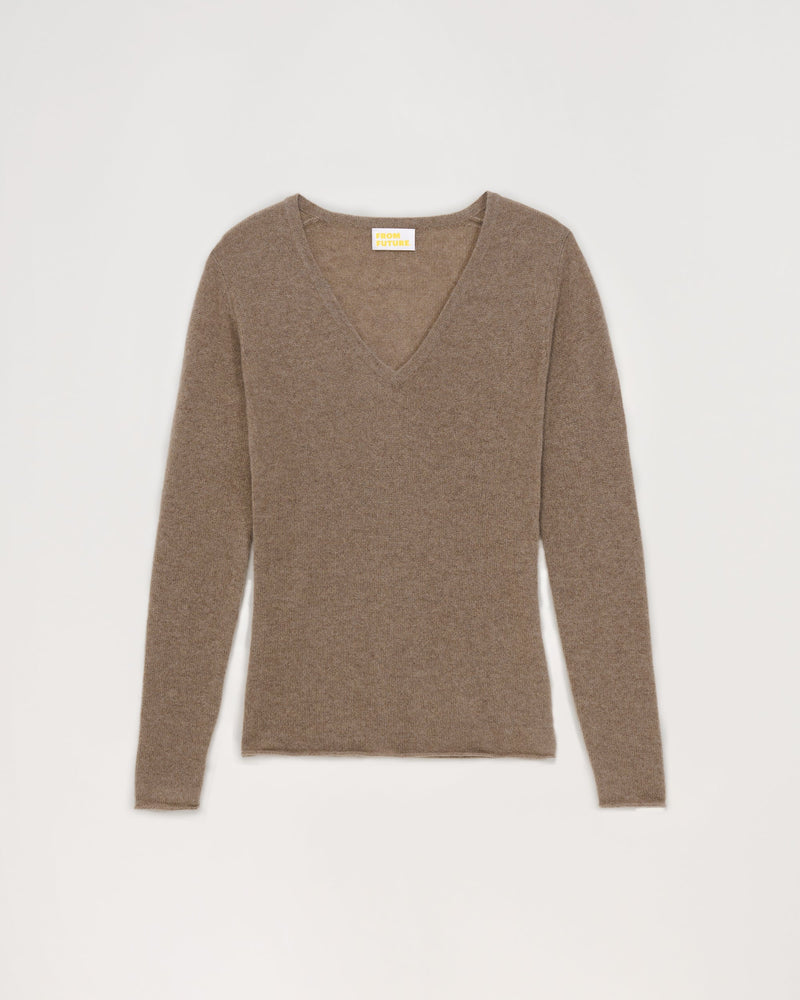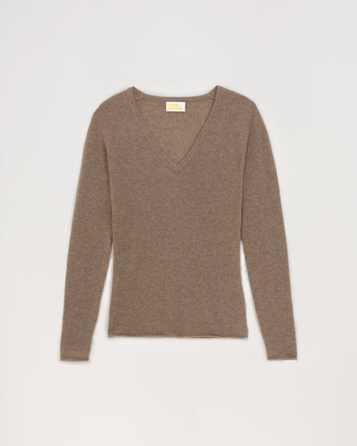 Pull Col V Slim Light - 100% Cachemire - Taupe