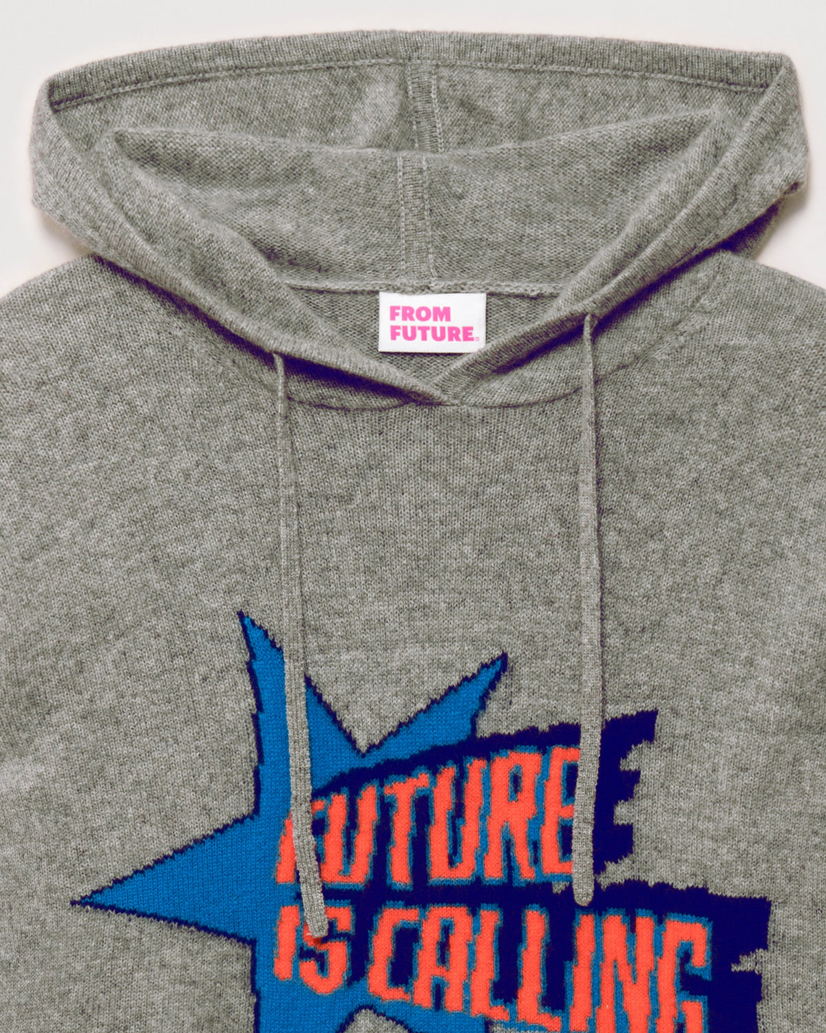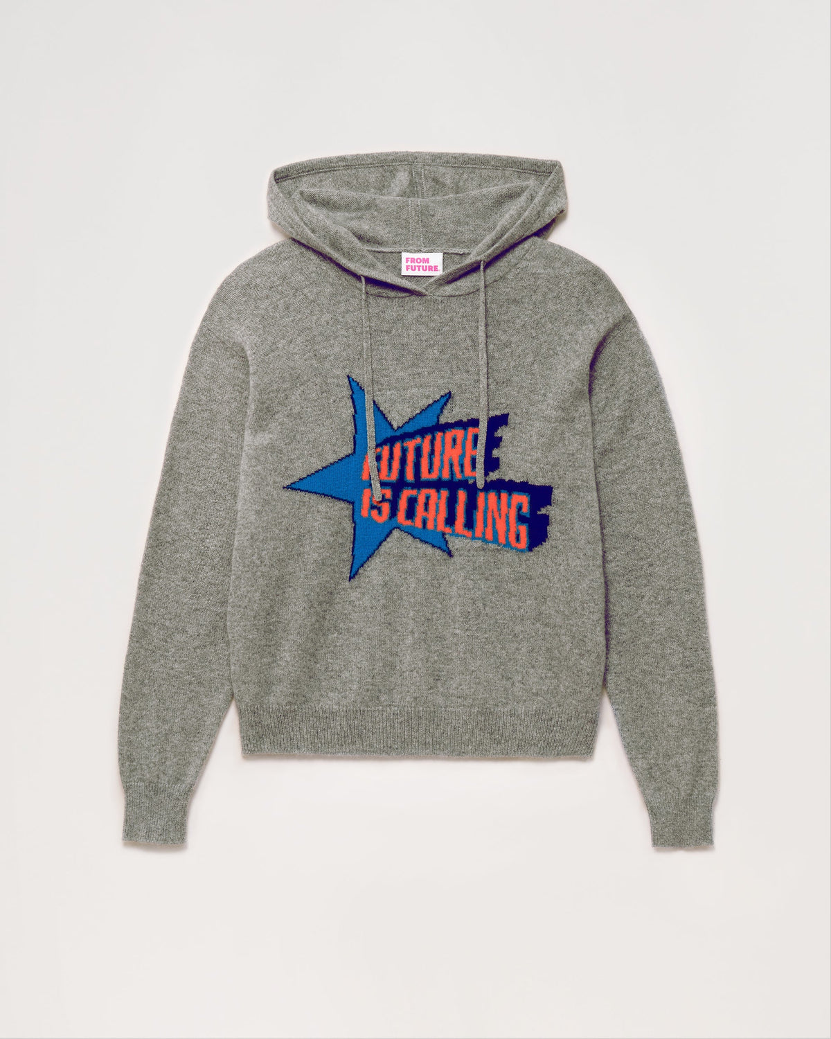 Hoodie Future Is Calling 2 Fils - 100% Cachemire - Gris chine fonc