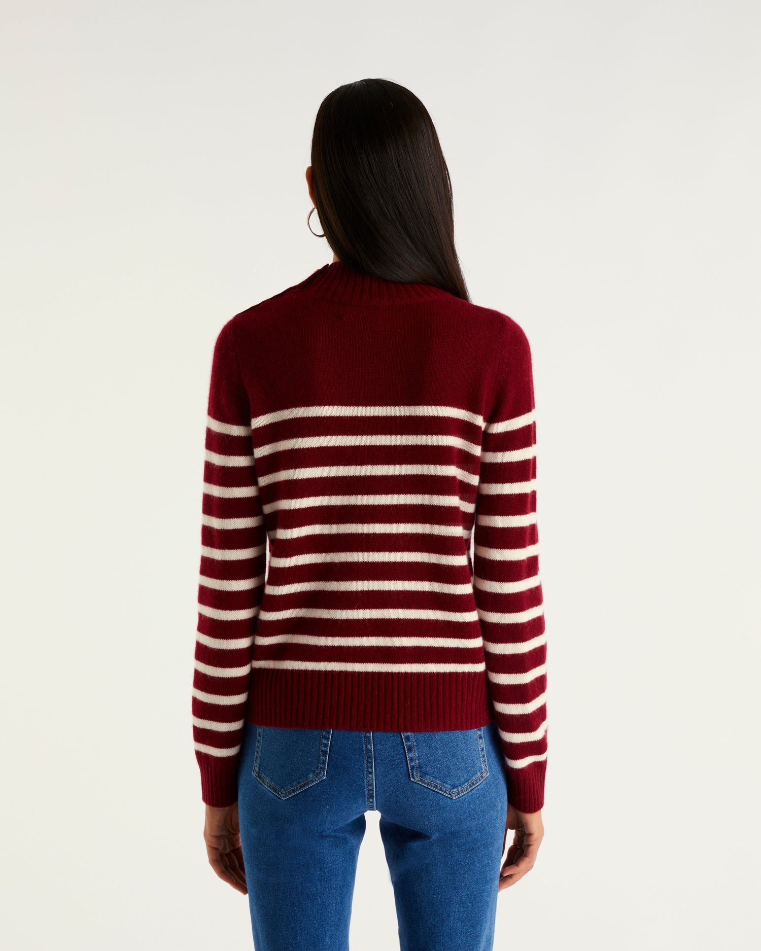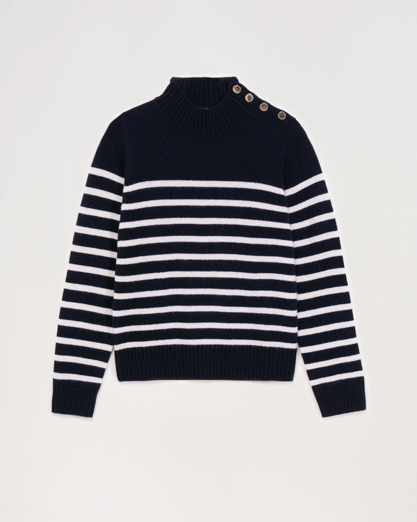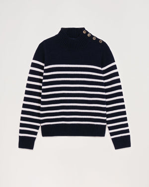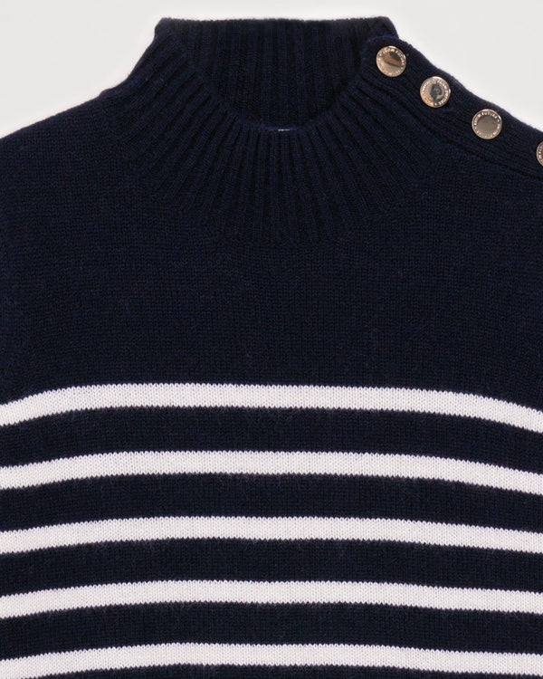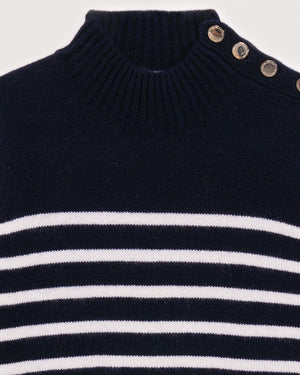 Pull Marinière Col Montant À Bouton 4 Fils - 100% Cachemire - Navy