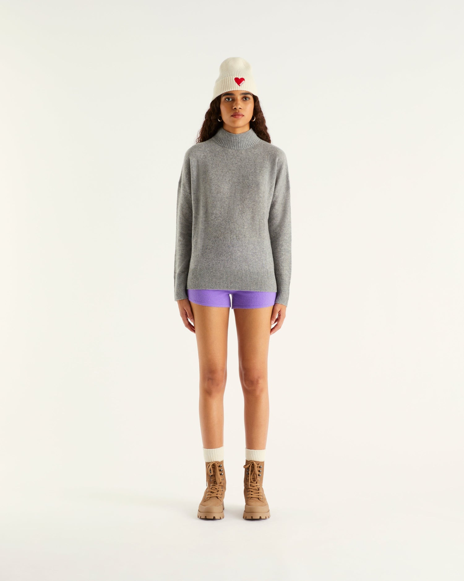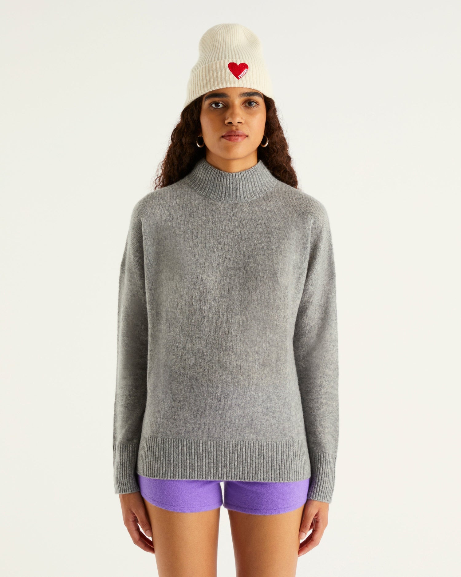 Pull Col Montant Oversize Light - 100% Cachemire - Gris chine fonc