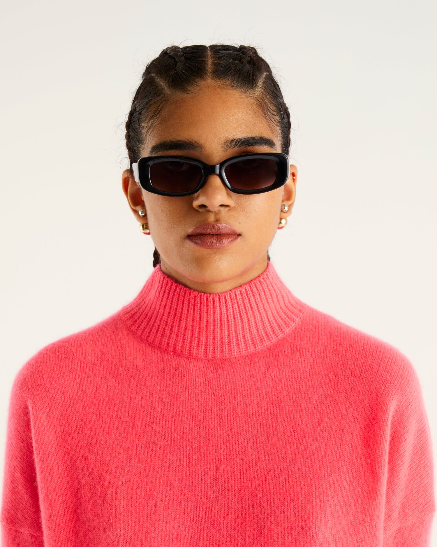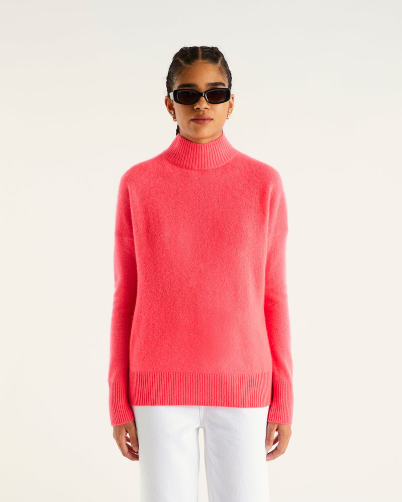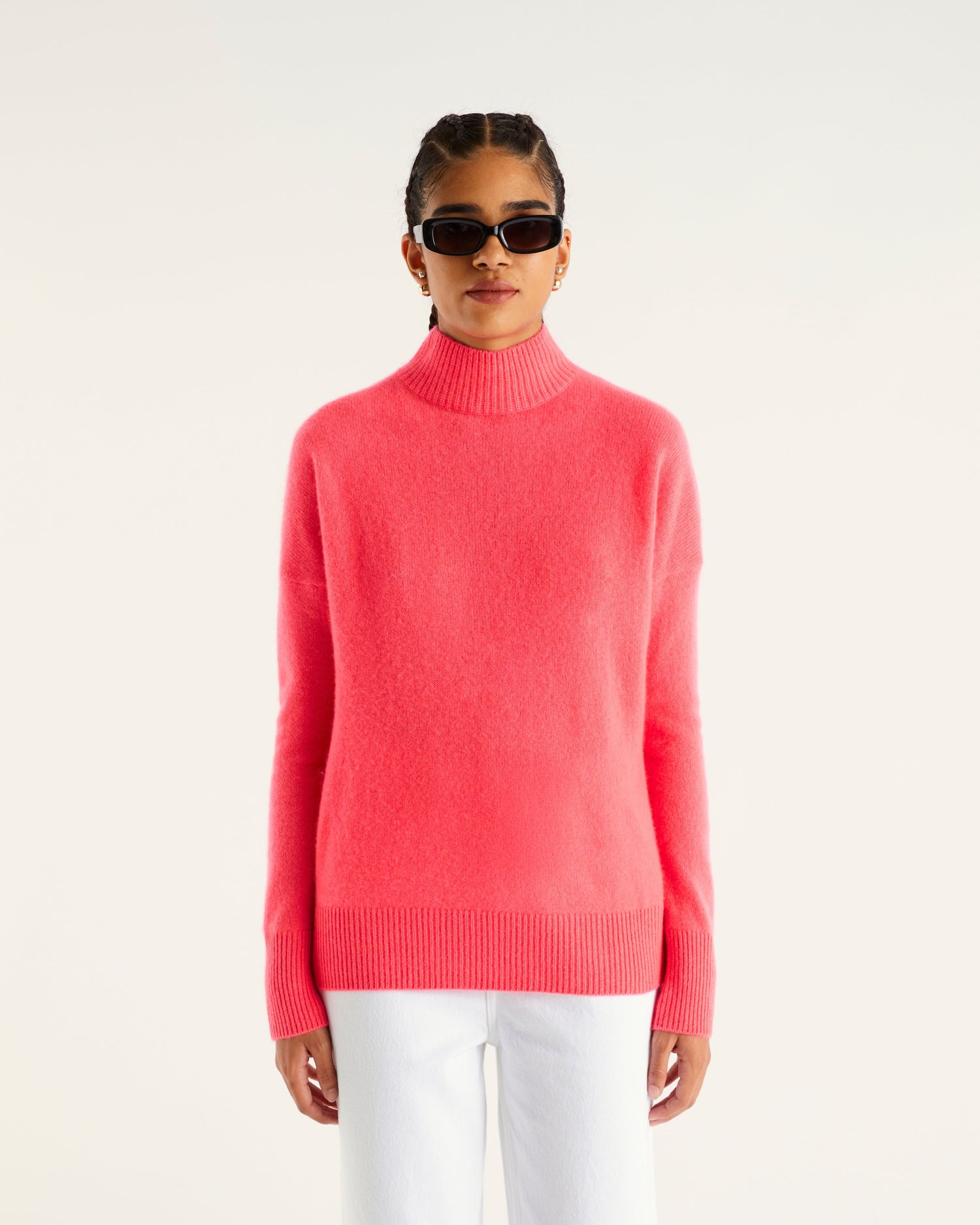Pull Col Montant Oversize Light - 100% Cachemire - Neon pink