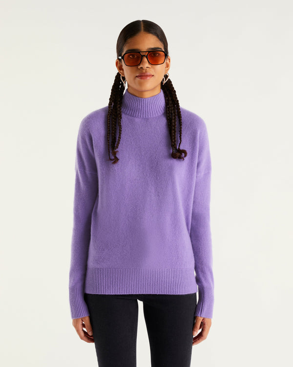 Pull Col Montant Oversize Light - 100% Cachemire - Power lilac
