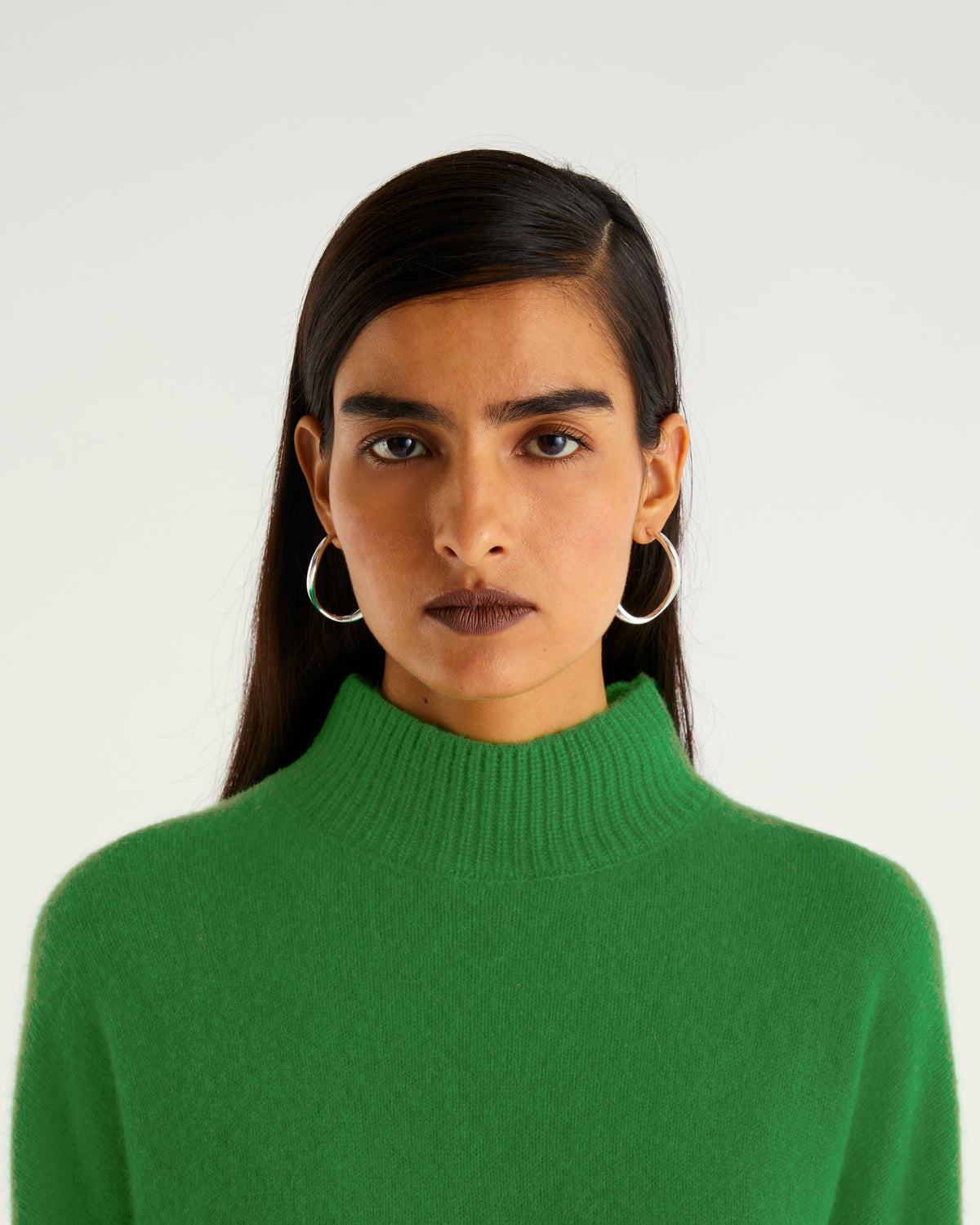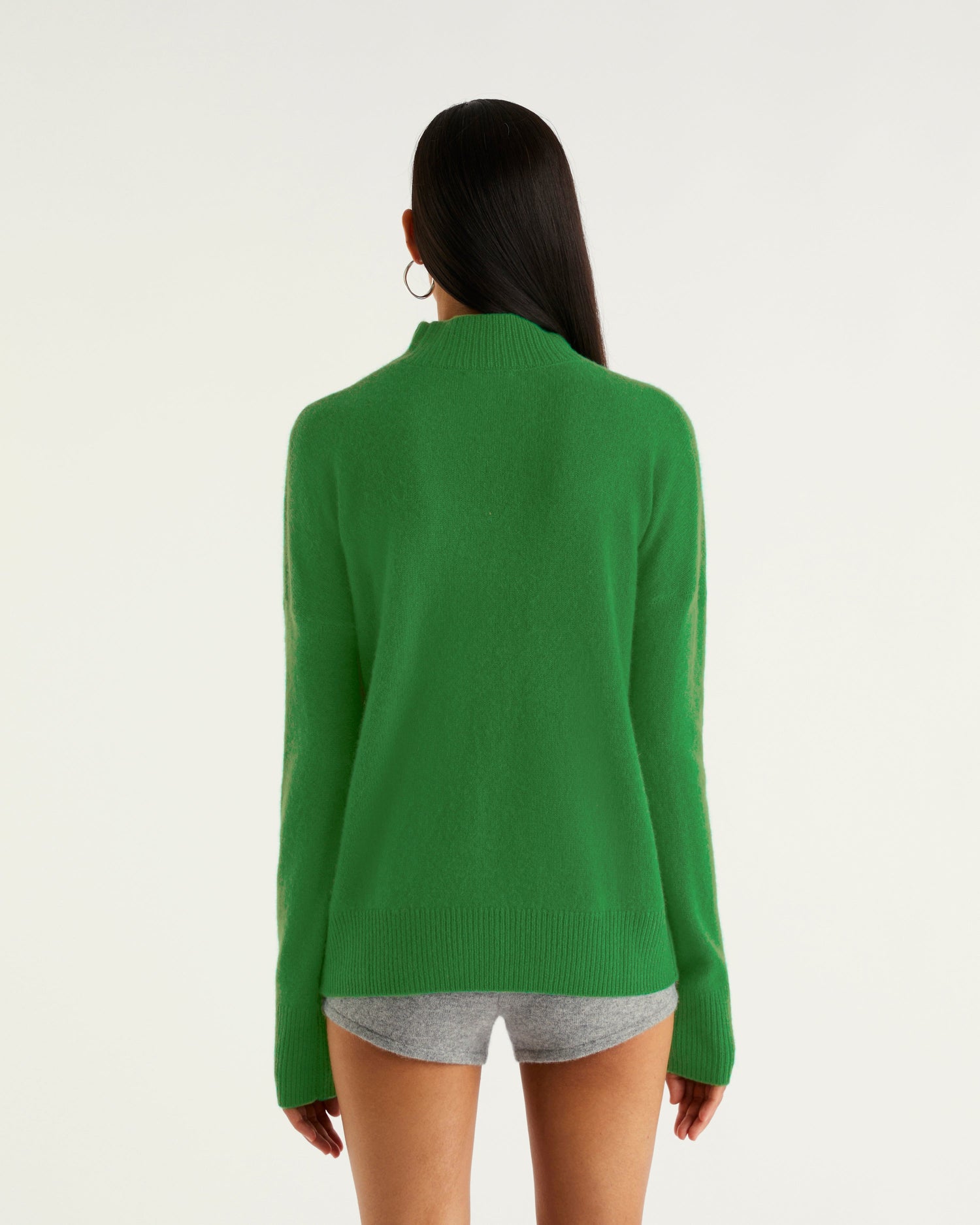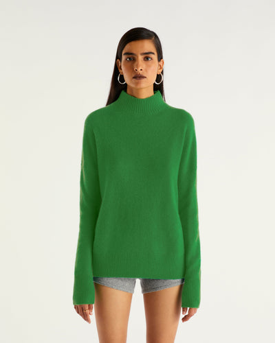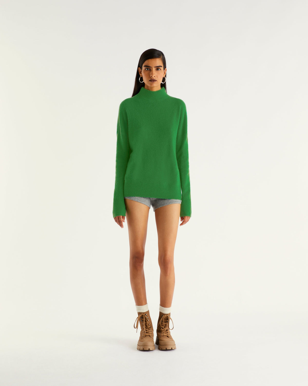 Pull Col Montant Oversize Light - 100% Cachemire - Vert gazon