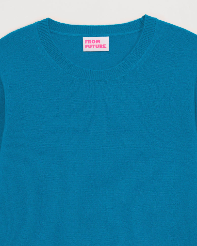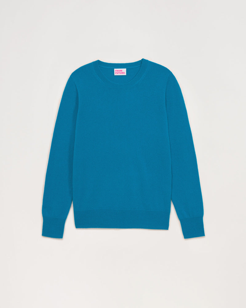Pull Col Rond 2 Fils - 100% Cachemire - Power blue