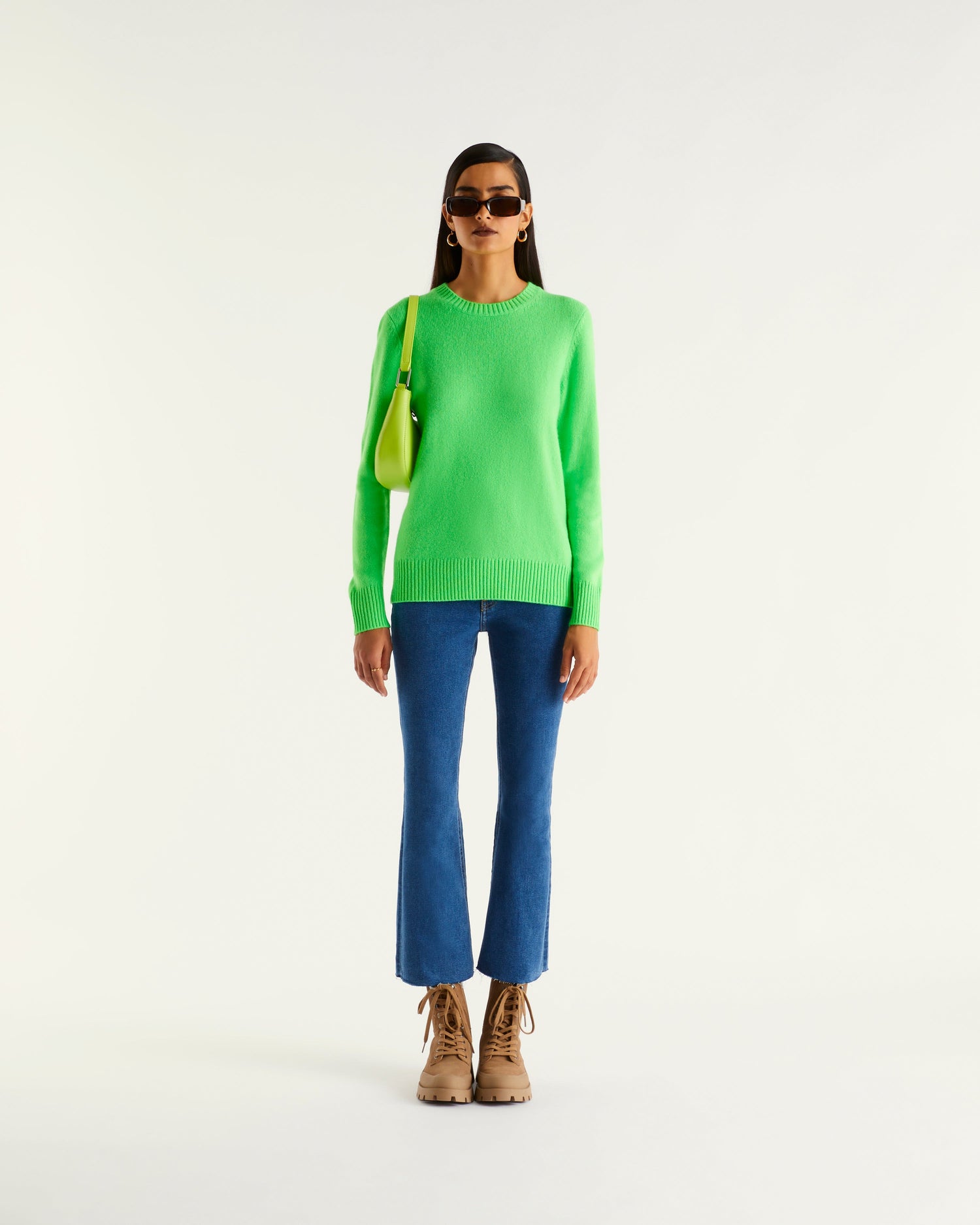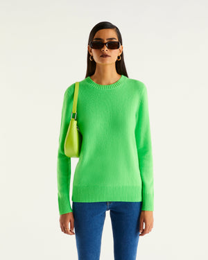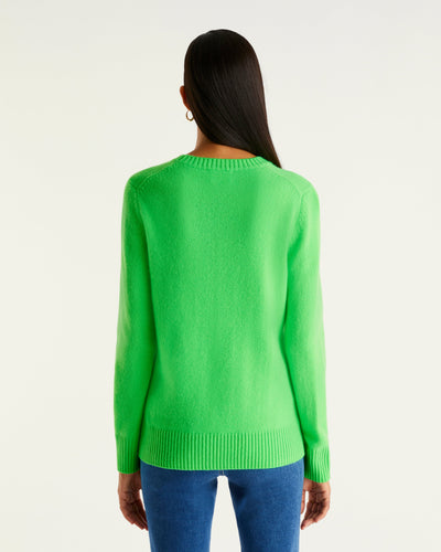 Pull Col Rond 4 Fils - 100% Cachemire - Vert fluo