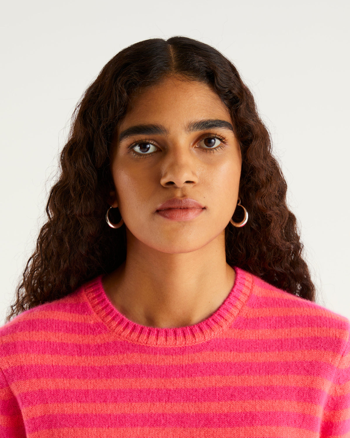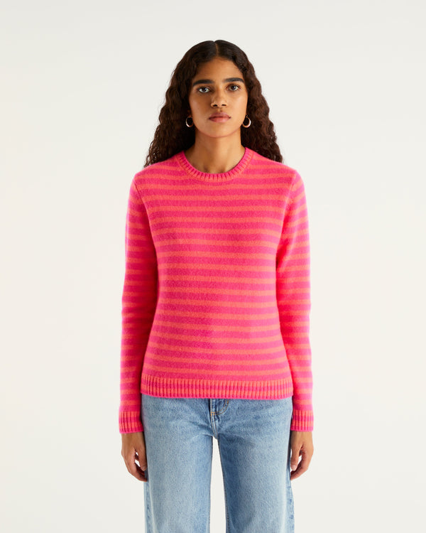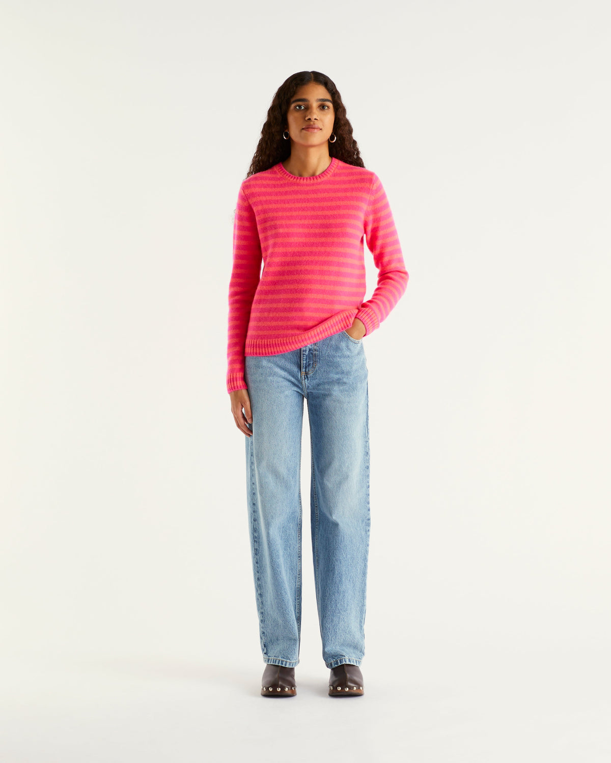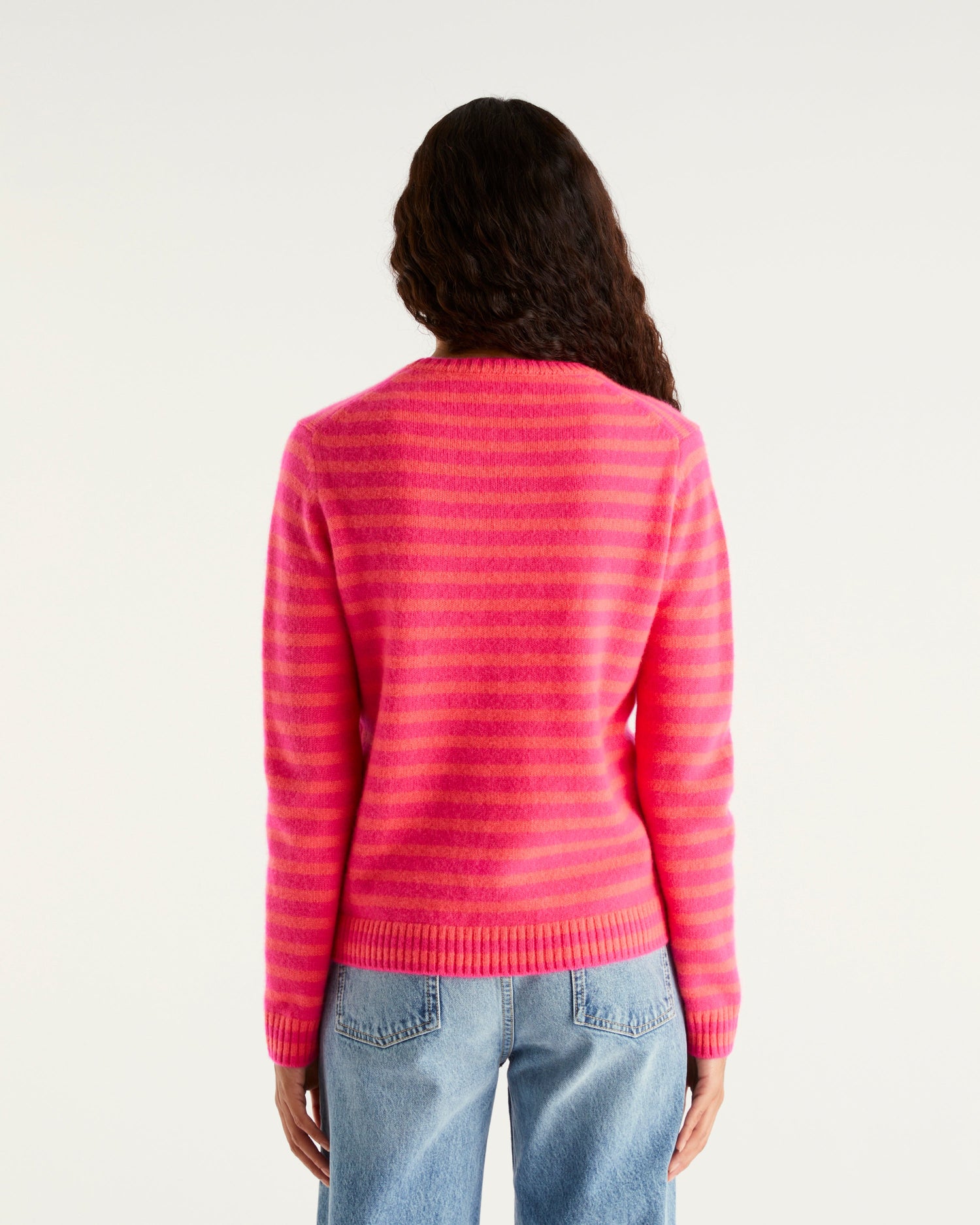Pull Col Rond À Rayures 4 Fils - 100% Cachemire - Winter fuschia