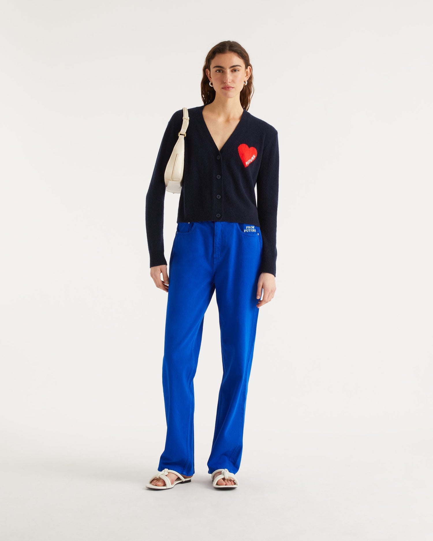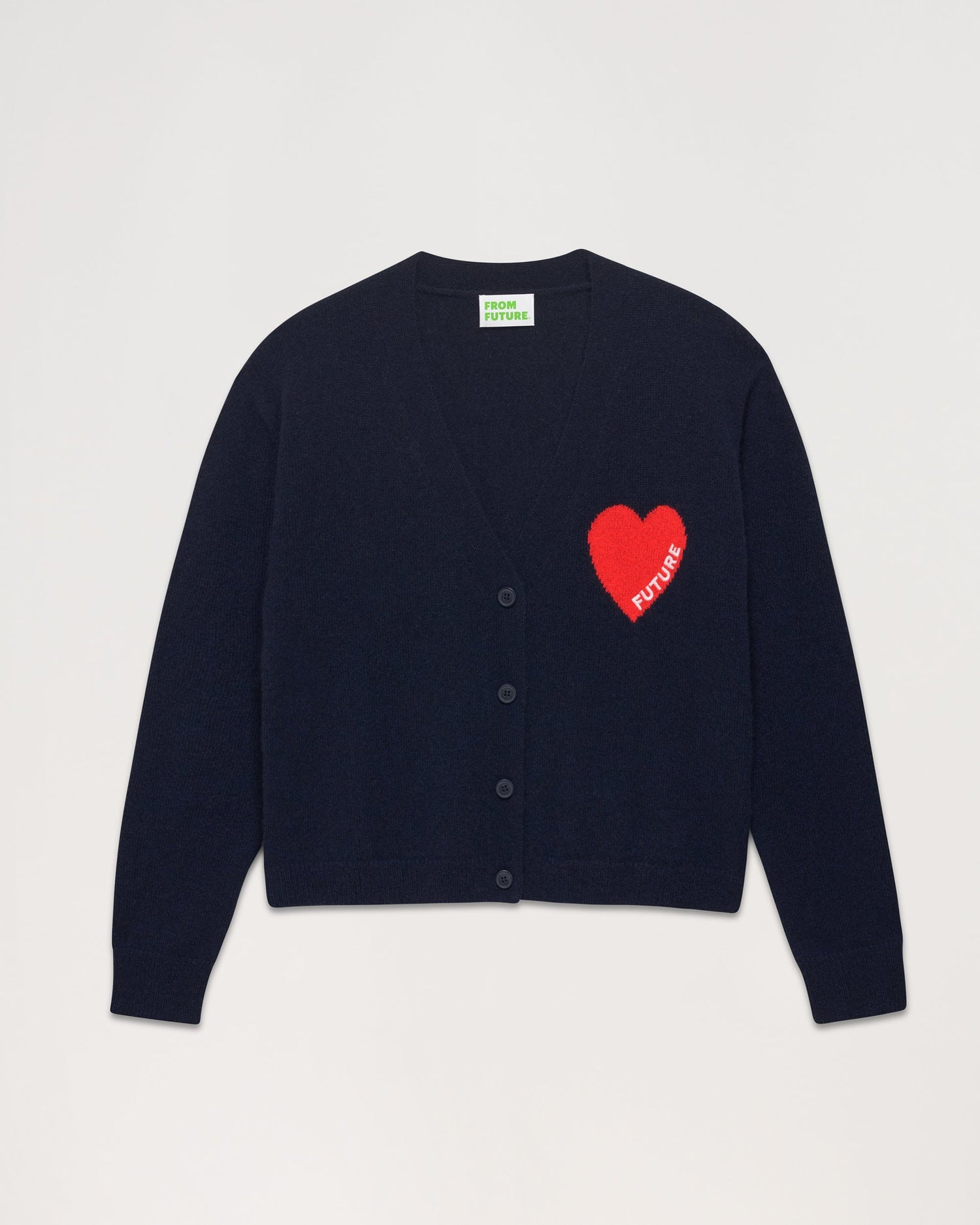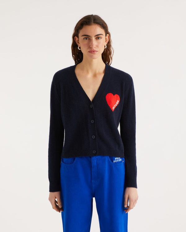 Pull Cardigan Coeur Broderie Future - Cachemire - Navy