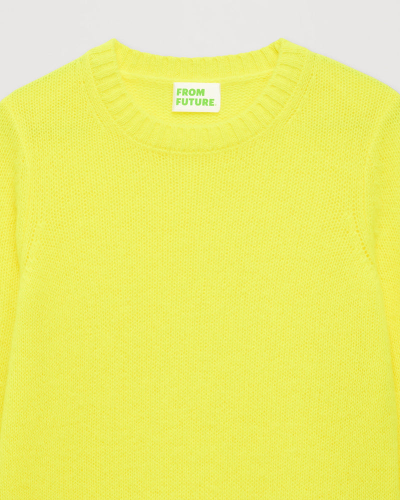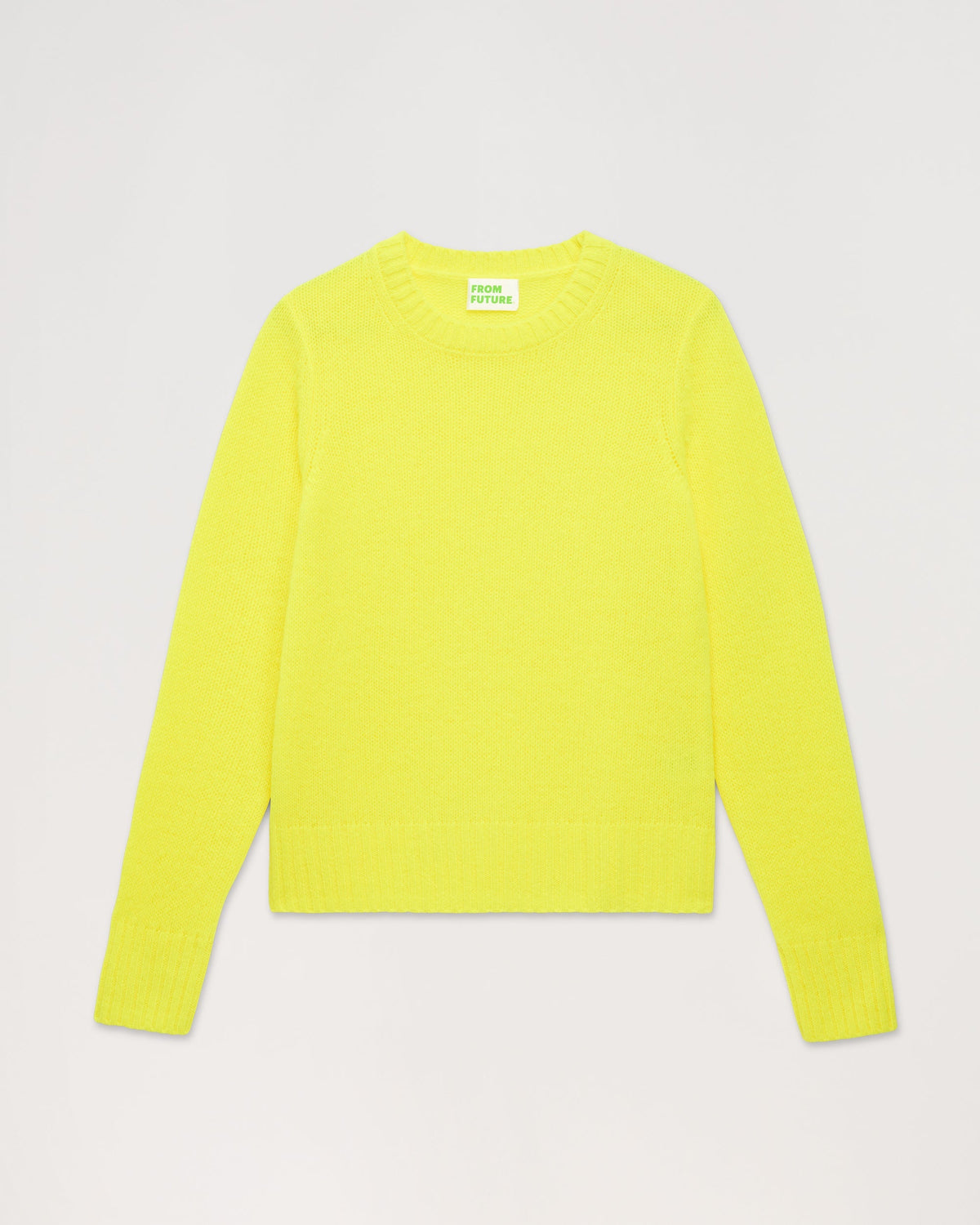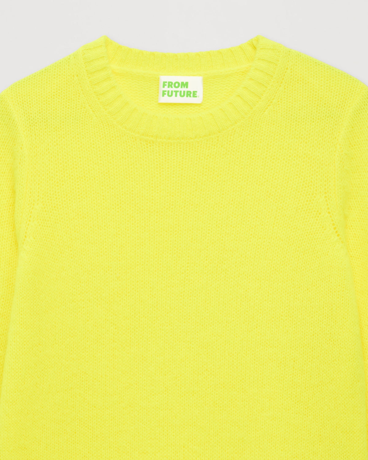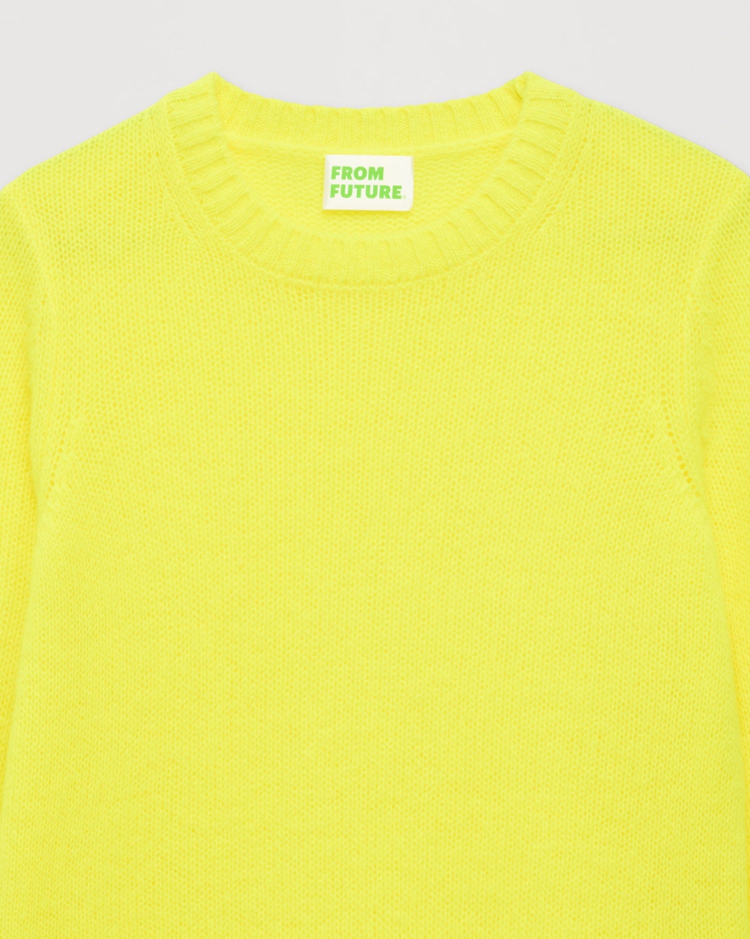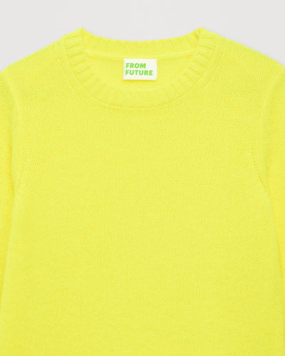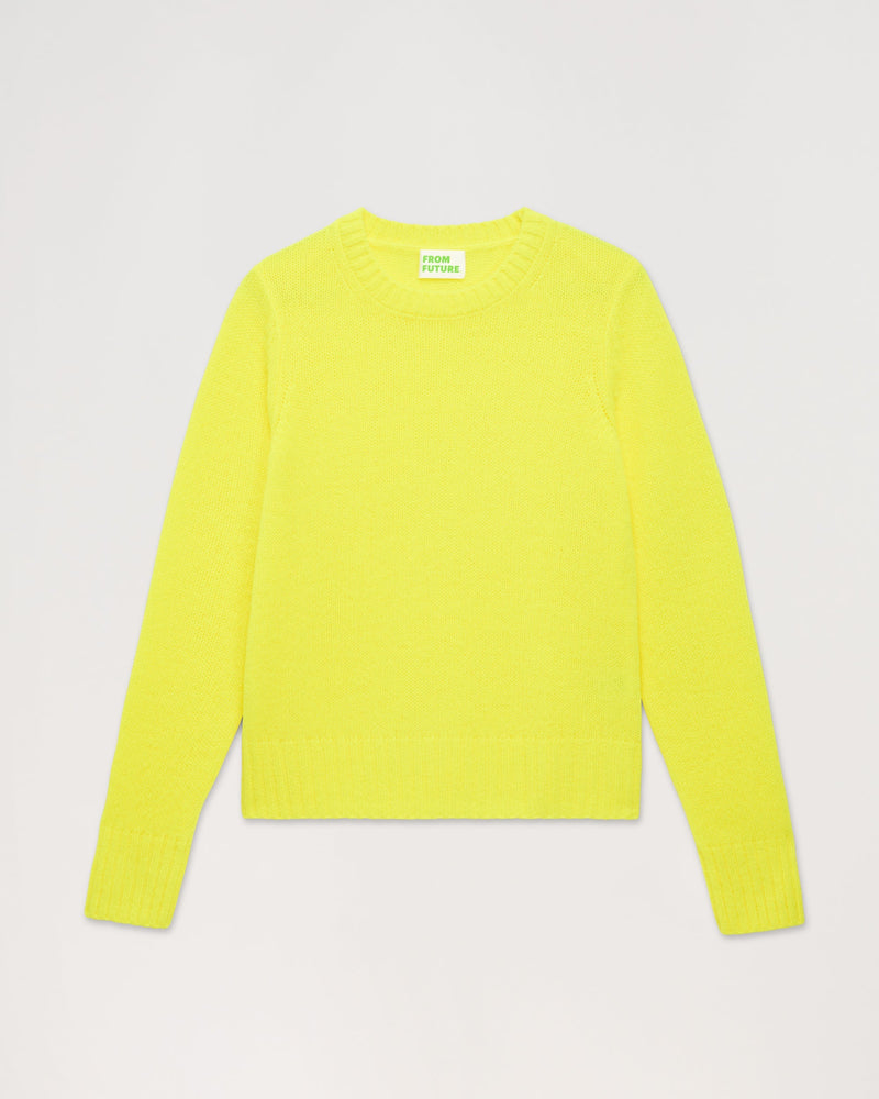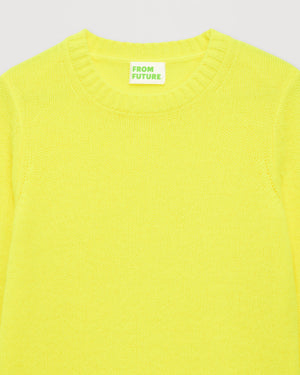 Pull Pull Col Rond Court - Cachemire - Jaune fluo
