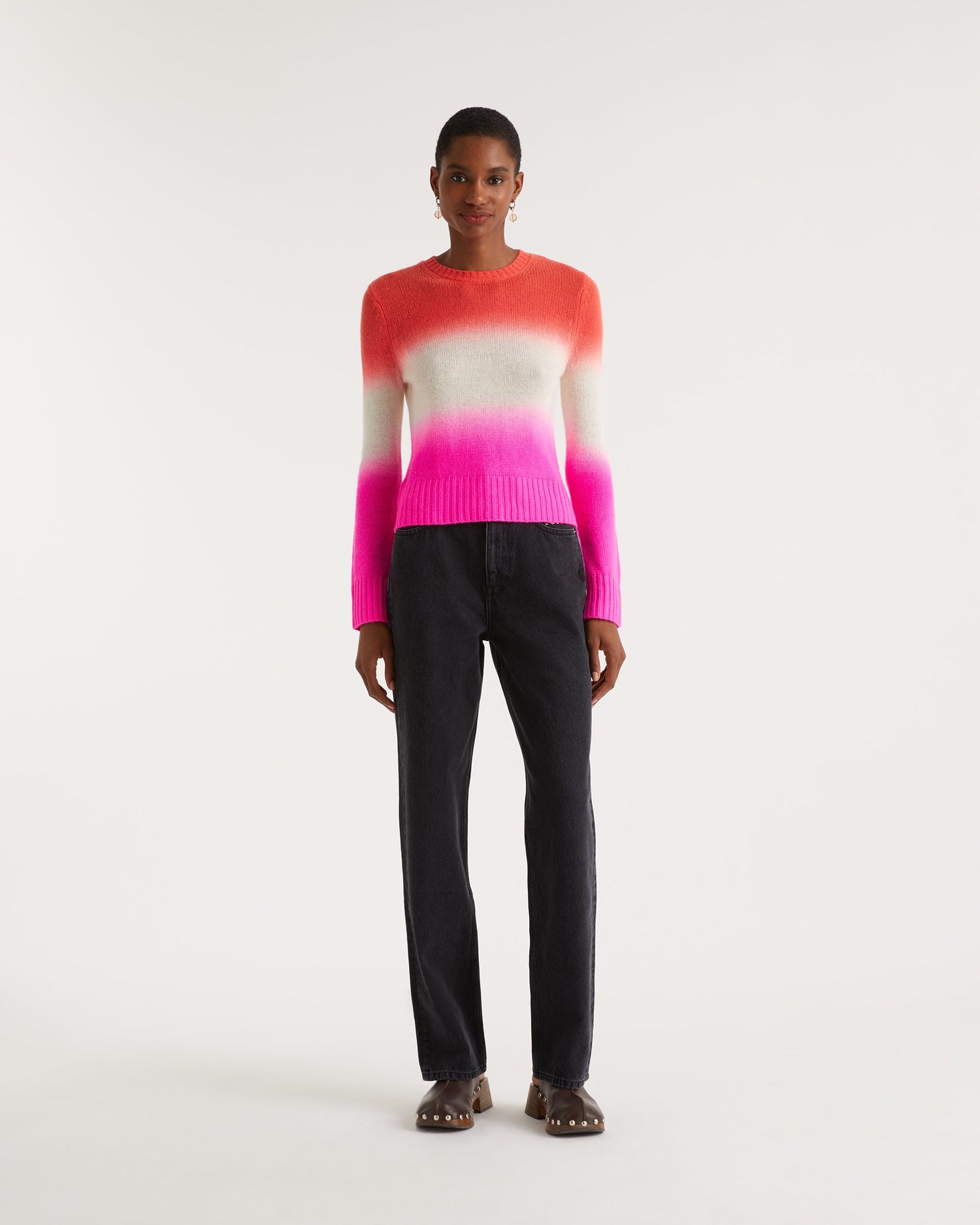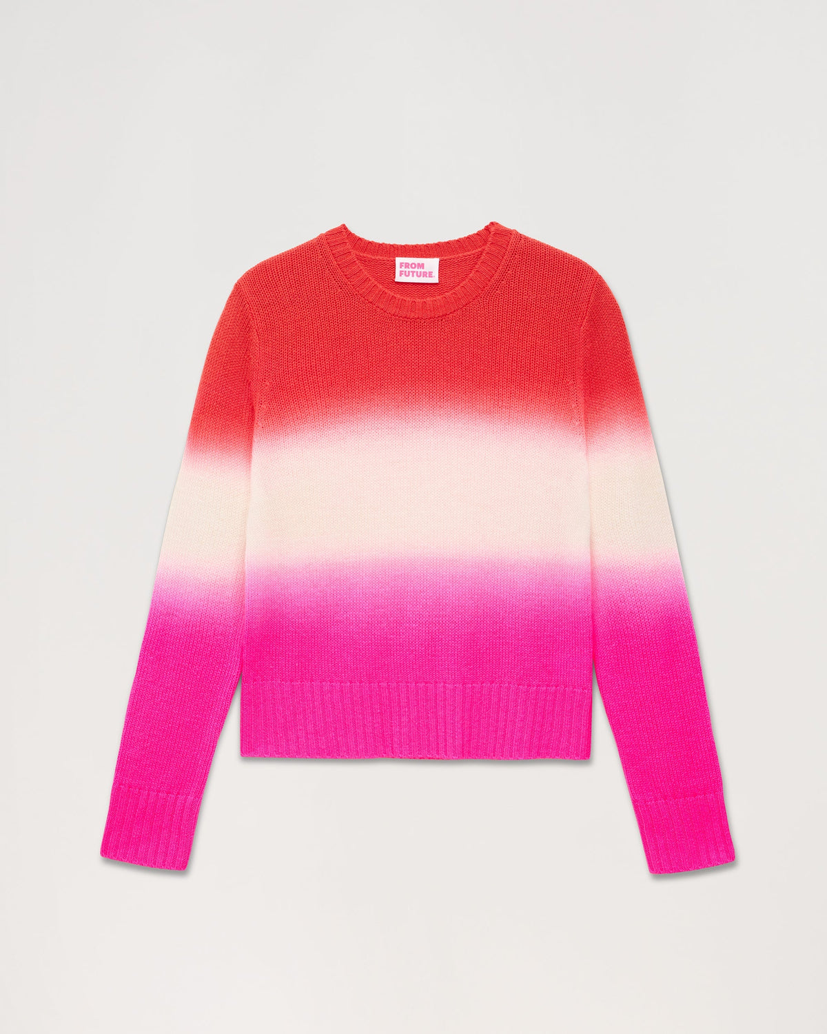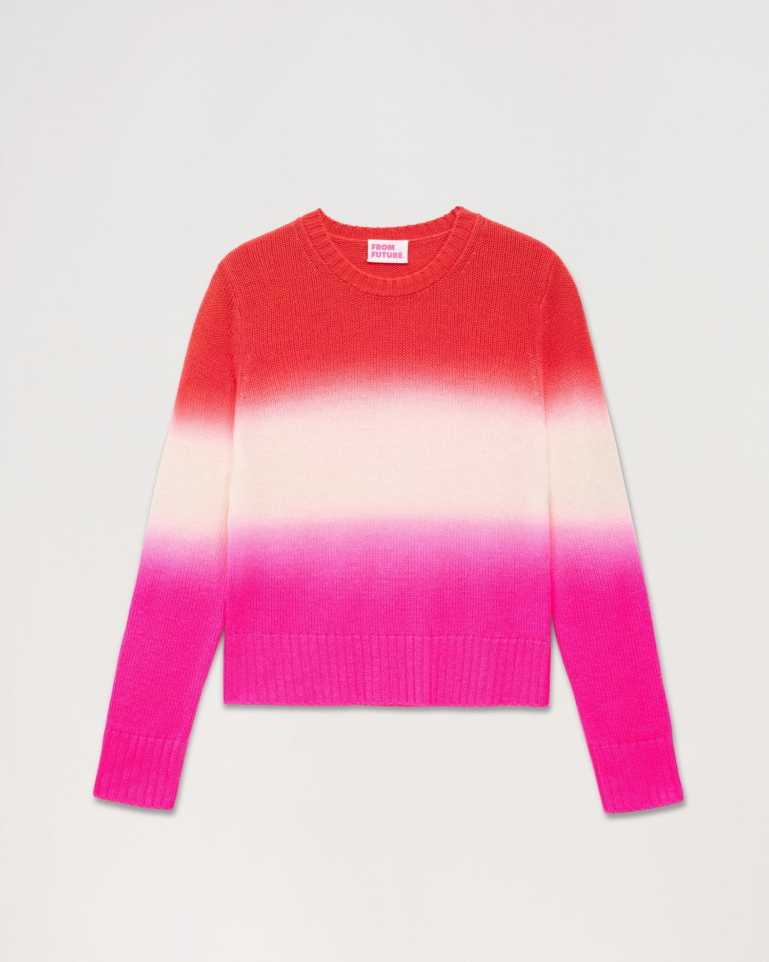 Pull Pull Col Rond Dip Dye Tricolore Allege - Cachemire - Dd rouge fuschi