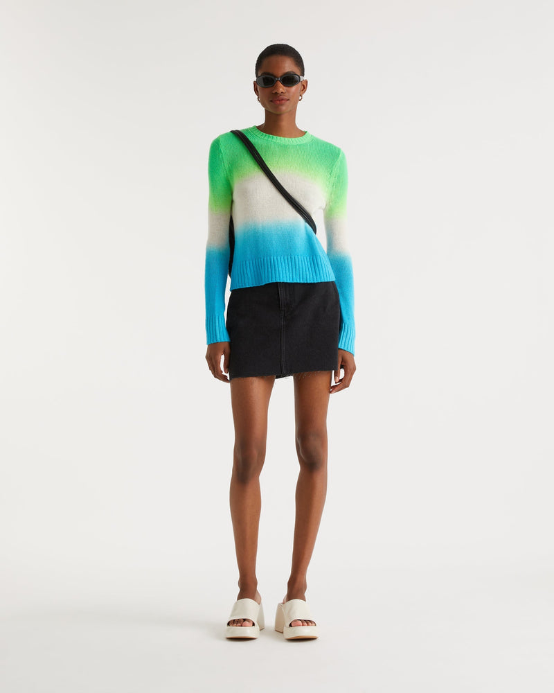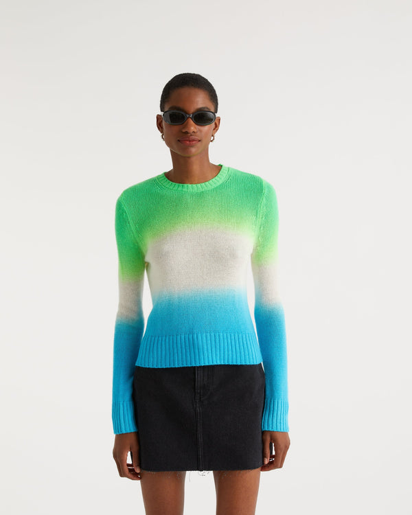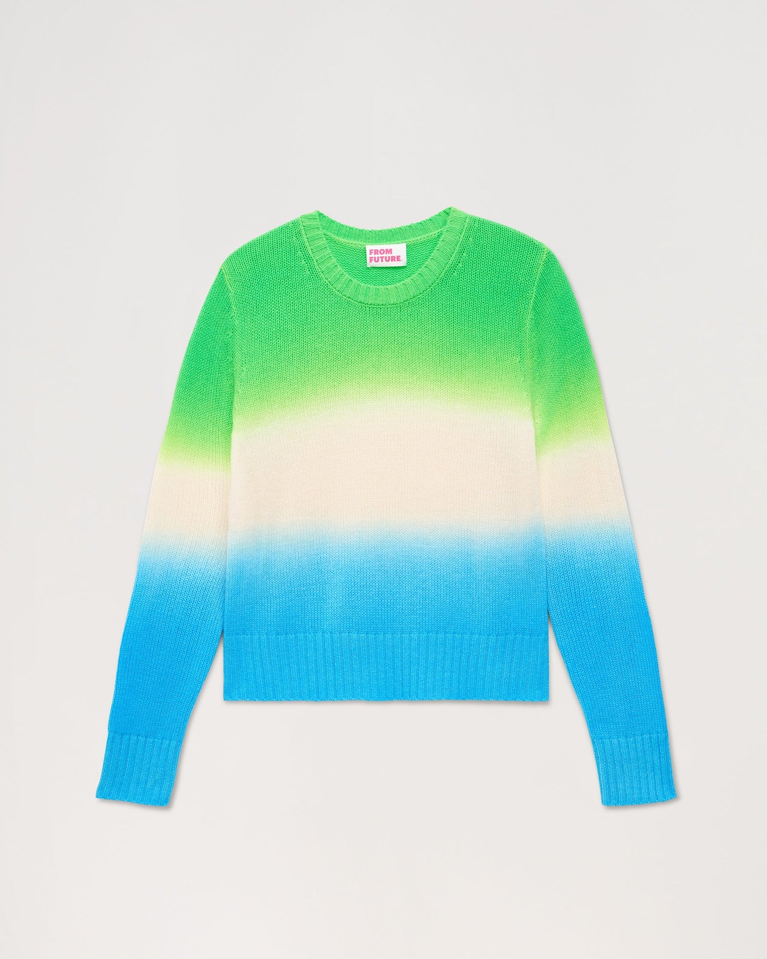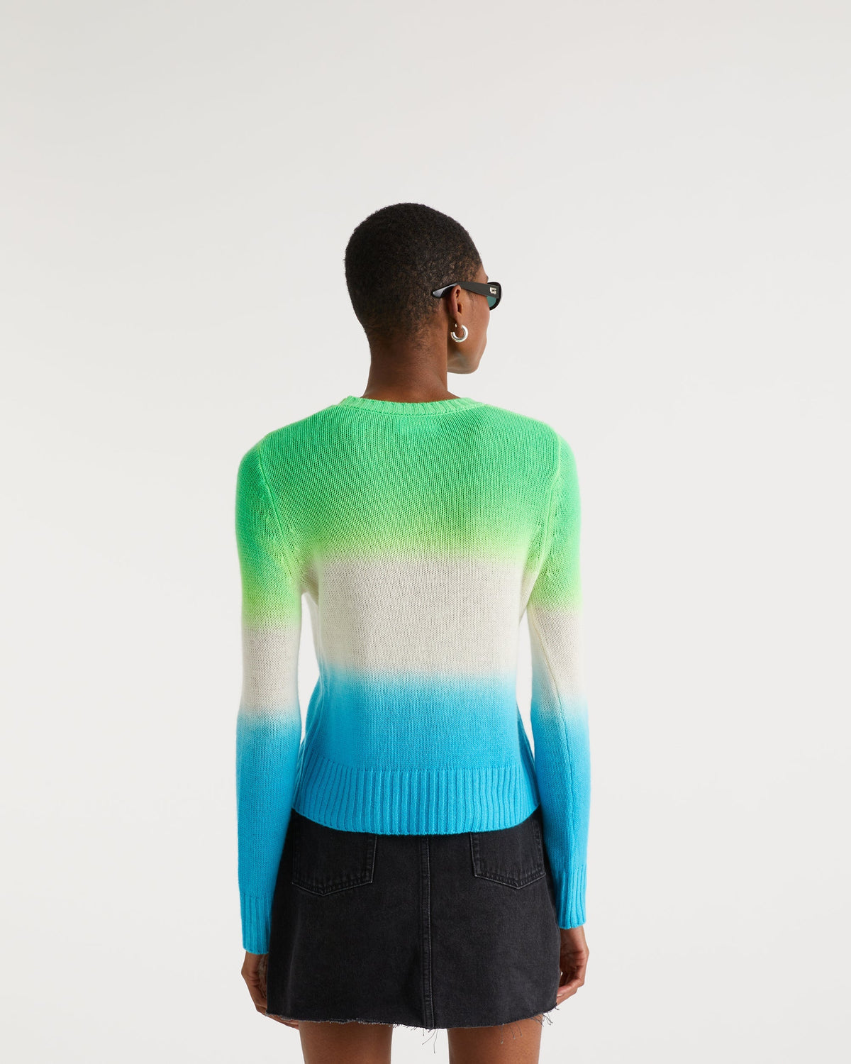 Pull Pull Col Rond Dip Dye Tricolore Allege - Cachemire - Dd vert bleu