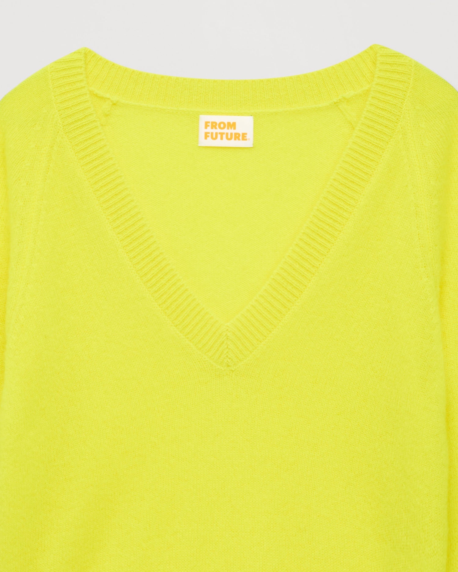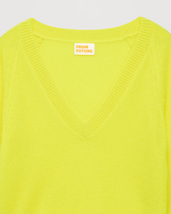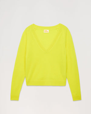 Pull Pull Col V Manches Raglan Light - Cachemire - Jaune fluo
