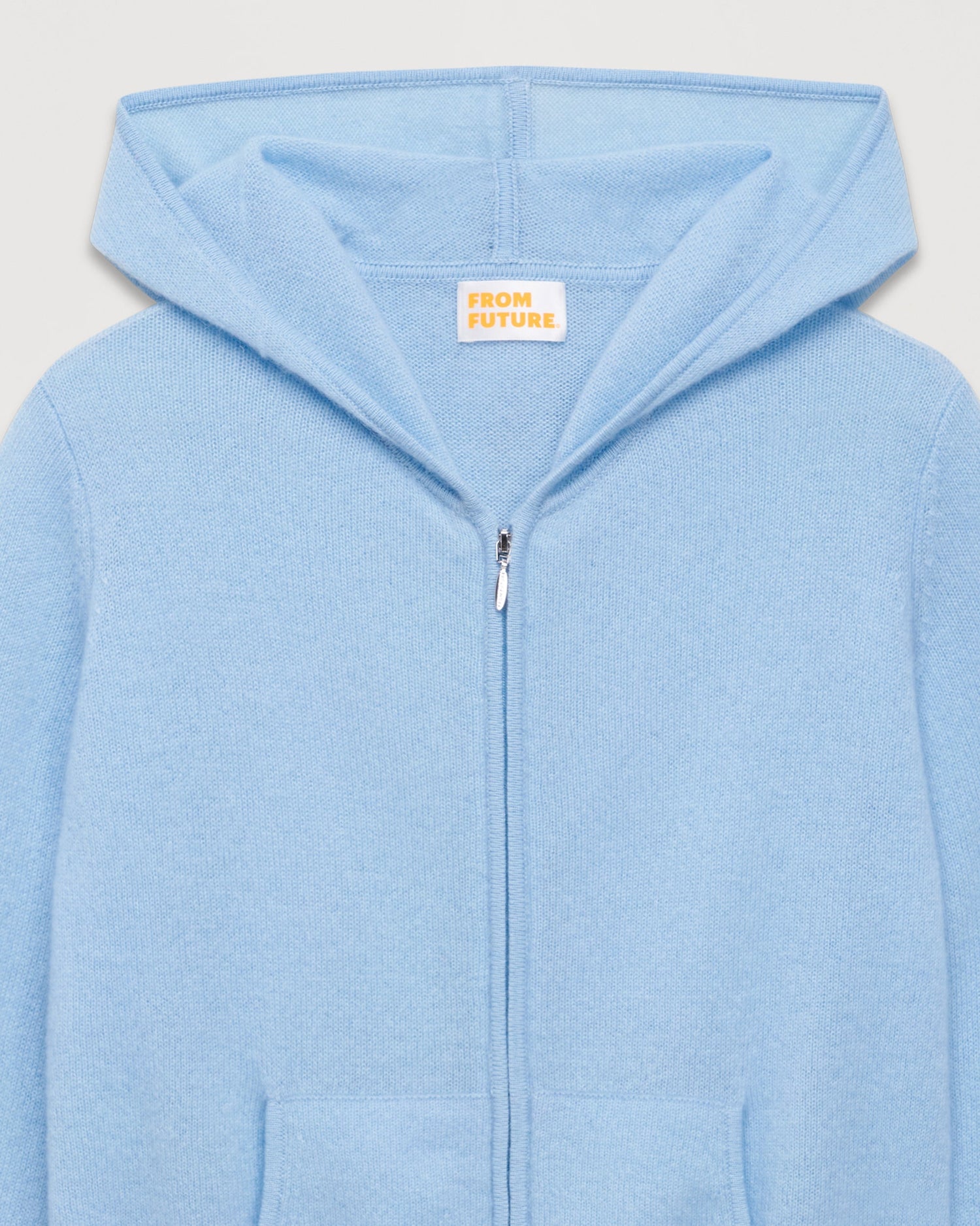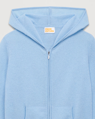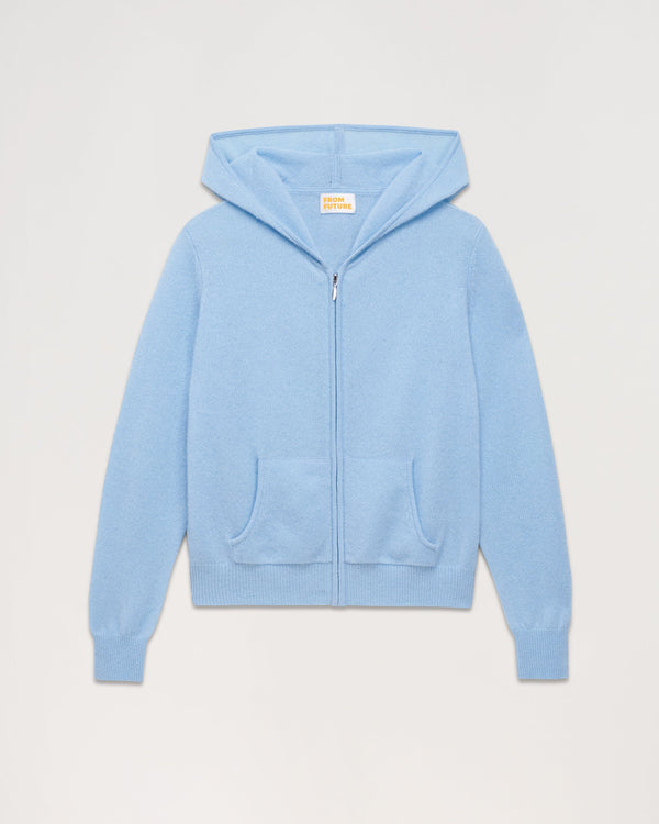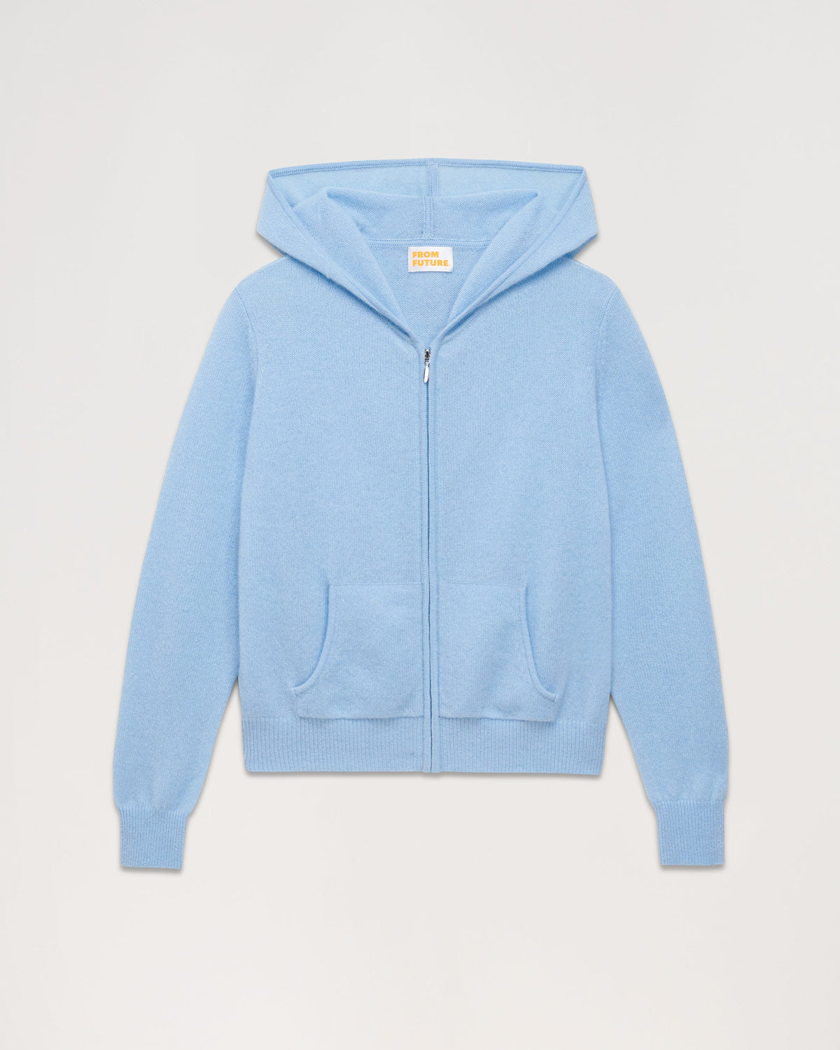 Pull Hoodie Court Zippe Uni - Cachemire - Paradise blue