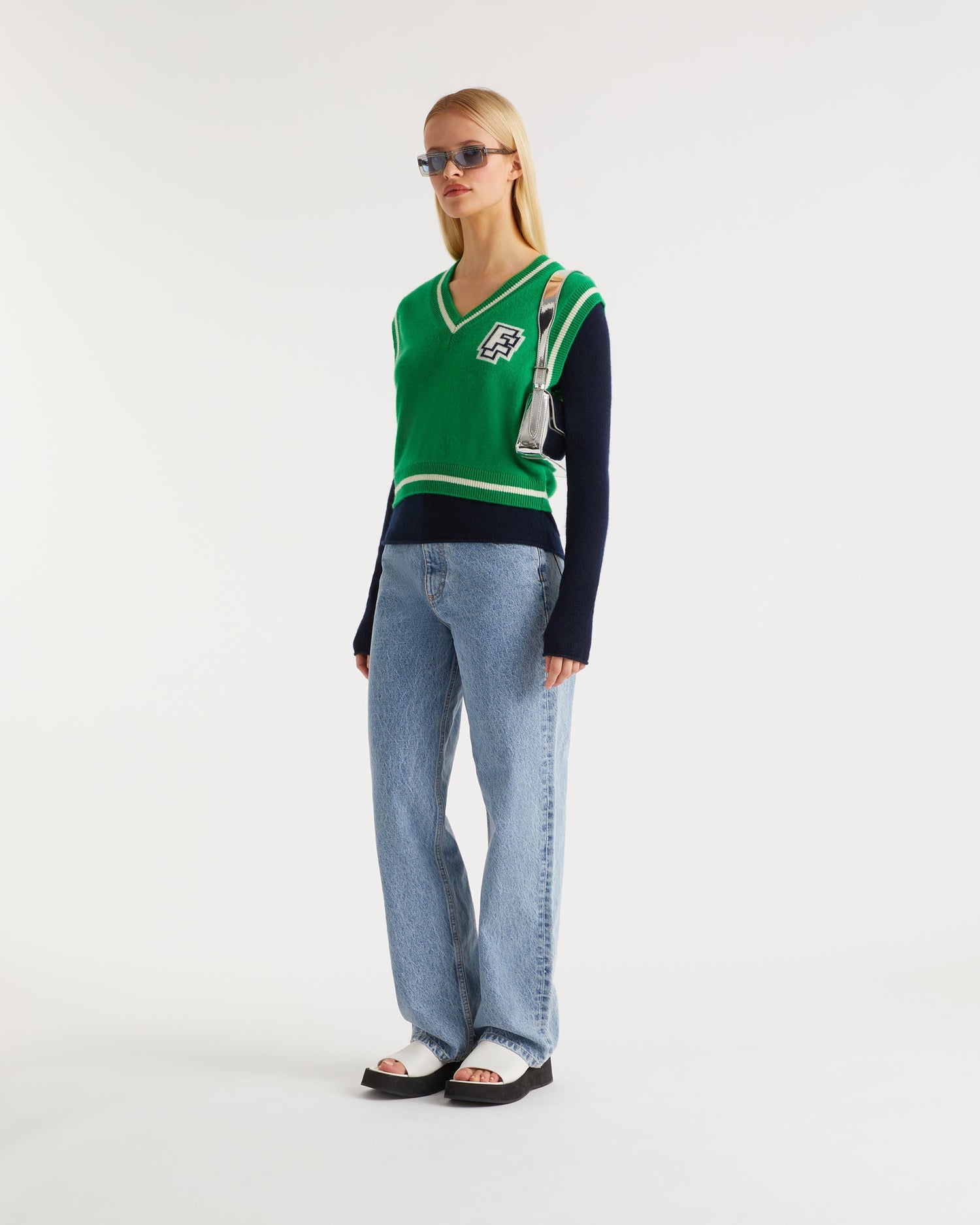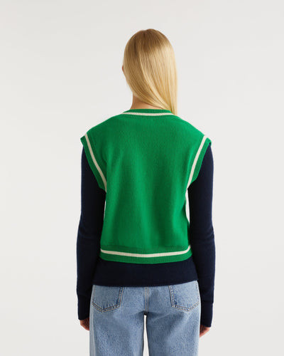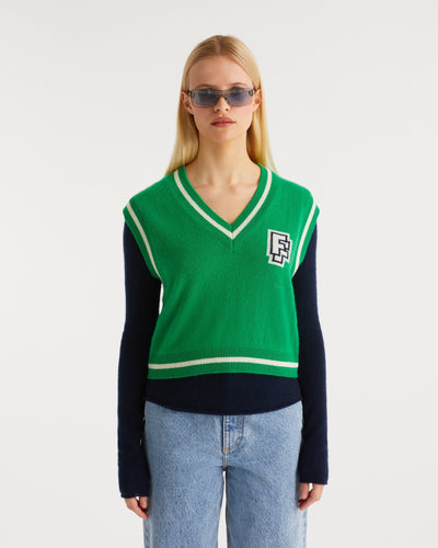 Pull Sans Manche Col V Bicolore Ff Light