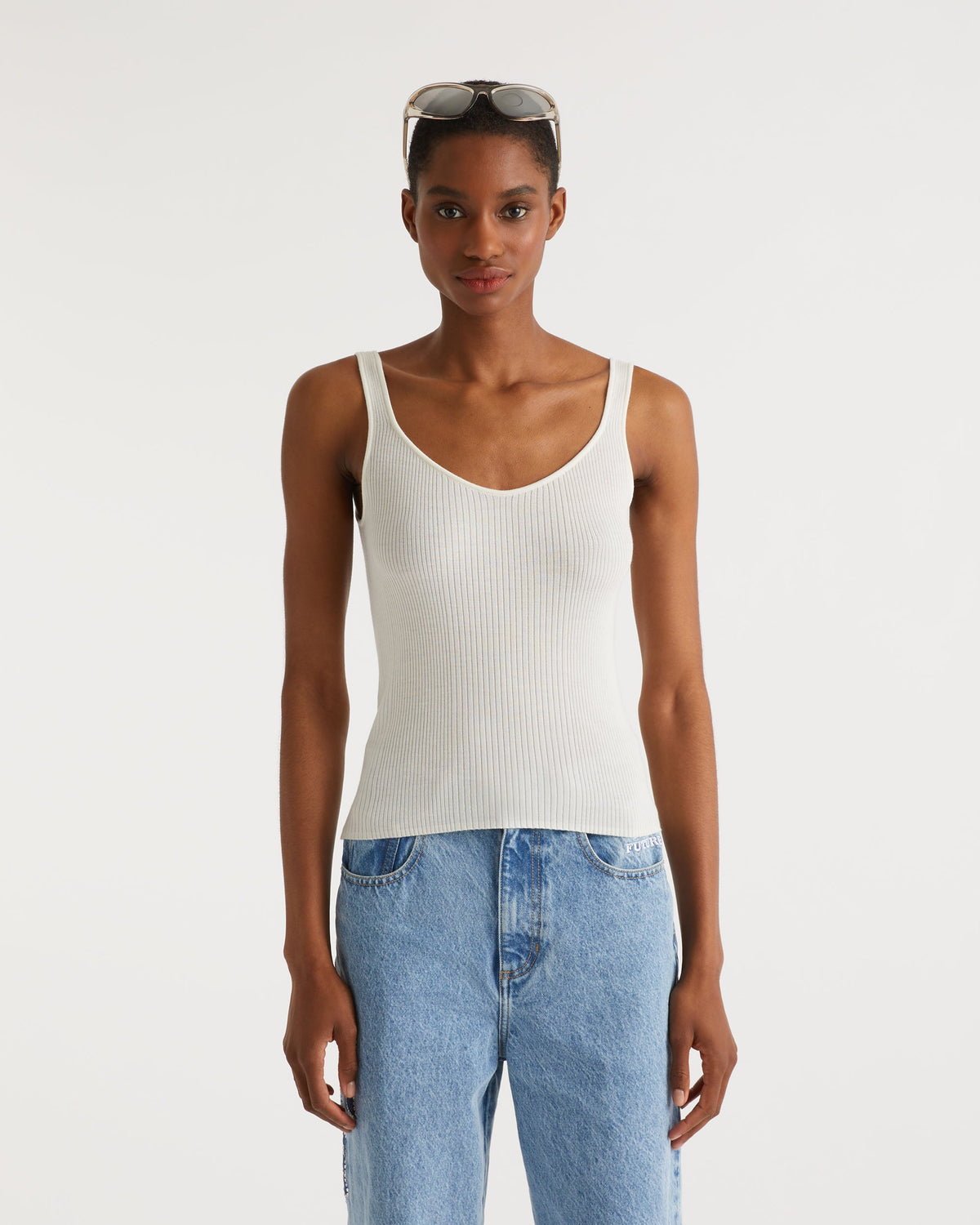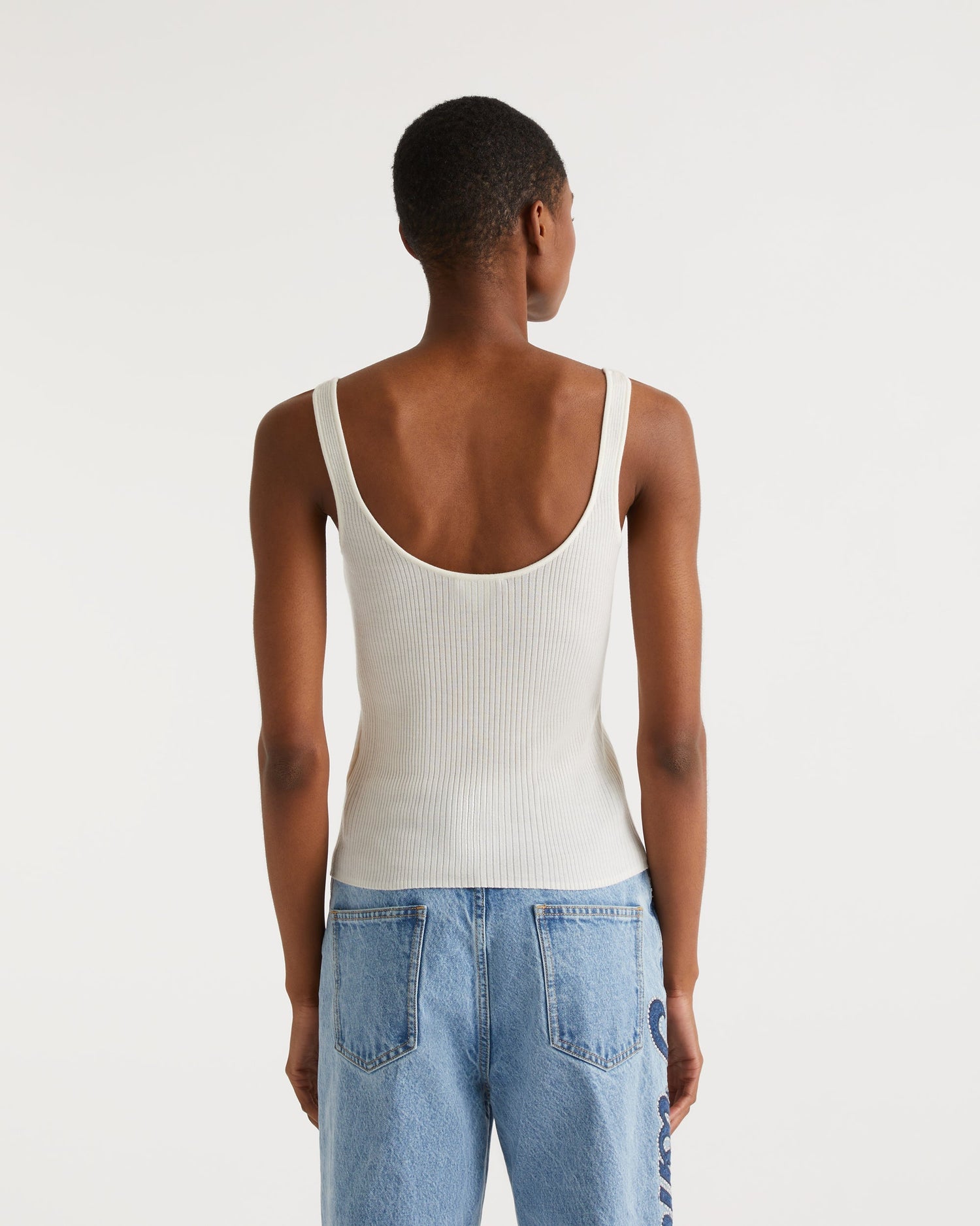 Top Debardeur à Côtes Uni - Laine Mérinos - Ecru
